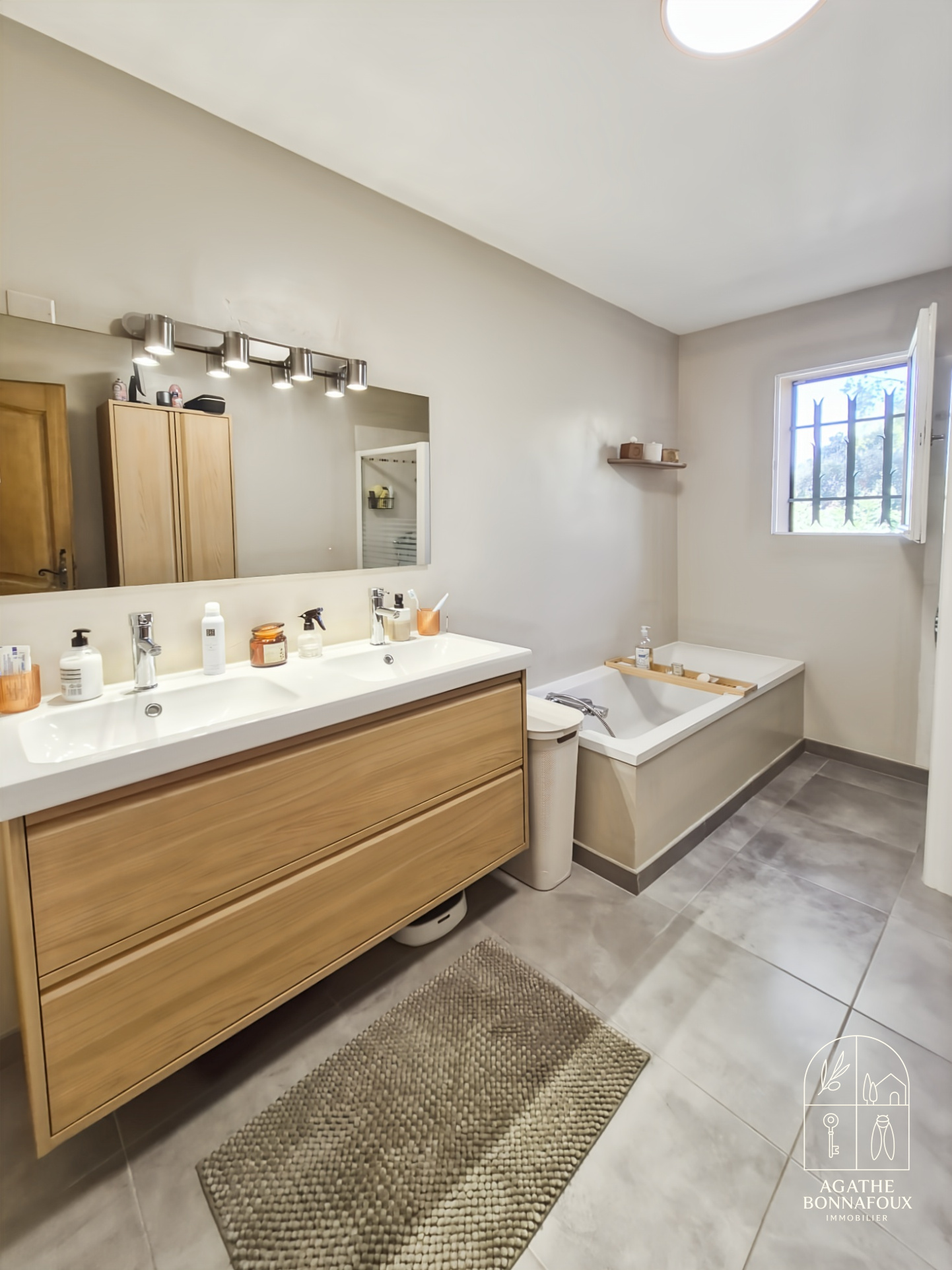 La maison est fonctionelle et offre des volumes généreux, vous y découvrirez un grand salon ouvert sur une salle à manger avec cuisine ouverte équipée, quatre chambres dont une suite parentale avec dressing et salle d'eau, 2 salles d'eau, 3 wc, une buanderie.
