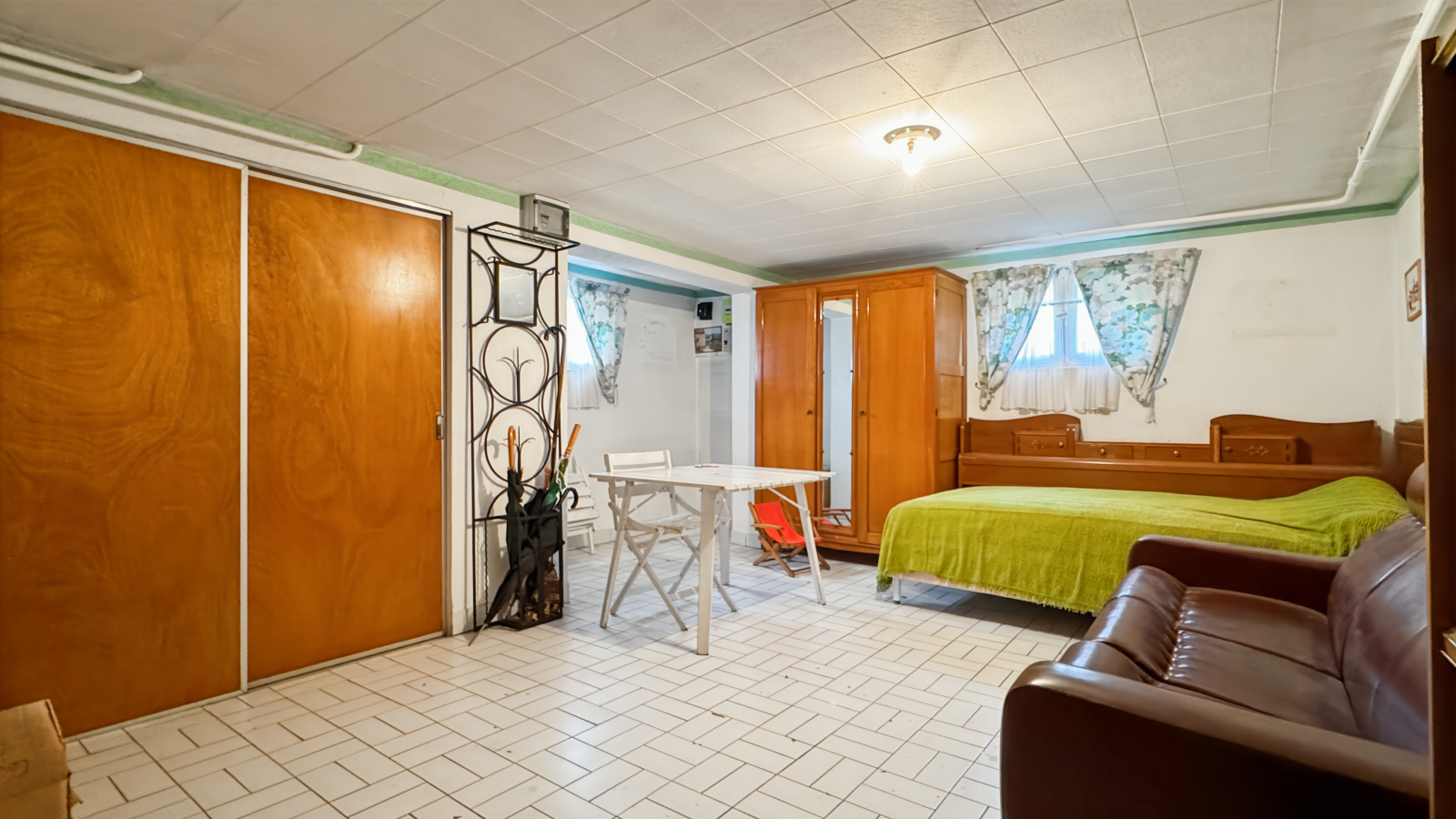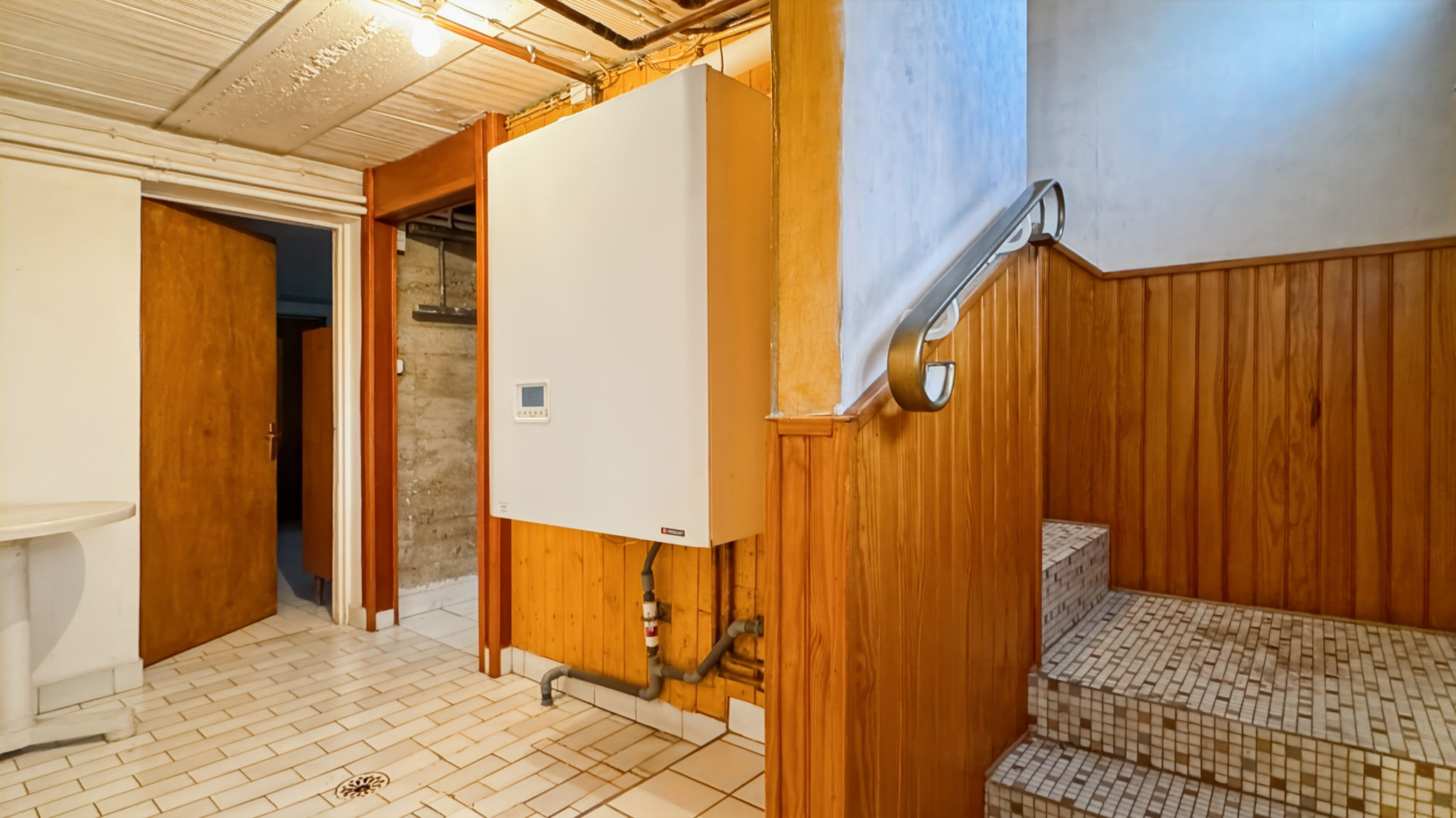 - Sur son niveau mi-enterré, vous pourrez profitez d’une buanderie, d’un atelier, d’un dégagement faisant office de chaufferie et permettant la desserte d’une grande pièce (chauffée) de plus de 20m2 (potentielle grande chambre supplémentaire). Un garage de plus de 17m2 vient compléter ce descriptif.