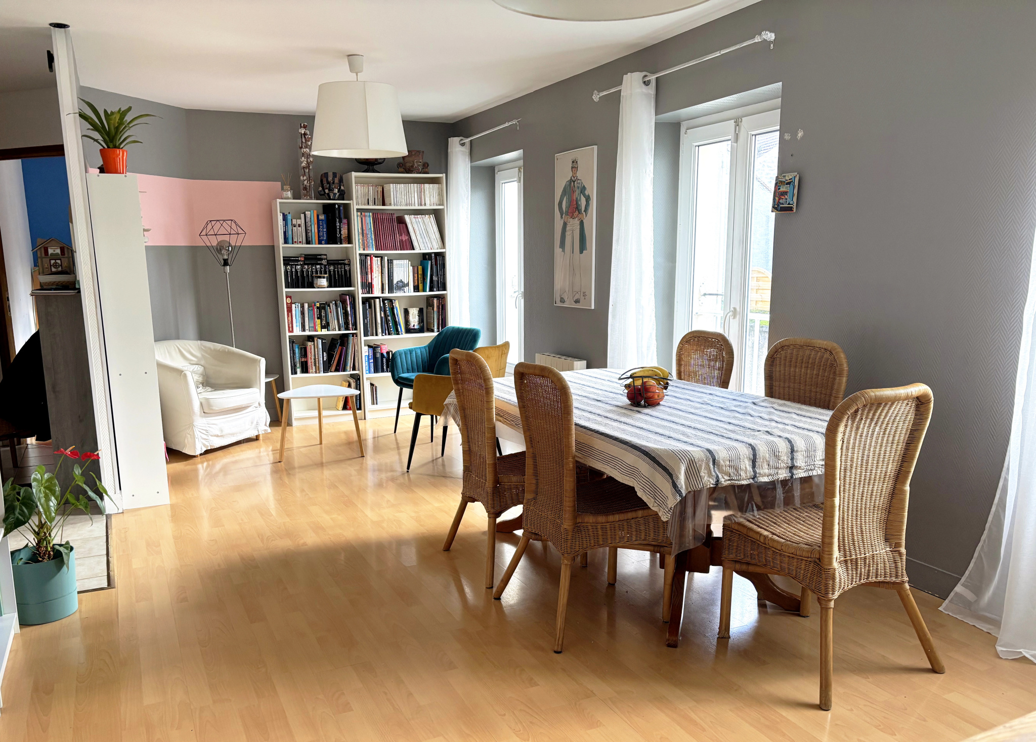 NOUVEAUTÉ - DUPLEX UNIQUE de 159m2 utiles proche CENTRE VILLE de FLINS sur Seine - INDEPENDANCE TOTALE dans une maison de ville divisée en 2 logements - BIEN MODULABLE et avec POTENTIEL - CALME - EXTÉRIEUR pour barbecue l'été - GARAGE PRIVÉ abrité - Extérieur avec cour. Ce bien vous offre les avantages de la vie indépendante en maison au prix d'un appartement, les aléas de la vie en copropriété en moins ! Florian RICHARD Immobilier vous propose à la vente ce duplex de 159m2 utiles (132m2 carrez) avec 4 chambres + une suite parentale de 20m2. IDÉAL pour famille nombreuse avec espace pour le télé travail et nombreux rangements. Duplex dans une maison de ville configurée en 2 lots et sur 2 niveaux. Au REZ de Chaussée, vous entrez par un accès privé avec votre parking couvert privé et petite terrasse extérieure. Le premier étage est composé d'une entrée desservant une salle à manger de 22m2 baignée de lumière, une grande cuisine équipée et fonctionnelle, 2 chambres de 12m2, une salle d'eau, WC séparés, une suite parentale de 21m2 avec son espace dressing et sa salle d'eau. Au deuxième étage, vaste espace avec grand volume grâce à ses 3,50 de hauteur sous plafond, un grand plateau lumineux aménagé en salon cosy et espace télétravail de 40m2 avec de nombreux rangements, 2 chambres de 10m2 dont une avec grand rangement en hauteur et une buanderie avec WC de 7m2 (possibilité de créer une salle de bain supplémentaire). Ce deuxième étage est facilement modulable, avec possibilité d'y créer plusieurs chambres (cloisons à monter, devis disponible), notamment si vous souhaitez agrandir la pièce à vivre du bas et transférer les chambres à l'étage. ** SES ATOUTS : DPE D. Véritable vie en maison indépendante au prix d'un appartement (30 à 50% de volume en plus en comparaison à une maison au même prix), très faibles charges de copropriété (358EUR/an), pas de parties communes, terrasse extérieur privée pour profiter des barbecues d'été, parking privatif sécurisé et couvert, facilement modulables (cloisons à déplacer). EMPLACEMENT IDÉAL. Proche sortie A13, écoles (maternelle et primaire), infrastructures sportives, parc de Flins, tous commerces dans un rayon de 200m. Family Village à 5 min à pied et zone d'activité (nombreux restaurants, magasins, centre commercial Carrefour) à 200m ! ** Bien idéal pour famille nombreuse à la recherche d'un lieu de vie cosy et au calme avec beaucoup d'espace, avec espace dédié au télétravail ou pour investisseur à la recherche d'un bien pour la colocation - BIEN avec POTENTIEL - A VENIR DECOUVRIR RAPIDEMENT **