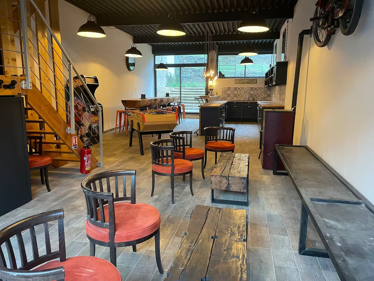 Au rez-de-chaussée, vous découvrirez une vaste pièce de vie conviviale comprenant une grande cuisine ouverte entièrement équipée, agrémentée d’un grand bar, idéale pour recevoir. Un WC indépendant avec lave-main complète ce niveau. La pièce offre également un accès direct au jardin situé à l’arrière, permettant de profiter pleinement des extérieurs.