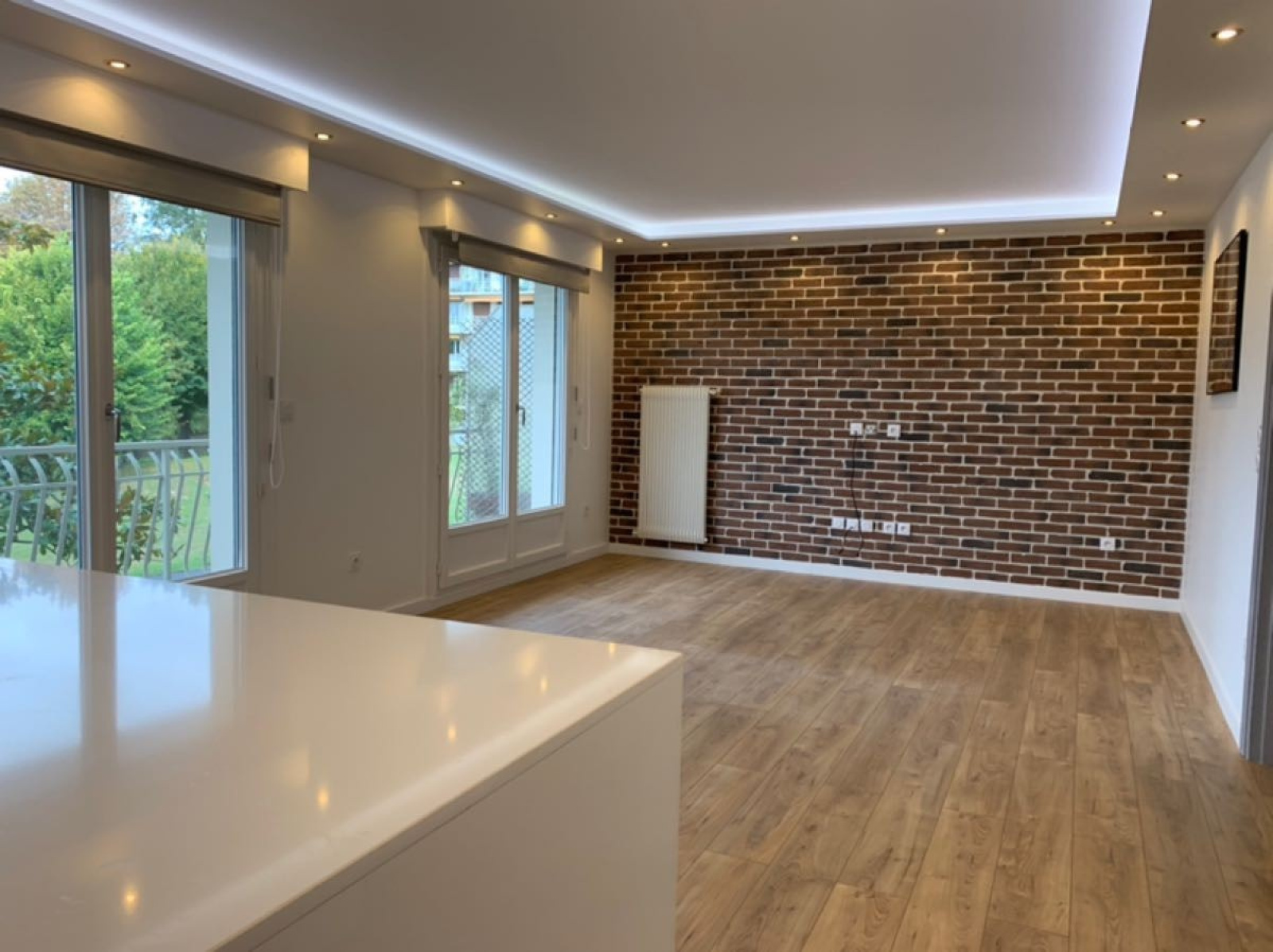 T4, 3 chambres refait à neuf dans une résidence de standing proche des coteaux et du centre ville et transports à chennevières sur marne, appartement de 85 m², comprenant une grande entrée avec de nombreux rangements, un Grand séjour lumineux de 36 m² avec cuisine américaine équipée donnant sur une terrasse de 12m² avec vue dégagée et une vue sur paris, une salle d'eau avec douche à l'italienne, wc indépendant, 3 chambres et une buanderie ou salle de douche. une place de parking en sous-sol fermée et une cave.