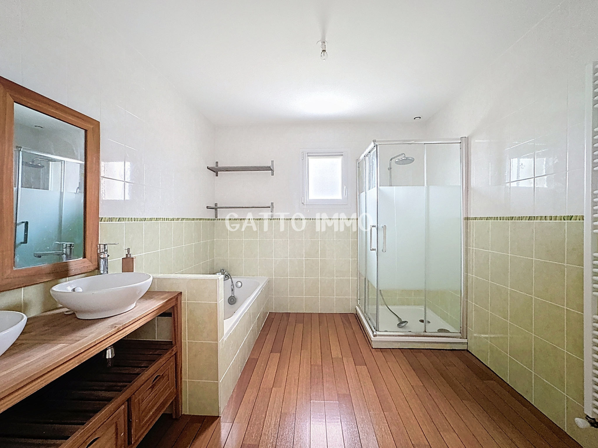 Au rez-de-chaussée, également une entrée ouverte sur le séjour, un bureau et un wc.