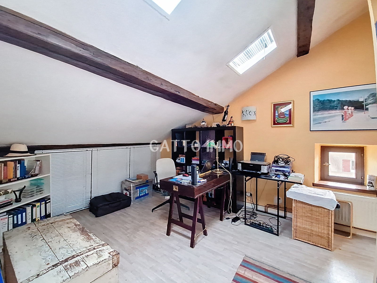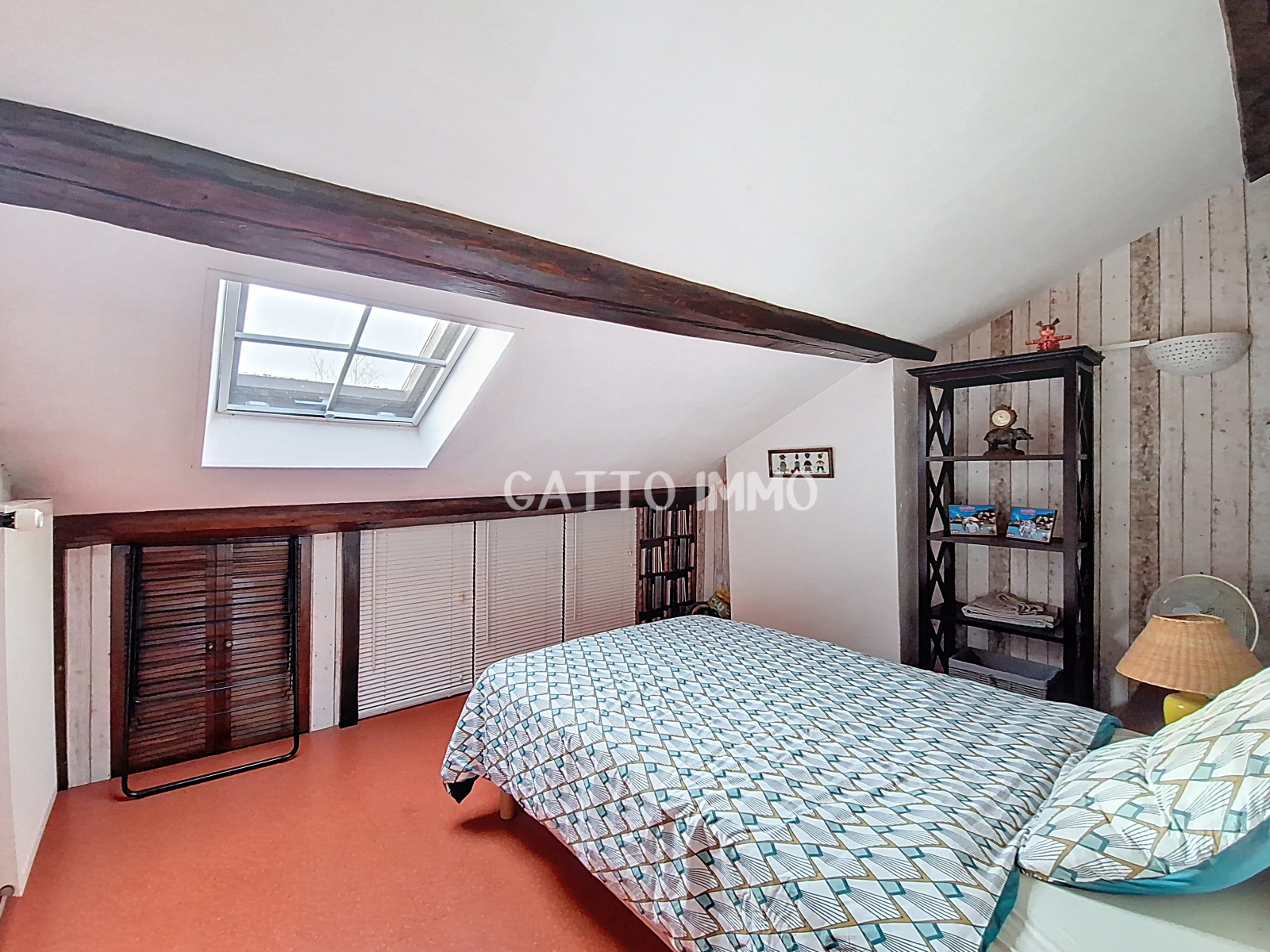 Dans les combles, 2 belles chambres avec poutres apparantes et velux complètent ce bien.