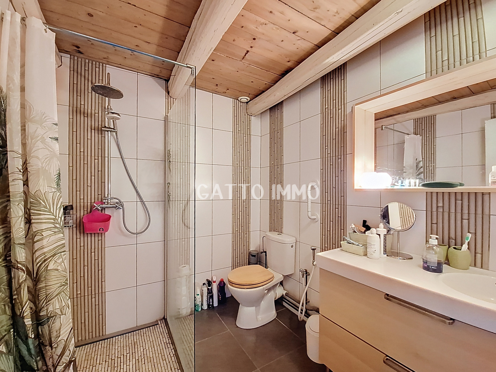A l'étage, une belle chambre, une mezzanine ainsi qu'une salle d'eau avec wc.