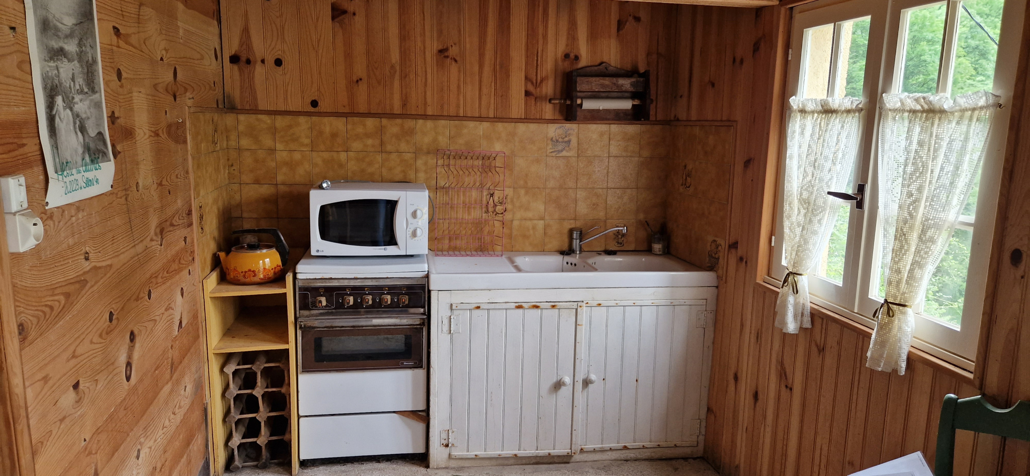 L'habitation offre un espace de vie de plus de 22 m2 comprenant un salon, un coin repas et une cuisine qui se prolonge par une terrasse de 20 m2 au coeur des montagnes et de la nature. Côté nuit, une mezzanine offre 15 m2. Elle est équipée de l'électricité, l'eau, le téléphone, la parabole pour la TV et internet. Le chauffage est un poêle à bois.Â