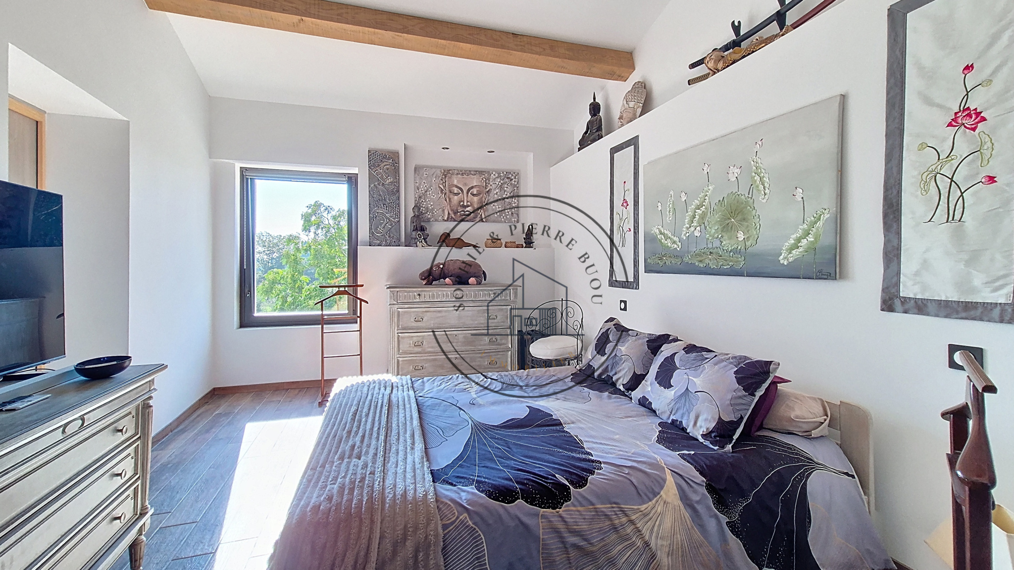 À l’étage, de beaux espaces offrent un large potentiel d’aménagement : plusieurs chambres ou suites peuvent y être créées en redéfinissant les volumes existants. Ce mas a été pensé comme un lieu évolutif, prêt à s’adapter à différents projets de vie.