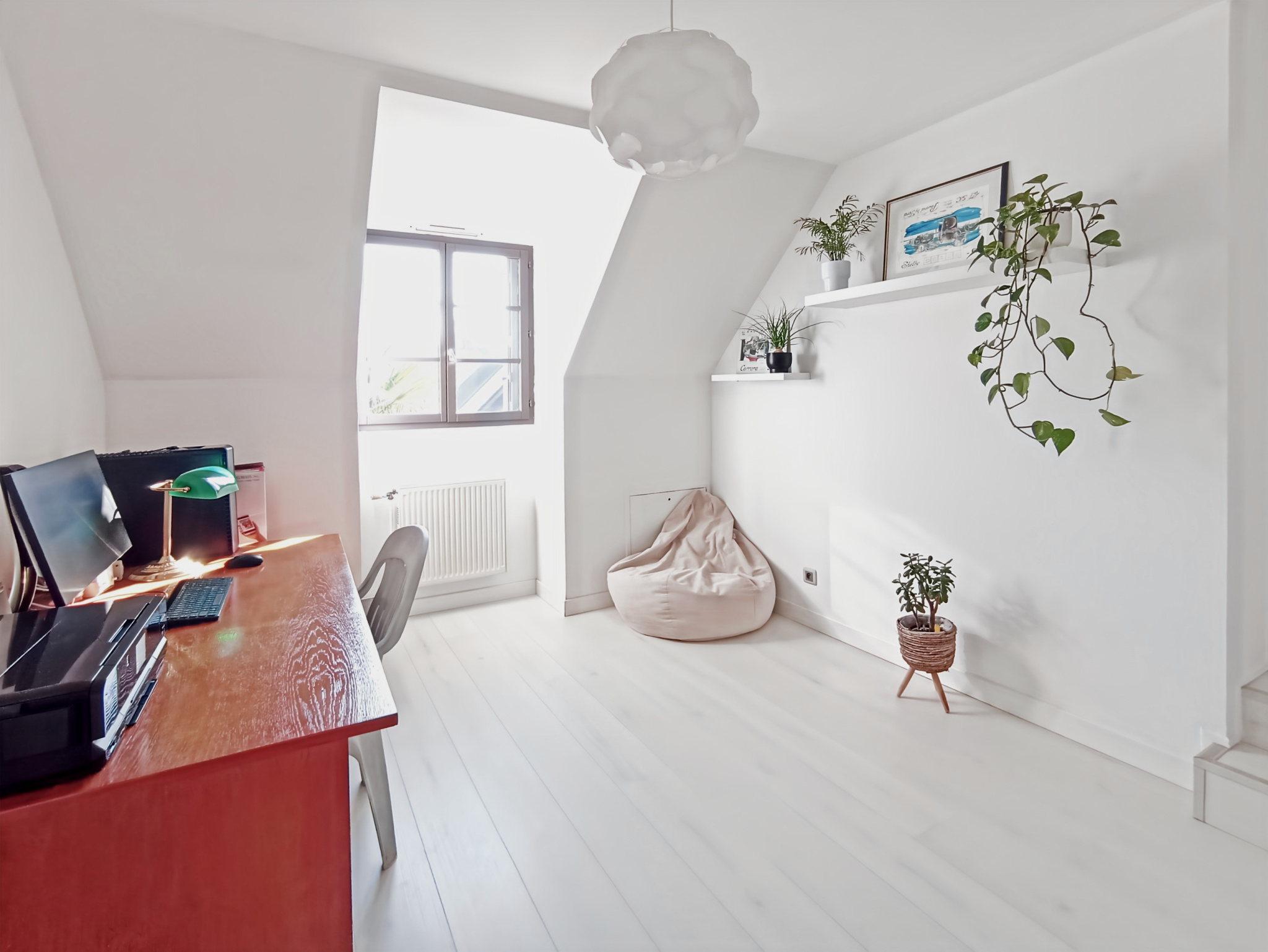 Le rez-de-chaussée offre une véritable vie de plain-pied avec une première suite parentale lumineuse avec salle d’eau et espace bureau, idéal pour le télétravail ou une activité indépendante.