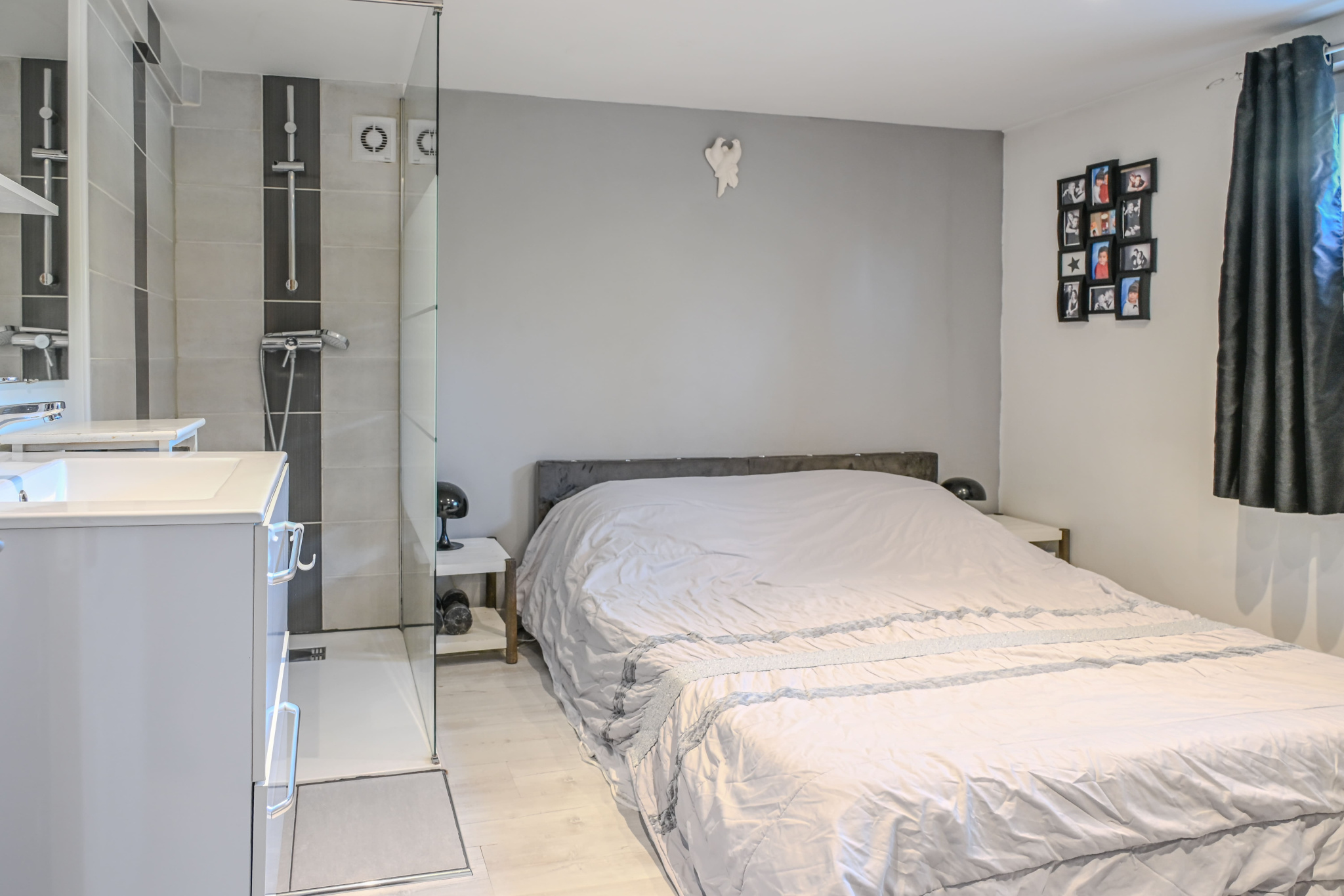 En rez-de-jardin, les volumes se prolongent avec un espace nuit complémentaire comprenant deux chambres supplémentaires, dont une suite parentale avec douche à l’italienne, ainsi qu’un second WC. Une salle de jeux d’environ 25 m², une buanderie avec cave d’environ 20 m² et une chaufferie viennent enrichir cet espace aux multiples possibilités : espace détente, télétravail ou aménagement sur mesure selon vos envies.