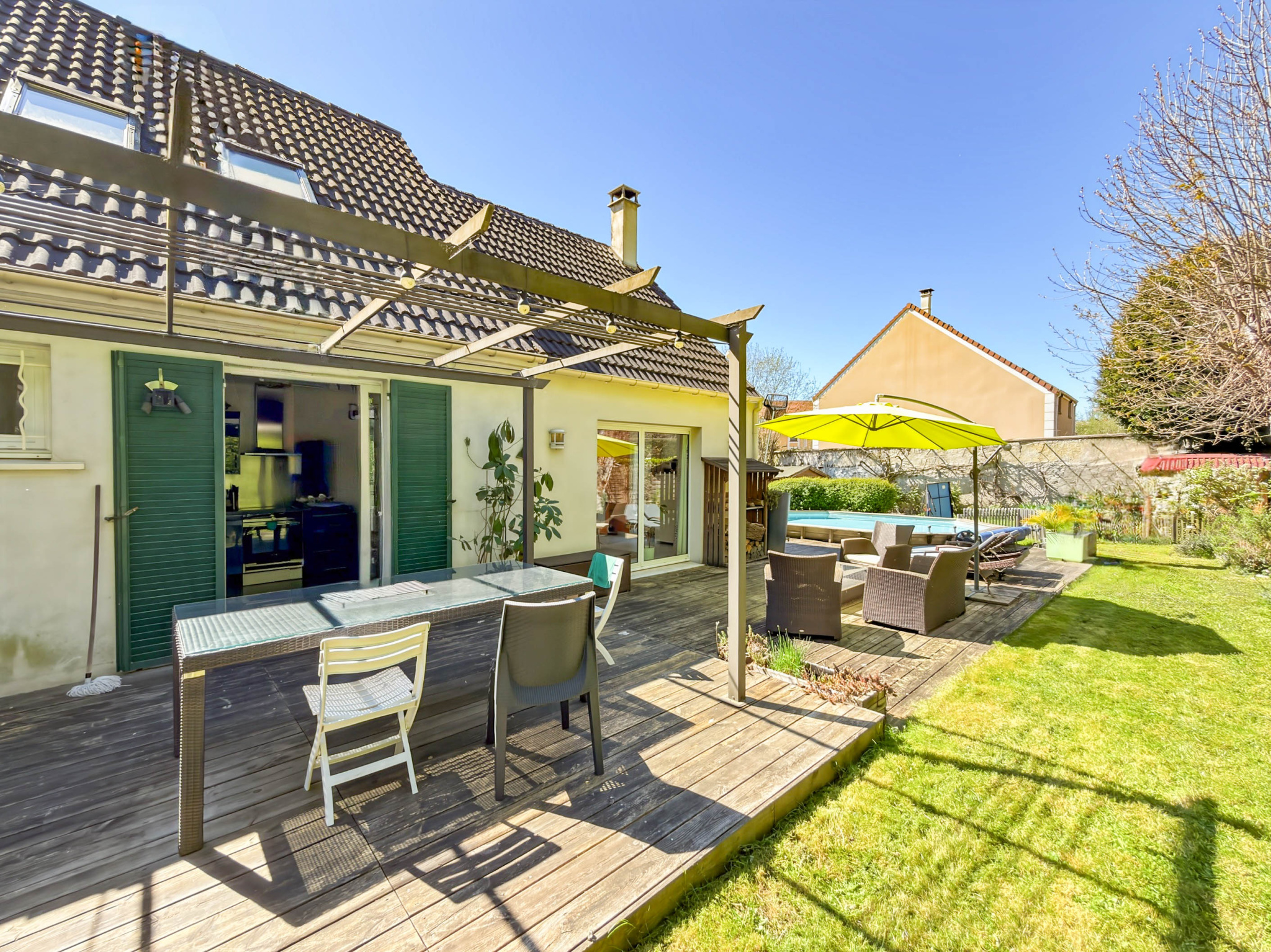 Margency – À deux pas du lycée Bury, dans un environnement calme et verdoyant, belle maison familiale de 7 pièces offrant 5 chambres. Elle comprend au rez-de-chaussée une vaste entrée avec placard, un séjour lumineux de 37 m² avec poêle et triple exposition, ouvrant sur terrasse et piscine chauffée, salle à manger, cuisine équipée, chambre, salle d’eau et WC. À l’étage : 4 chambres, bureau, salle de bains et WC séparés. Sous-sol avec atelier, cave et pièce polyvalente idéale pour salle de cinéma, salle de jeux ou salle de sport.Volumes, luminosité, calme et emplacement recherché : un bien rare sur le secteur.