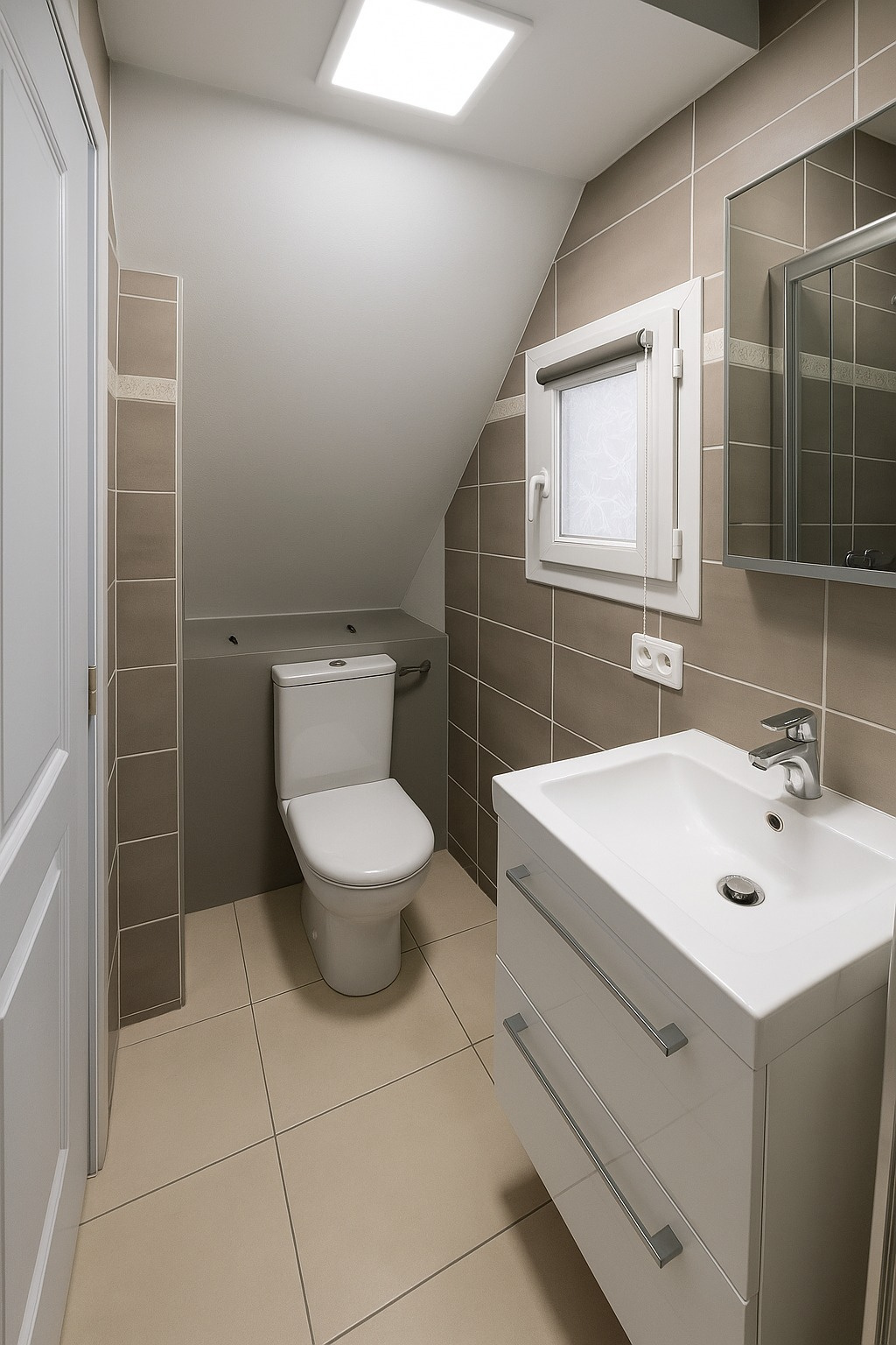 Salle d’eau avec douche, meuble vasque, WC : 2,90?m²