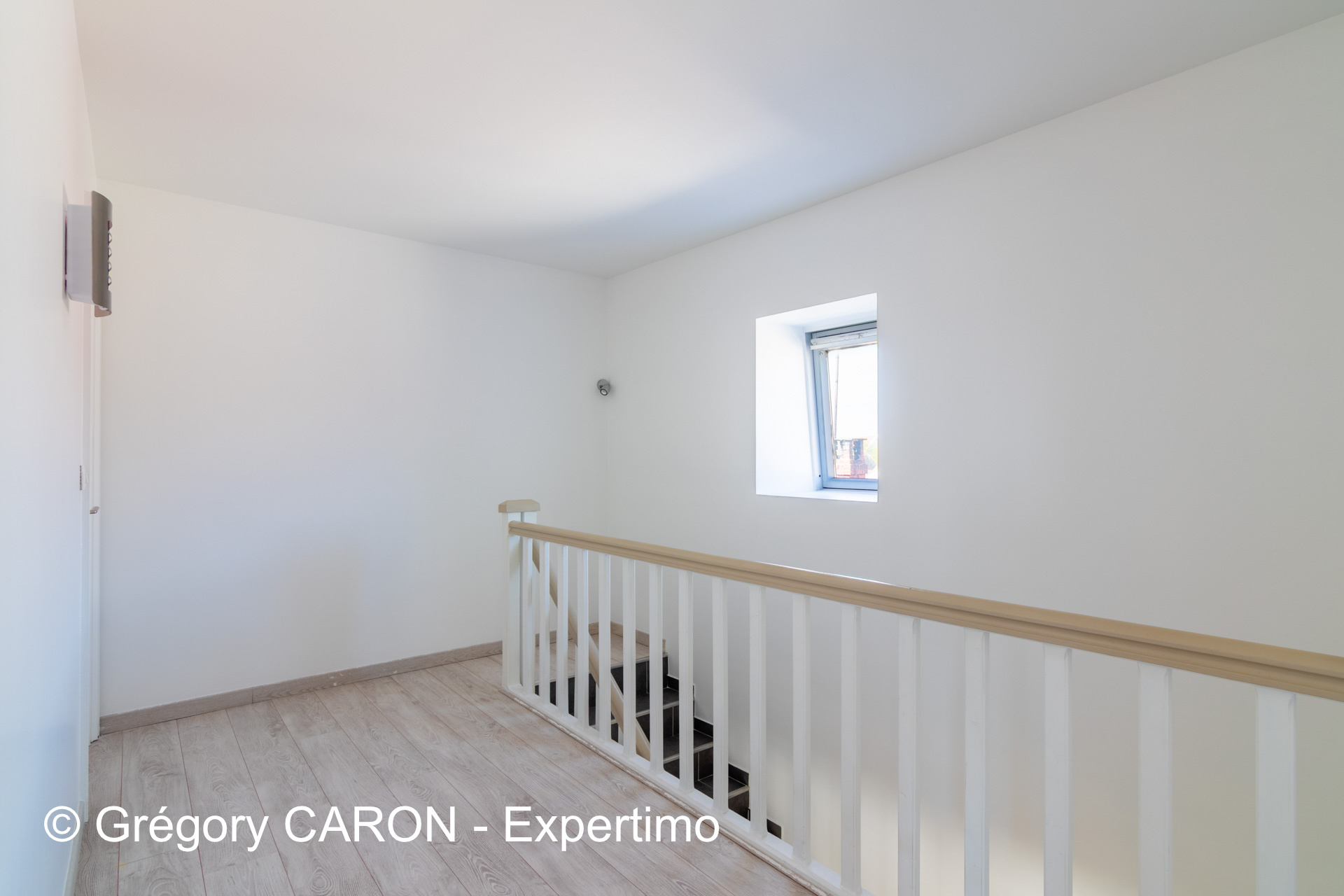 Au premier niveau, un double séjour lumineux s’ouvre sur une grande cuisine américaine moderne, aménagée et équipée ainsi que des toilettes indépendantes.