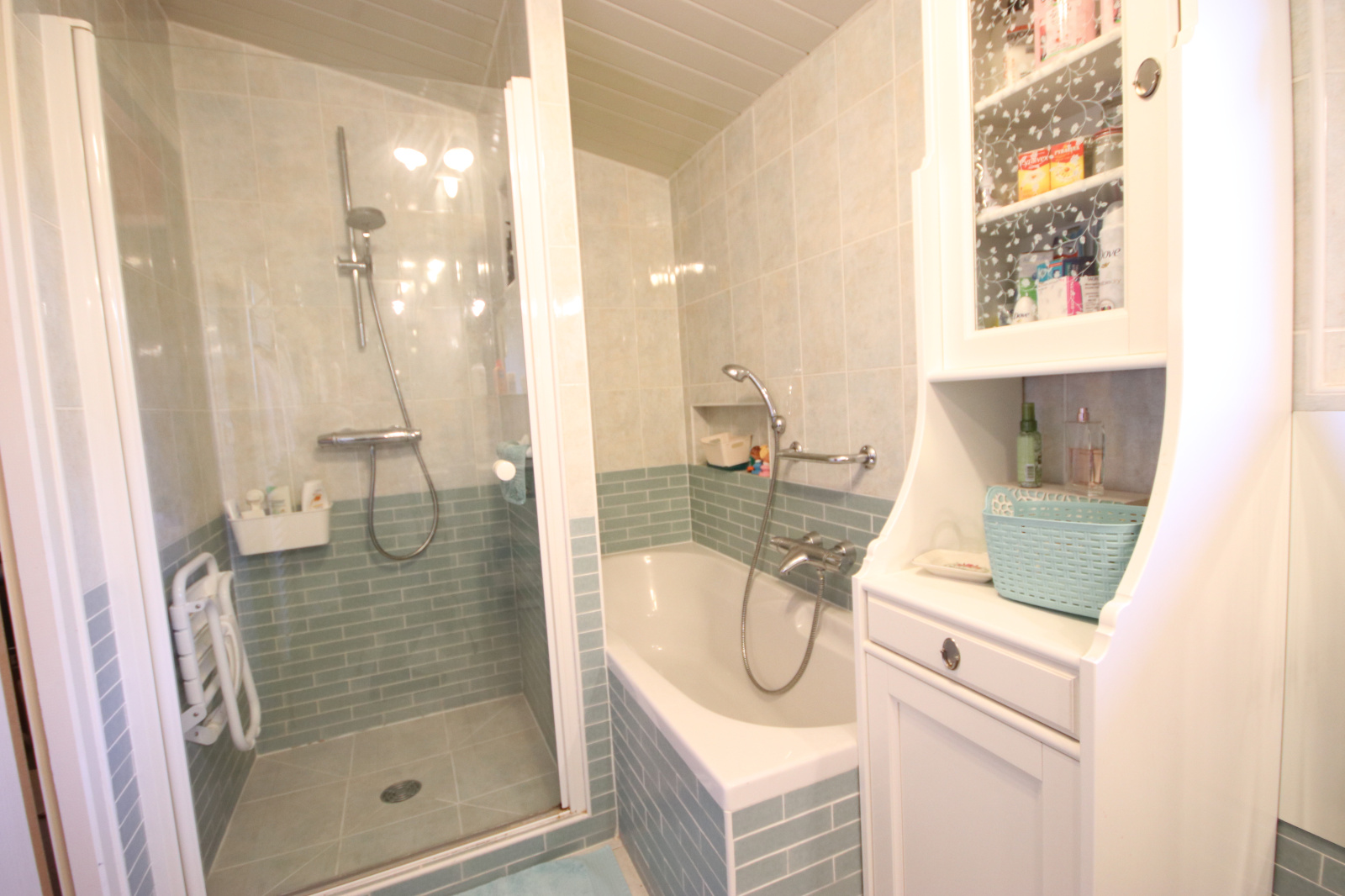 Le rez de chaussée comprend le garage de 42 m2, et l'étage comprend un bureau avec WC et douche, une suite parentale avec chambre, WC, salle de bain et douche, dressing.