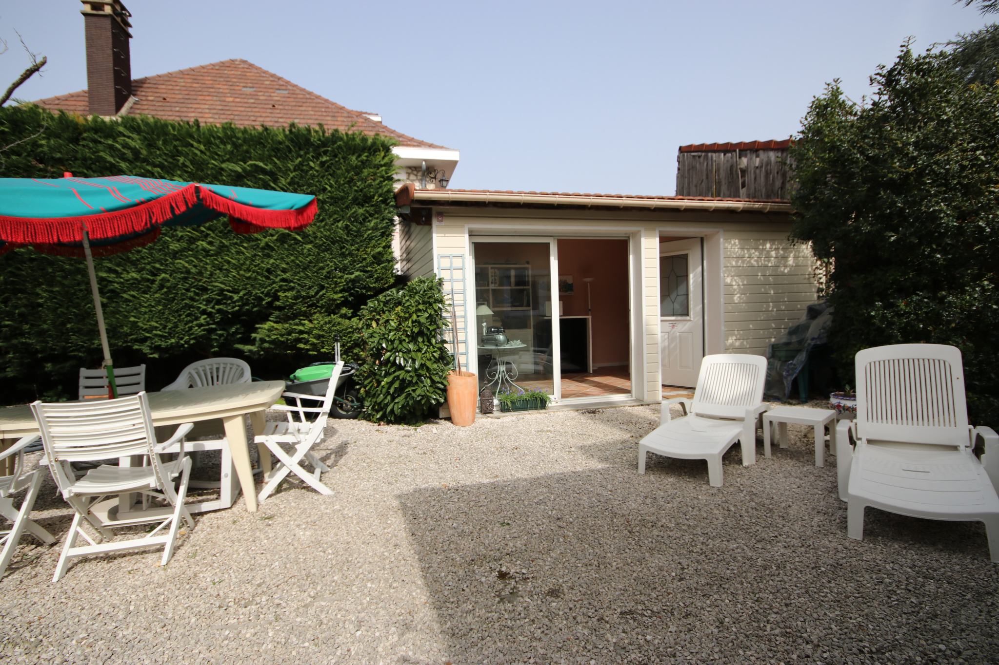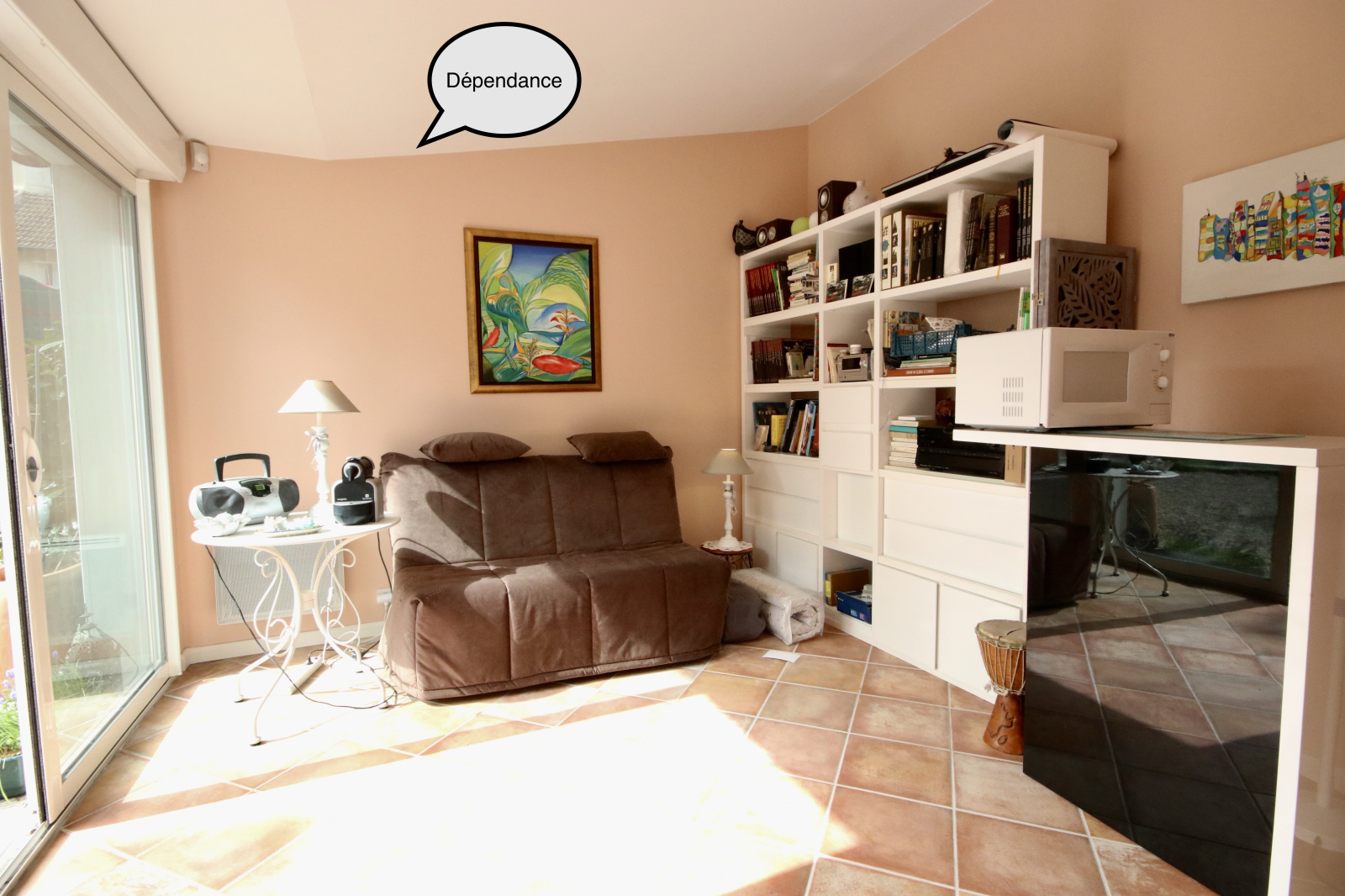 A vendre à Beauchamp, nichée dans une impasse, charmante maison avec dépendance de 142 m2 au sol, 5 chambres, sur un terrain de 447 m2. Située dans le quartier calme et recherché de la Chasse, à 5 min à pied des écoles, à 9 min à pied du centre et des commerces, et 13 min à pied de la gare ( ligne C et H). Elle comprend : entrée, salon et salle à manger, cuisine équipée récente avec accès immédiat au jardin, 1 WC avec lave main. Dans la continuité du salon, vous entrez dans une aile récente lumineuse qui dessert un bureau-bibliothèque, ainsi qu'une suite parentale avec salle d'eau et WC. Au 1 er étage : 2 autres chambres avec placards intégrés, et 1 salle de bain avec WC. Au 2 ème étage : la quatrième chambre lumineuse. A l'extérieur : une dépendance séparée de 17 m2 aménagée en studio avec coin cuisine, salle d'eau et WC : idéal pour recevoir ou en faire un bureau. Le terrain de 447 m2 permet de garer jusqu'à 4 voitures et dispose d'un abri de jardin et d'une terrasse en composite. Divers : sous-sol carrelé, portail électrique, alarme, fibre, double vitrage, cheminée en marbre complètent cette jolie maison familiale.