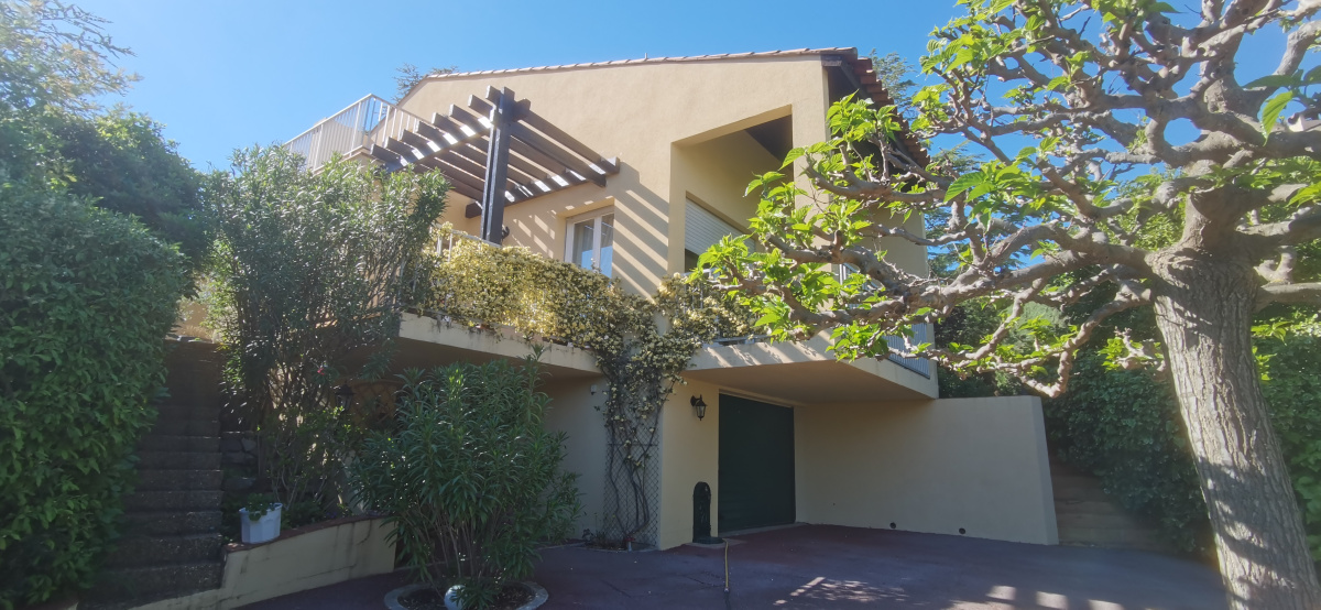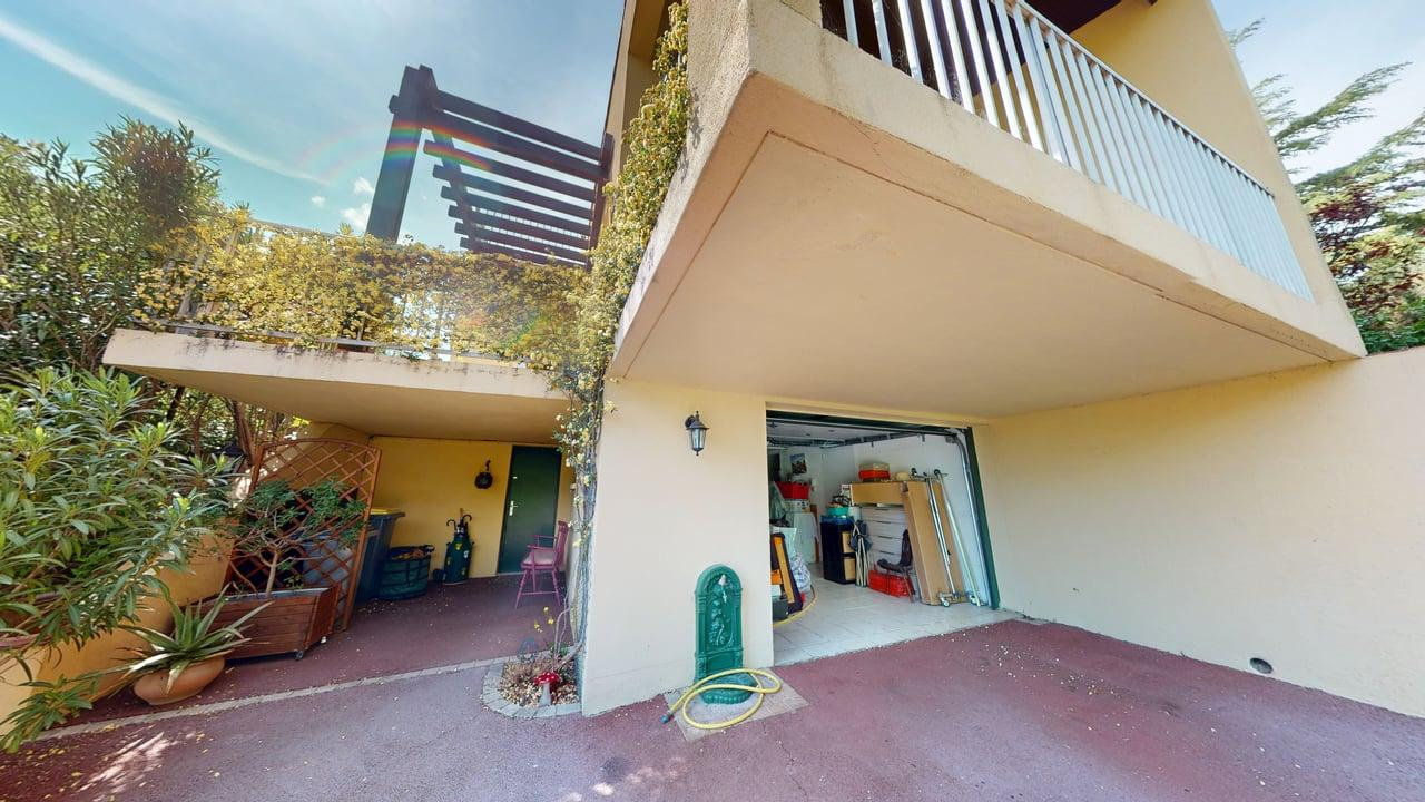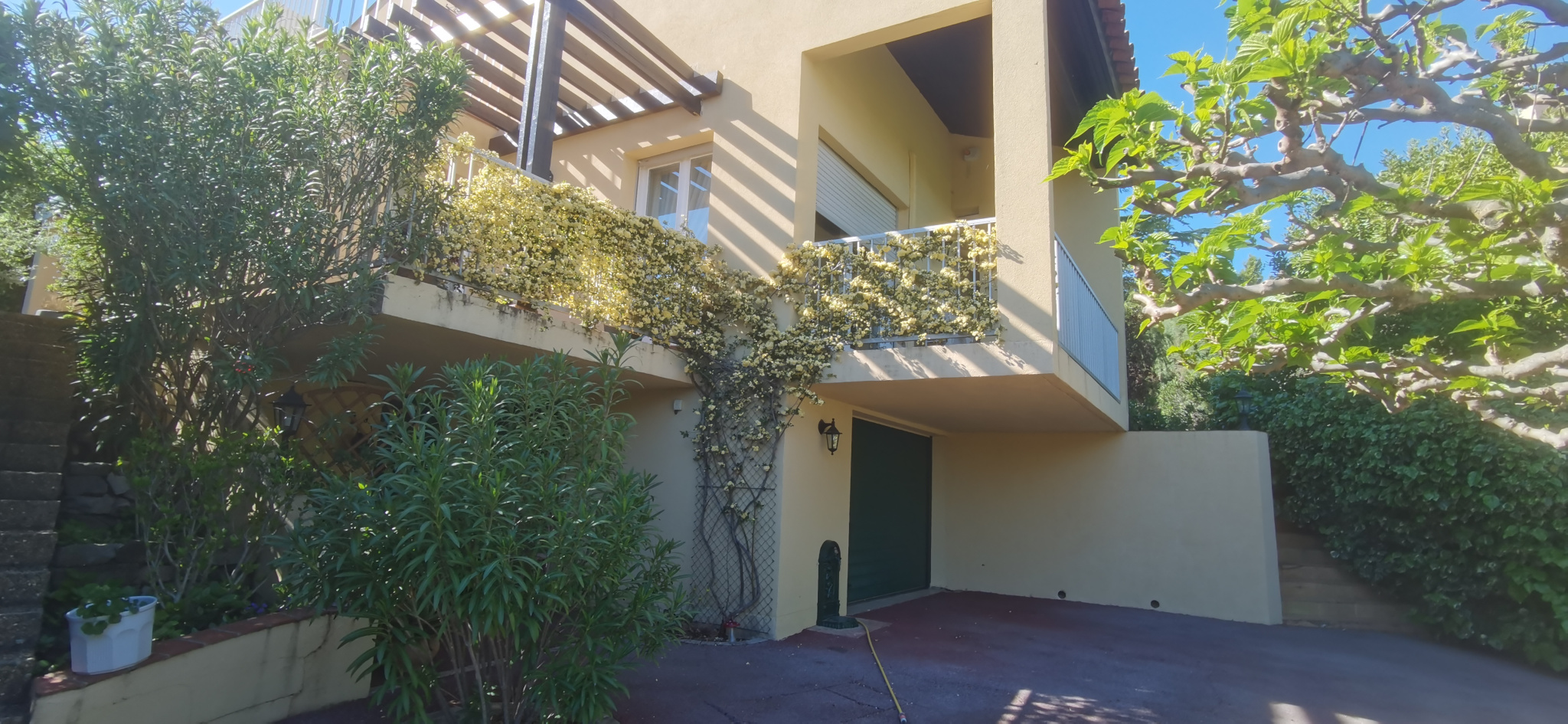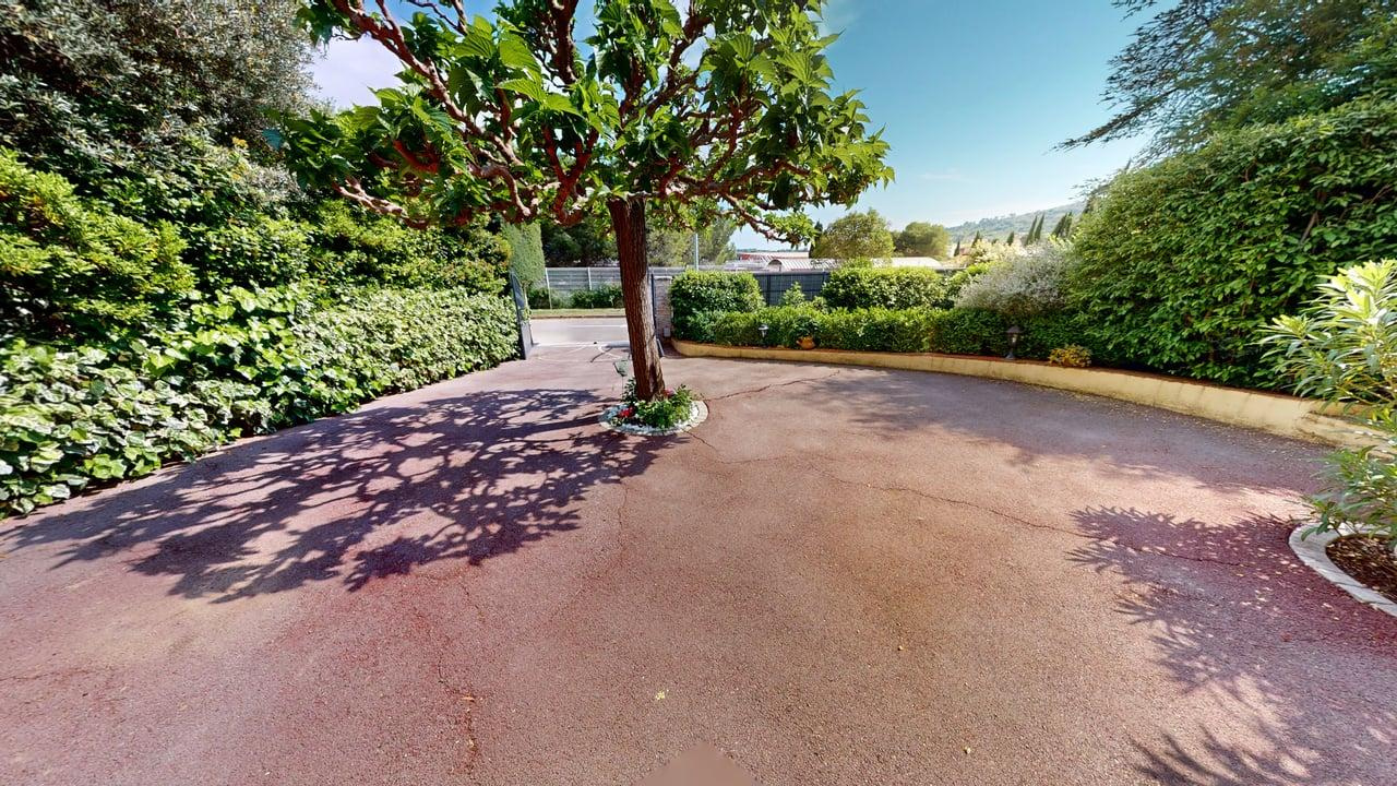 Une fois le portail électrique ouvert, on découvre un grand espace pour stationner et l'accès au sous sol.