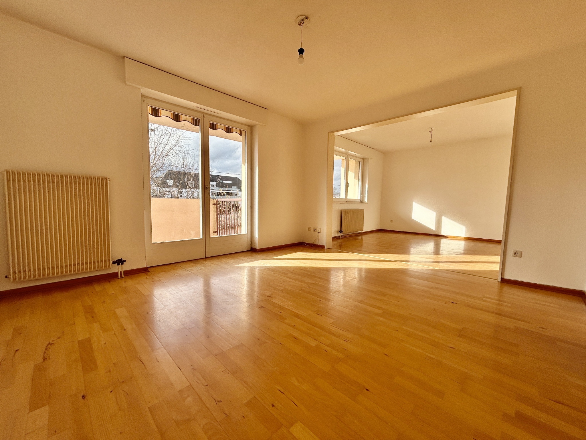 1 double salon/séjour lumineux donnant sur un grand balcon avec vue dégagée.