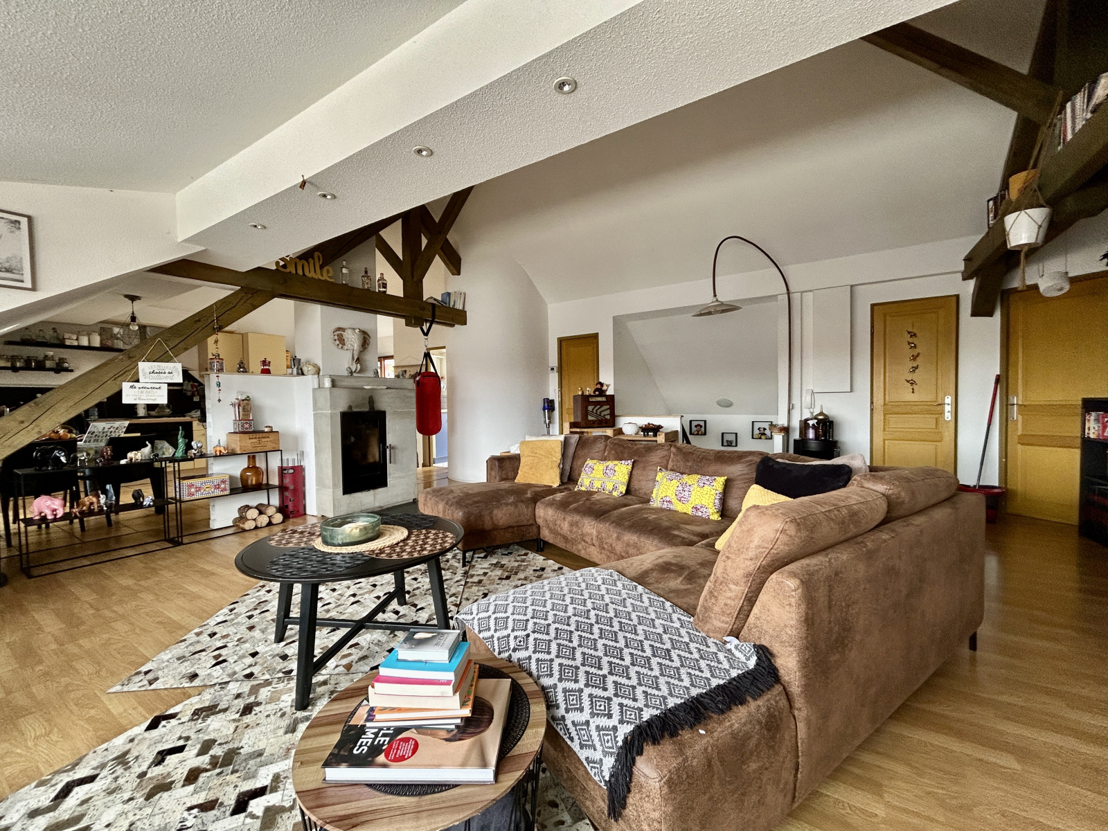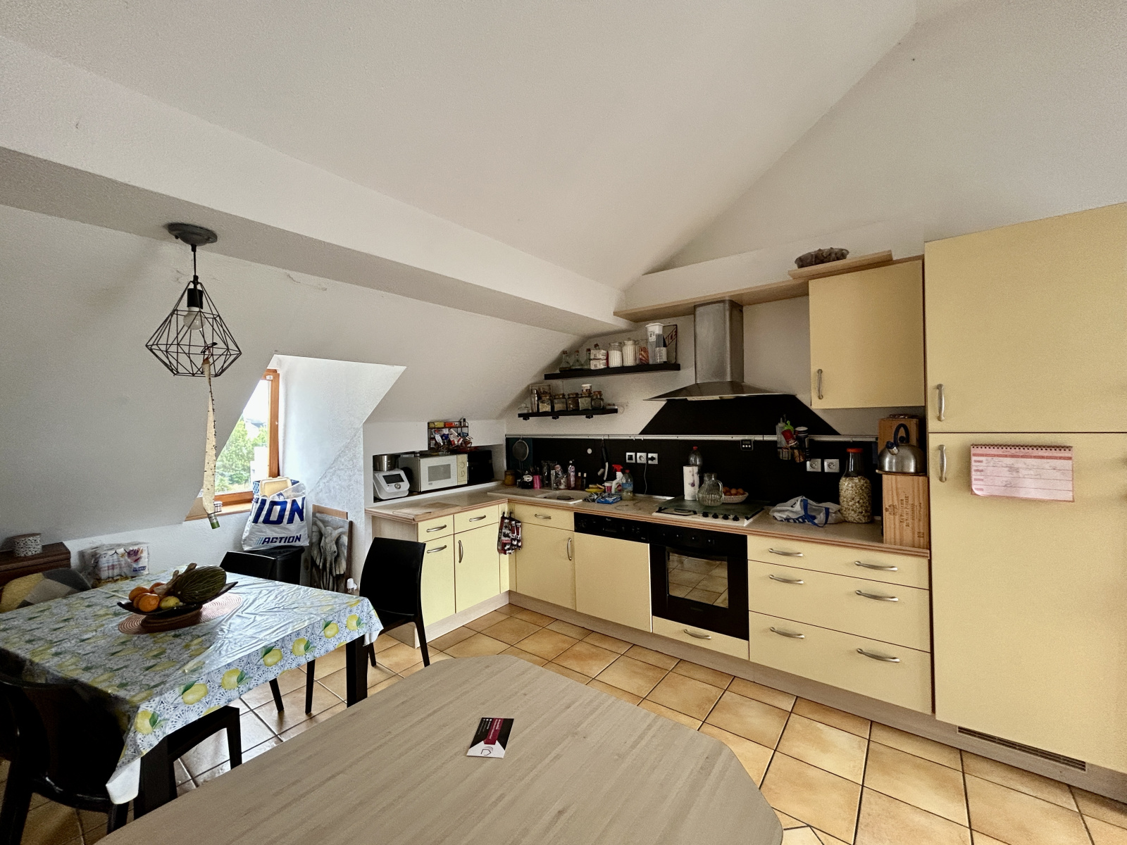 1 double salon/séjour lumineux (plafond cathédrale) ouvert sur une cuisine équipée et donnant sur une belle terrasse sans vis à vis avec vue sur les Vosges