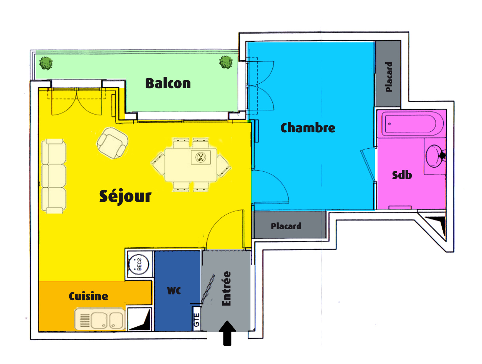 92700 Colombes Centre - Au sein d'une copropriété récente de standing, appartement 2 pièces de 45,53 m2 Carrez au 4ème étage sur 5. Entrée, cuisine aménagée, séjour lumineux avec beau balcon, 1 chambre, salle de bains & Wc séparés.