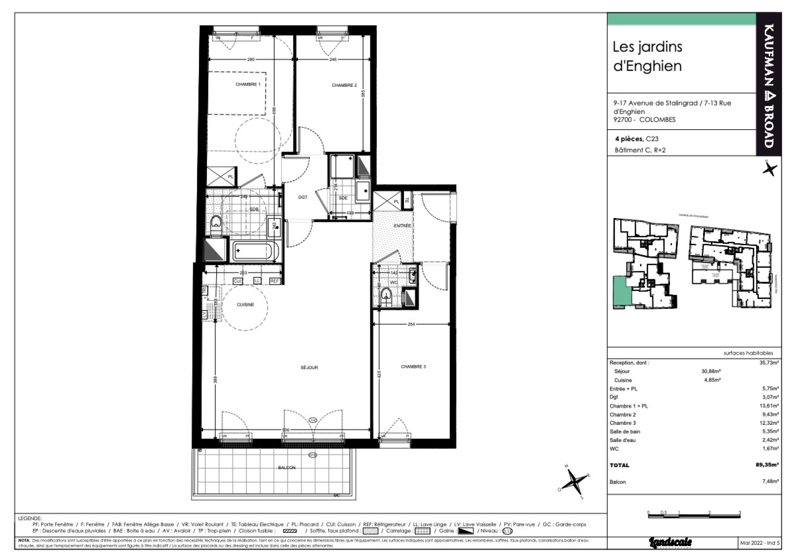 Situé au 2ème étage d'une copropriété de standing livré en Février 2026, vous retrouverez cet appartement de 4 pièces principales d'une superficie totale de 89,35m2 loi carrez.