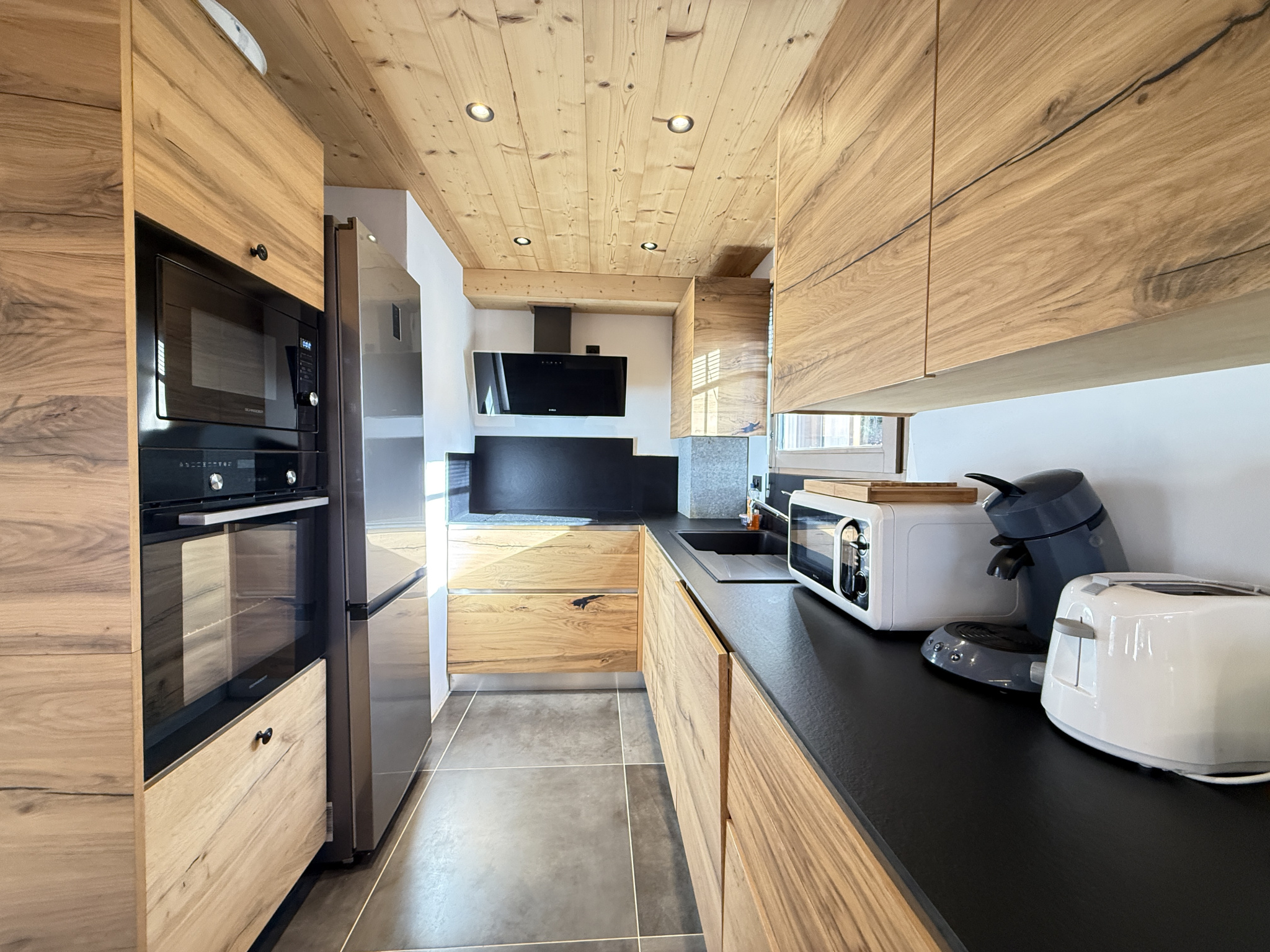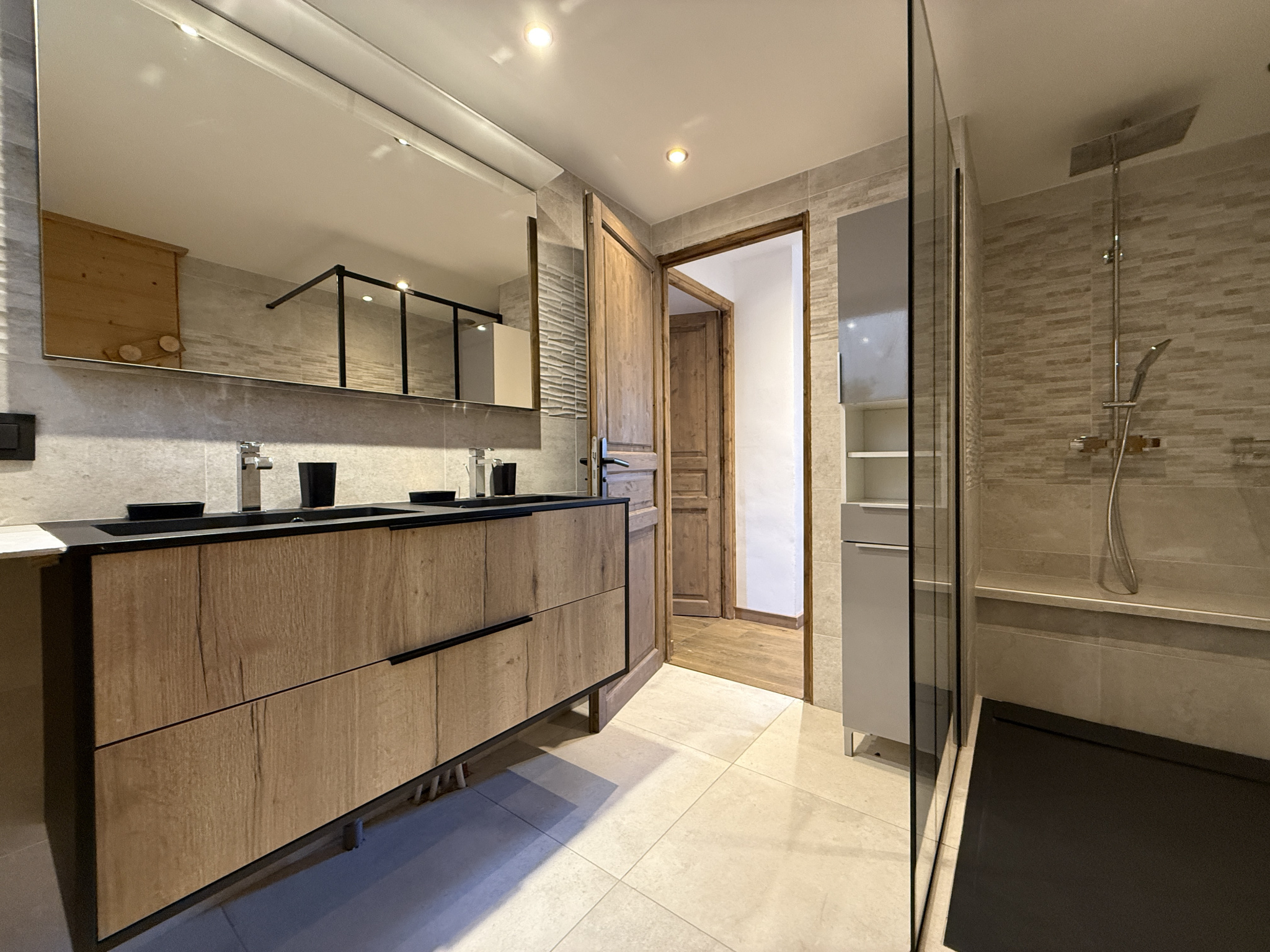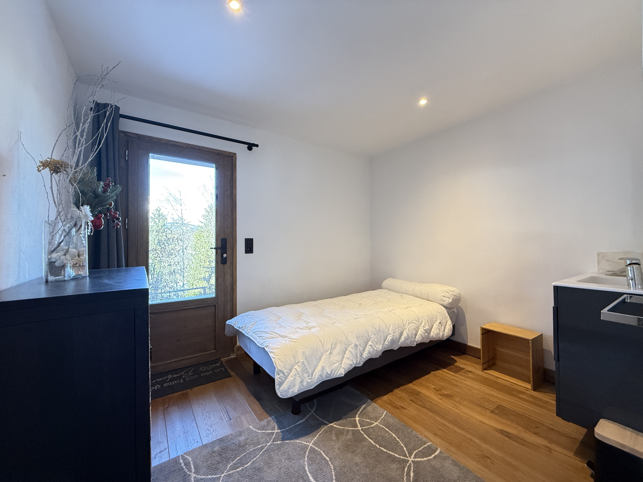 Dans un milieu naturel, sur une parcelle de 2431 m2, entouré d'un jardin, d'une vaste forêt et délimité par une rivière; ce Chalet Alpin datant de 2023 aux Normes RT 2012 est composé au niveau de l'entrée principale d'un petit hall deservant sur la droite des placards coulissants, un joli escalier pour les accès aux niveaux rez-de-jardin et dernier étage.
