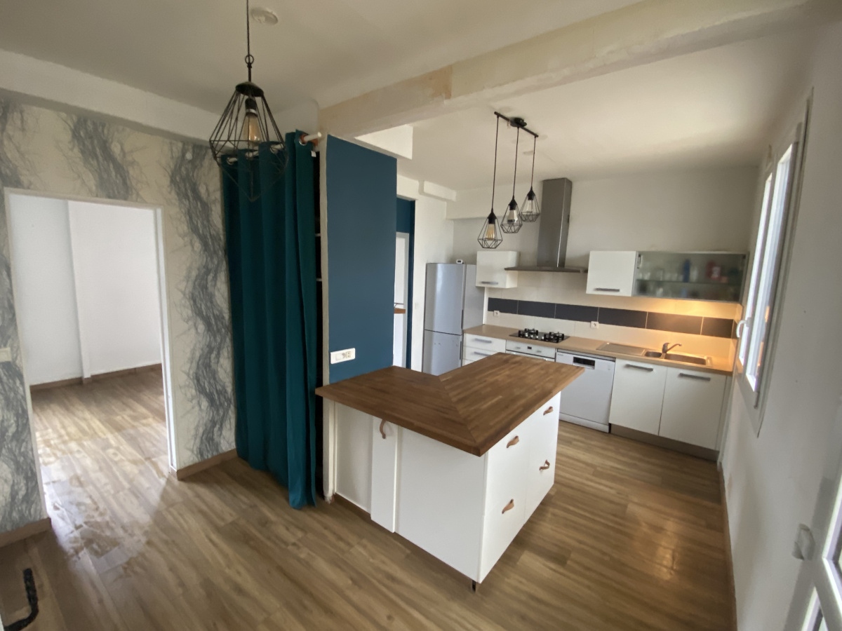 La mer à pied pour cette maison lumineuse offrant une entrée par une véranda, une cuisine aménagée et équipée, un salon séjour lumineux, une salle de bain et un wc au rdc.