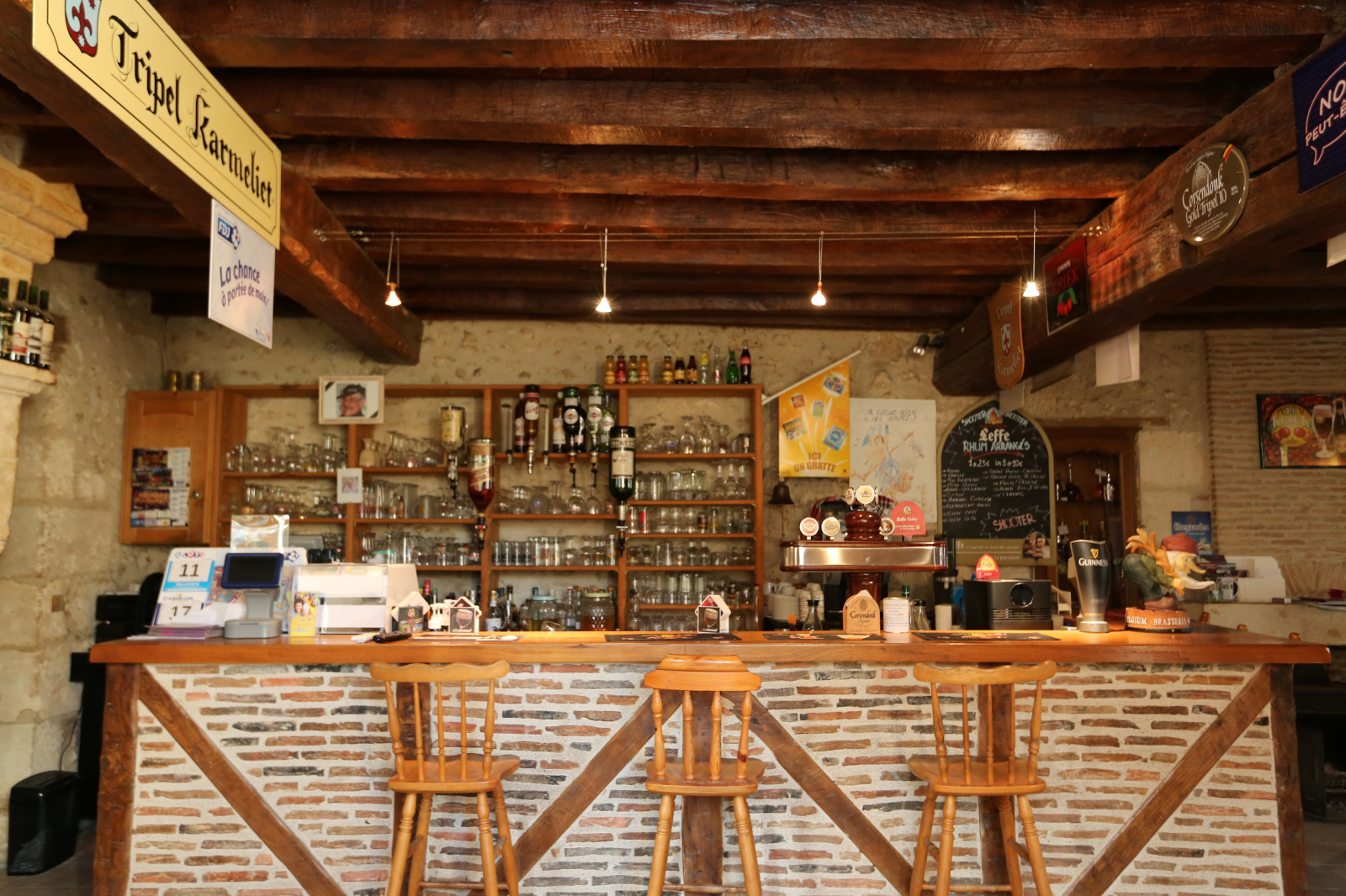 l'ancien bar-restaurant comprend une salle de bar avec une ancienne cheminée Renaissance, une salle de restaurant avec poutres et cheminée, des cuisines, une grande salle de banquet à l'étage, accès à un jardin privé et grand barbecue maçonné. Au deuxième étage, trois-pièces et grenier aménageable dans les combles.
