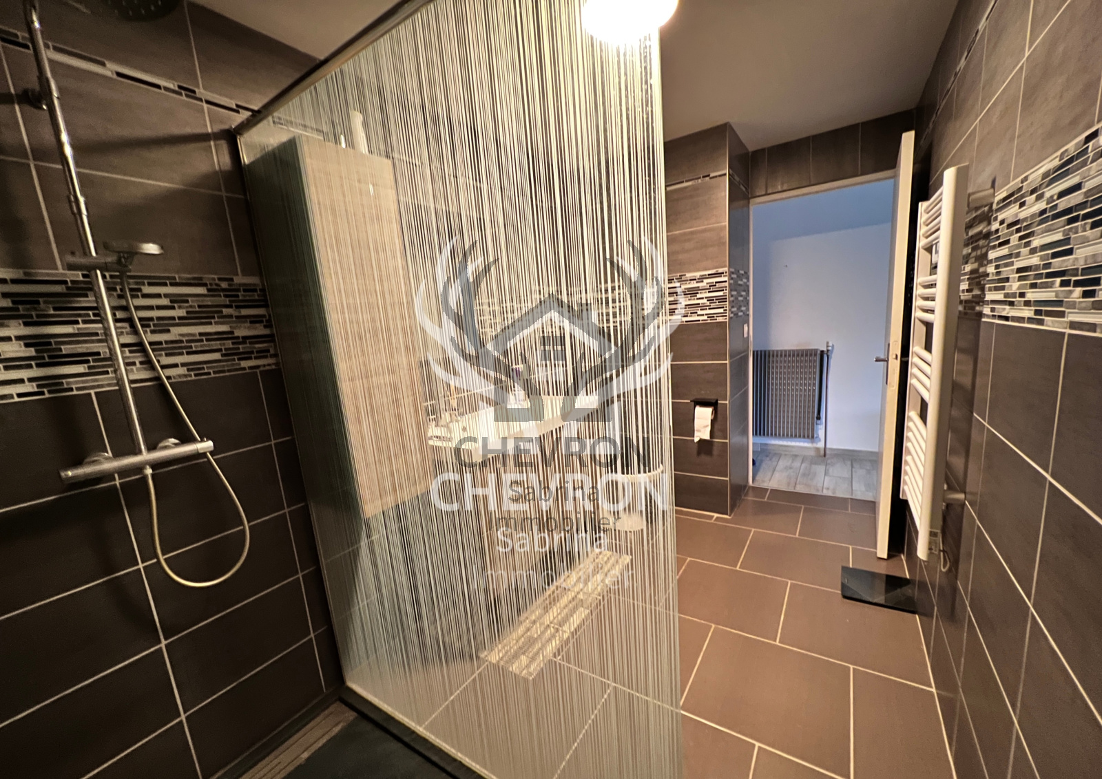 Une salle d’eau avec WC entièrement rénovée complète harmonieusement ce niveau.
