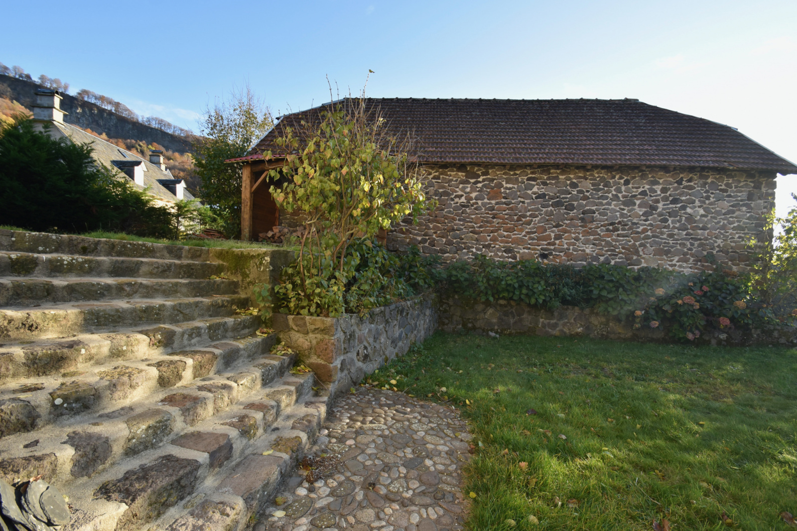 accès côté chemin et escalier extérieur