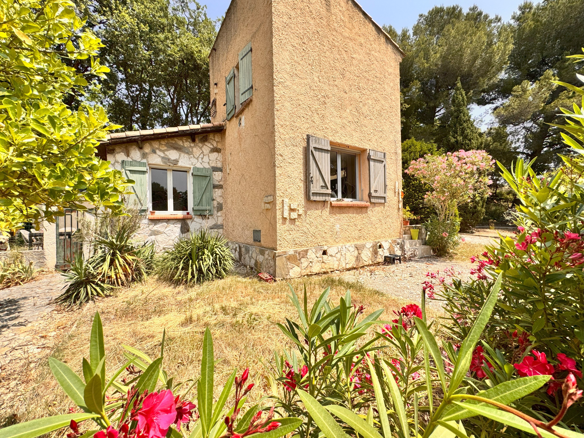 Implantée sur un terrain de 3 200 m², elle offre une surface d’environ 90 m² avec un garage et un atelier indépendant.