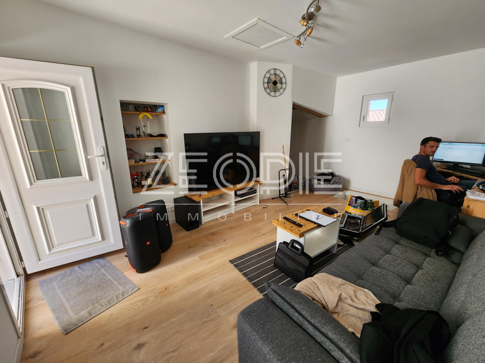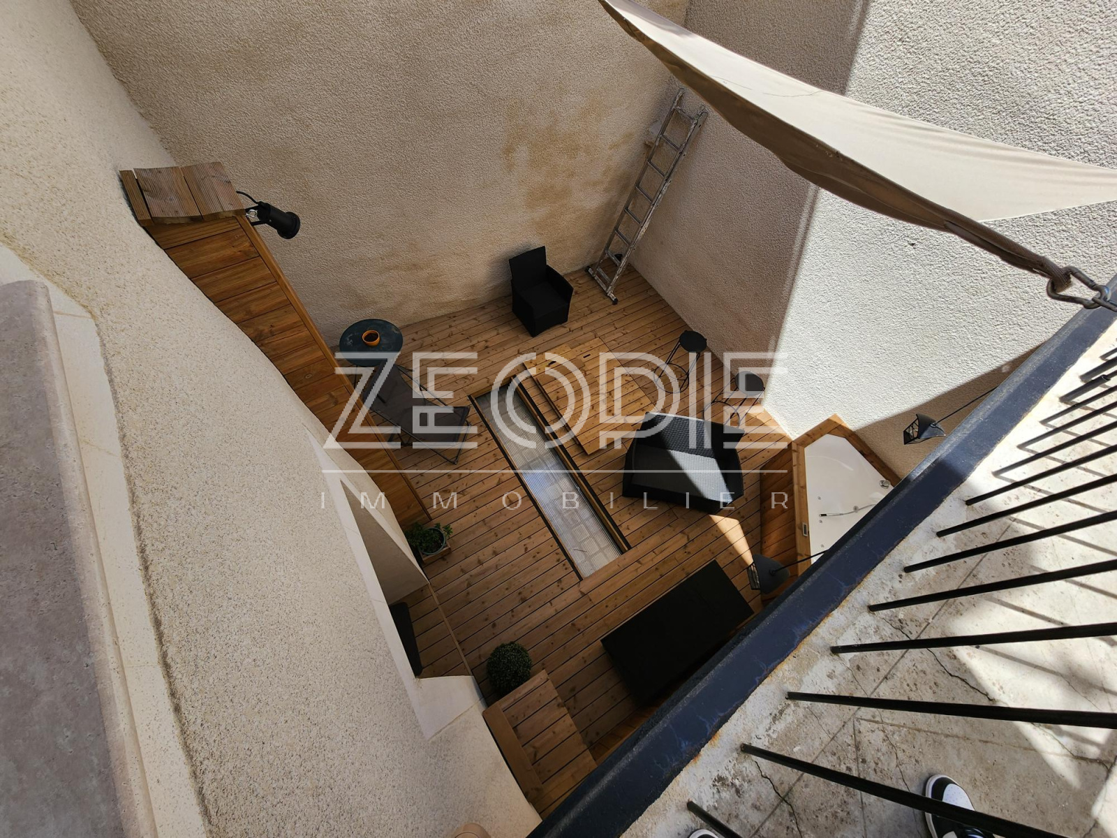 Vous y trouverez un appartement de type 3 avec cour, terrasse et baignoire balnéo, ainsi qu'un appartement de type 2 avec pièce de vie, cuisine et une belle terrasse avec atelier.