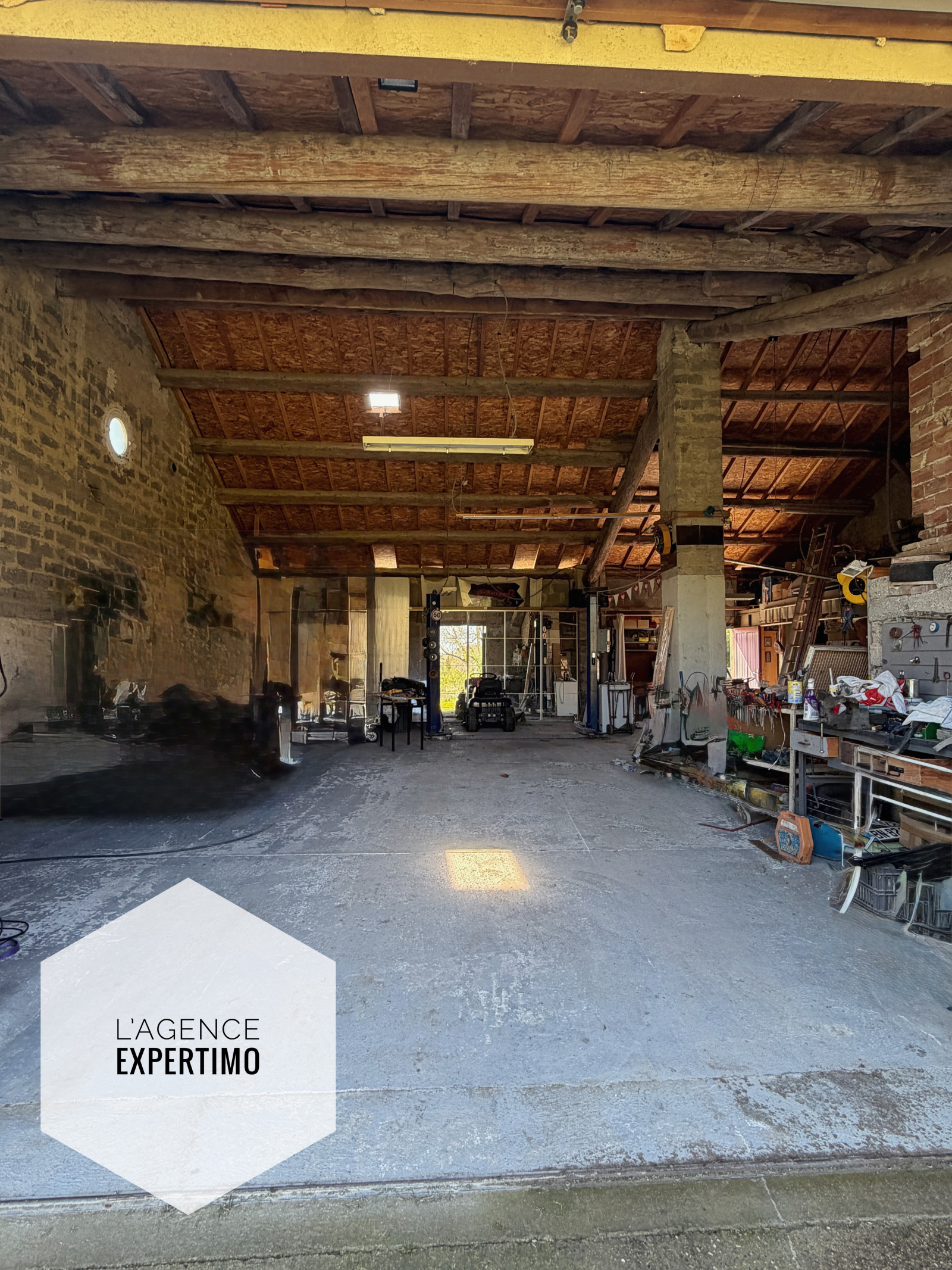 Attenant à la maison se trouve un garage/hangar d'environ 150 m², ainsi que des dépendances, le tout sur une parcelle de 2,6 hectares de terrain en grande partie agricole.