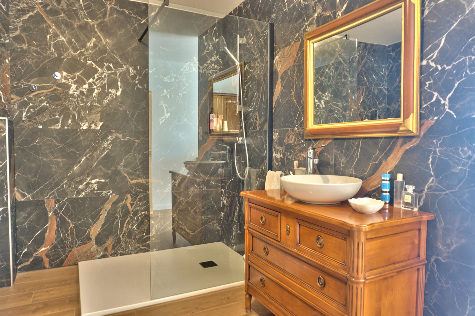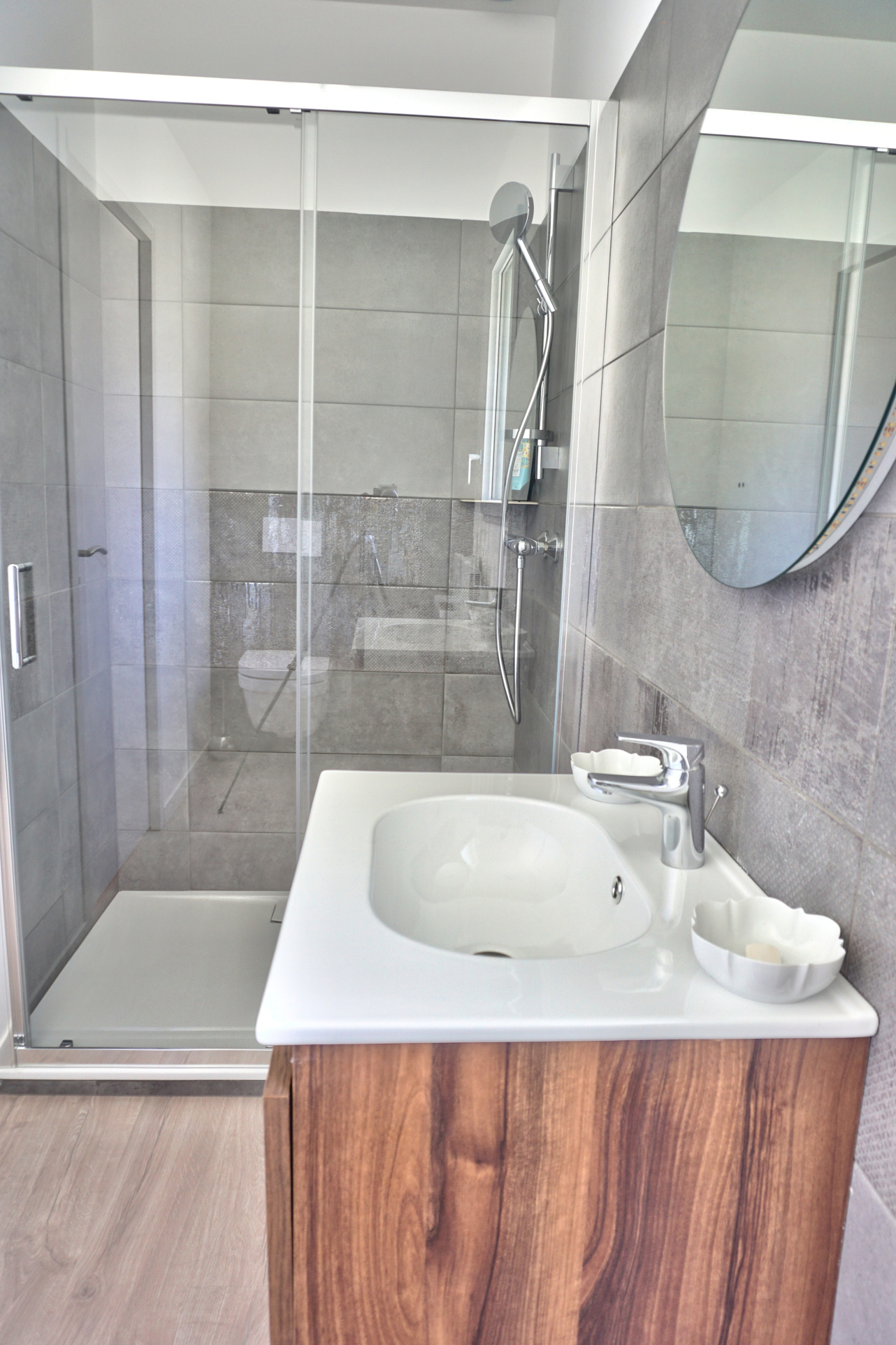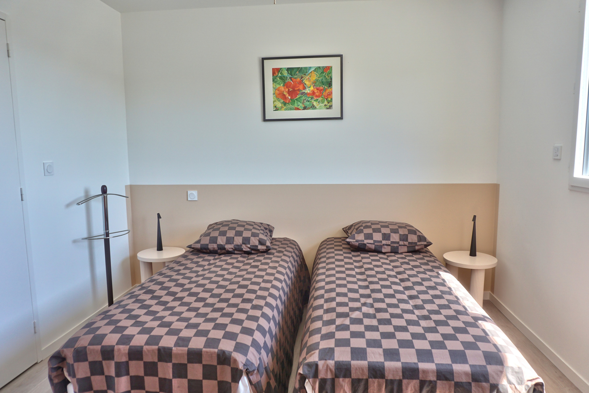 Deuxième étage : Palier desservant 2 chambres, chacune avec salle d’eau et WC privatifs.