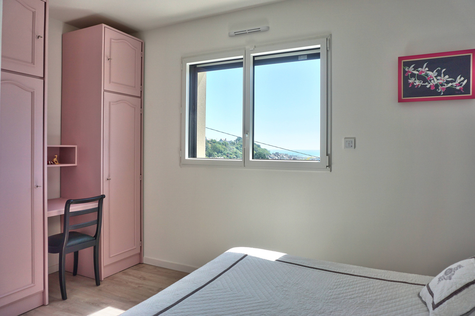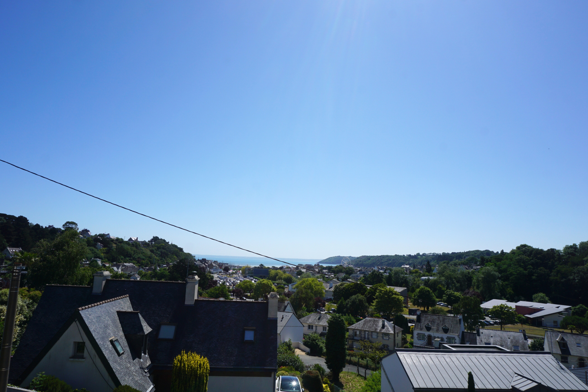 Premier étage – espace de vie : Séjour-salon de 69 m² baigné de lumière grâce à de grandes baies vitrées, offrant une vue panoramique sur la mer et sur Binic, Accès direct à une terrasse en bois de 40 m², Cuisine équipée haut de gamme, Chambre de 14 m² avec salle de bain attenante comprenant douche, baignoire et WC japonais, WC séparés,