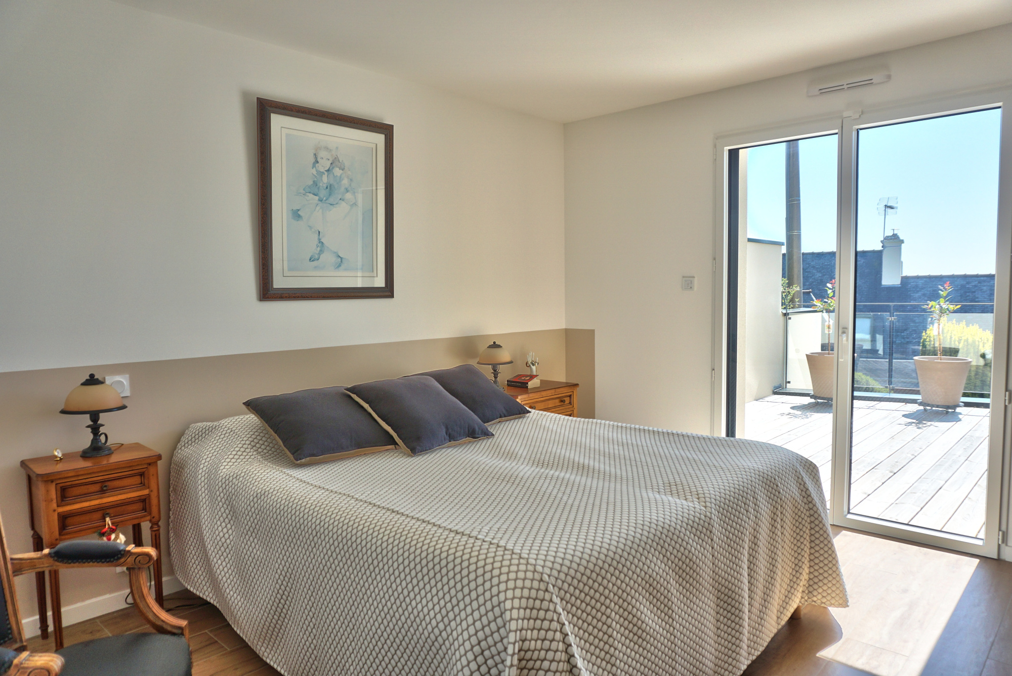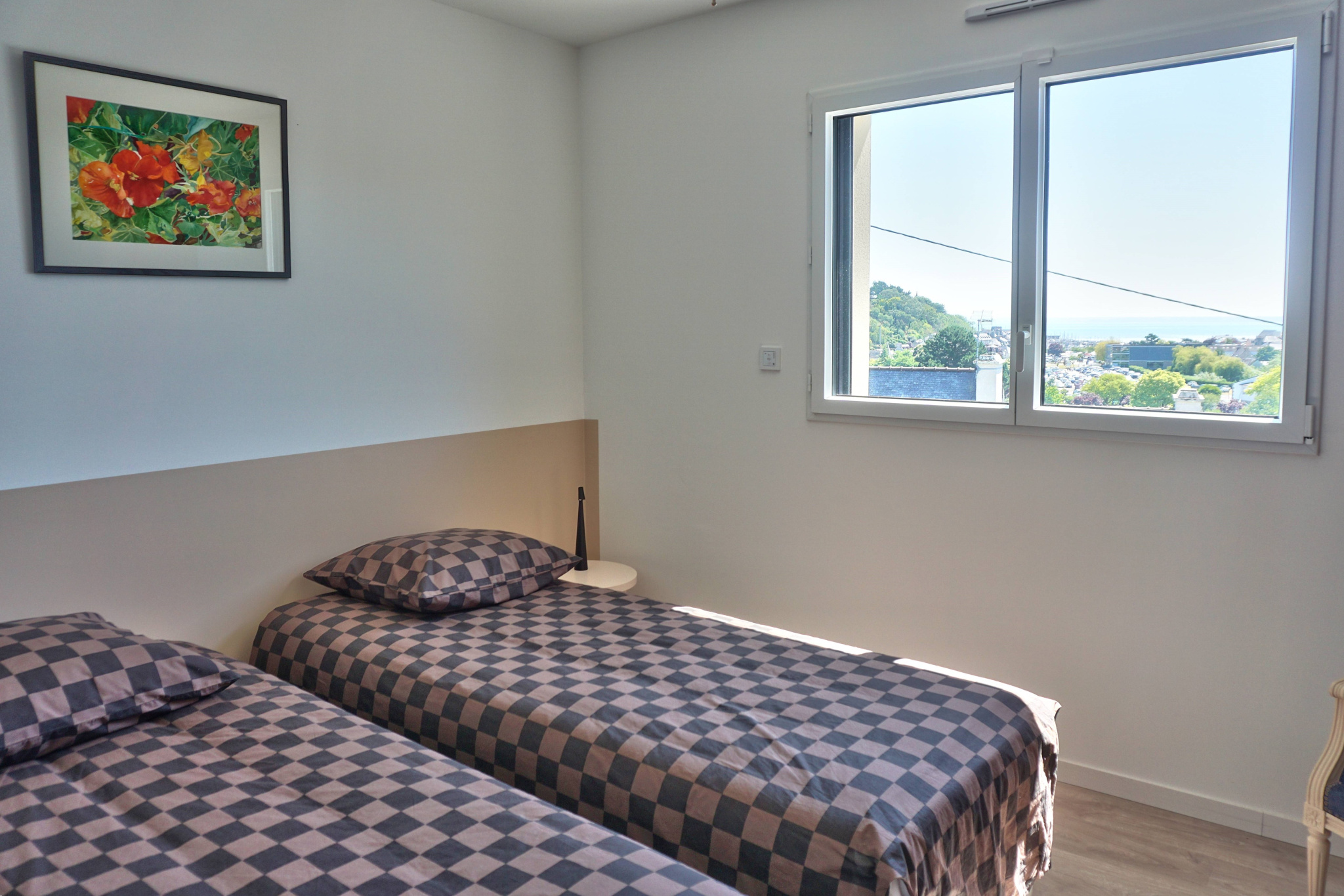Premier étage – espace de vie : Séjour-salon de 69 m² baigné de lumière grâce à de grandes baies vitrées, offrant une vue panoramique sur la mer et sur Binic, Accès direct à une terrasse en bois de 40 m², Cuisine équipée haut de gamme, Chambre de 14 m² avec salle de bain attenante comprenant douche, baignoire et WC japonais, WC séparés,