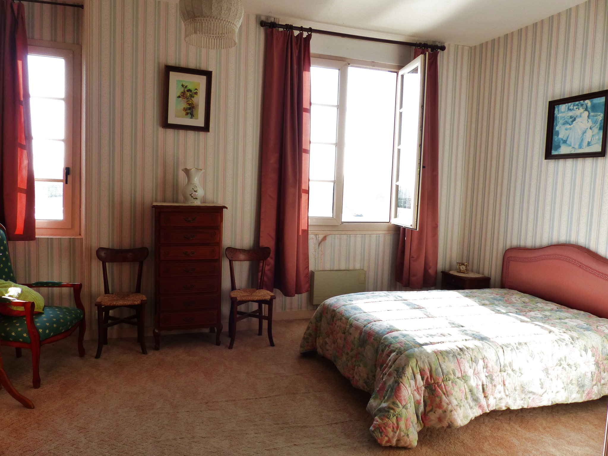 Au premier, deux belles chambres spacieuses dont une avec accès direct à la salle de bains.