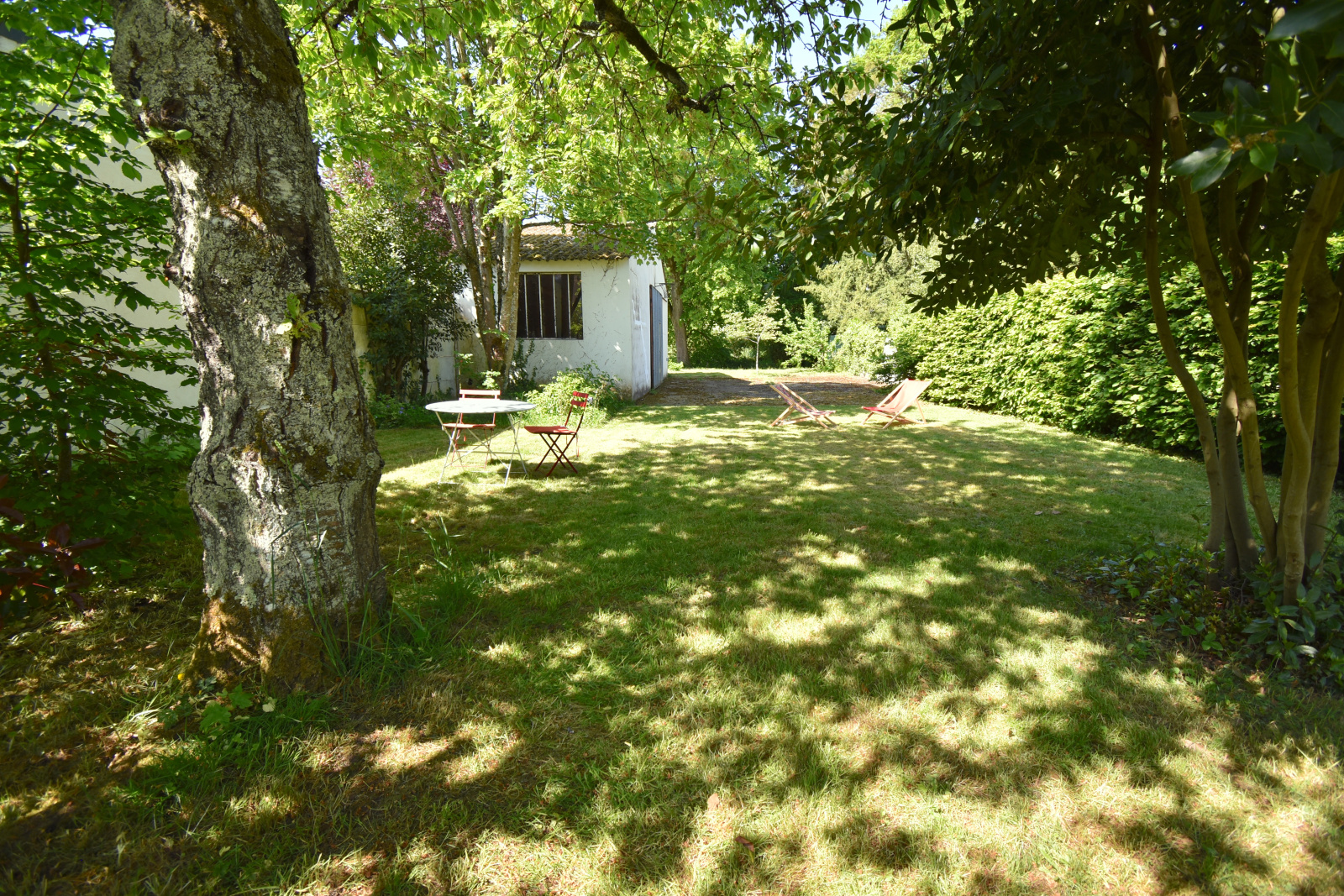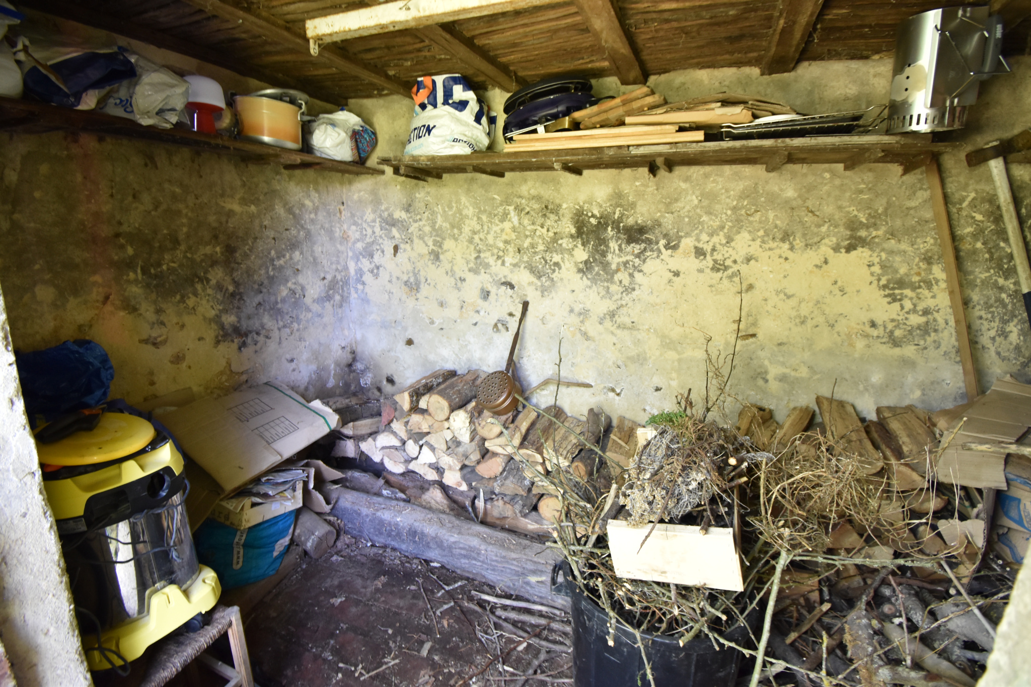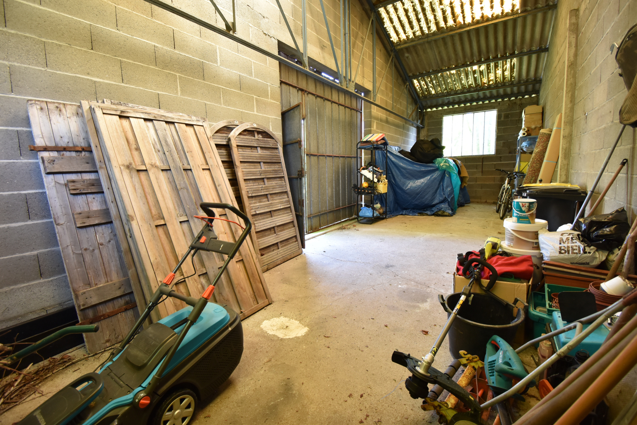 Un abri de jardin, un grand hangar fermé sur un terrain clos et arboré de 660 m² environ.