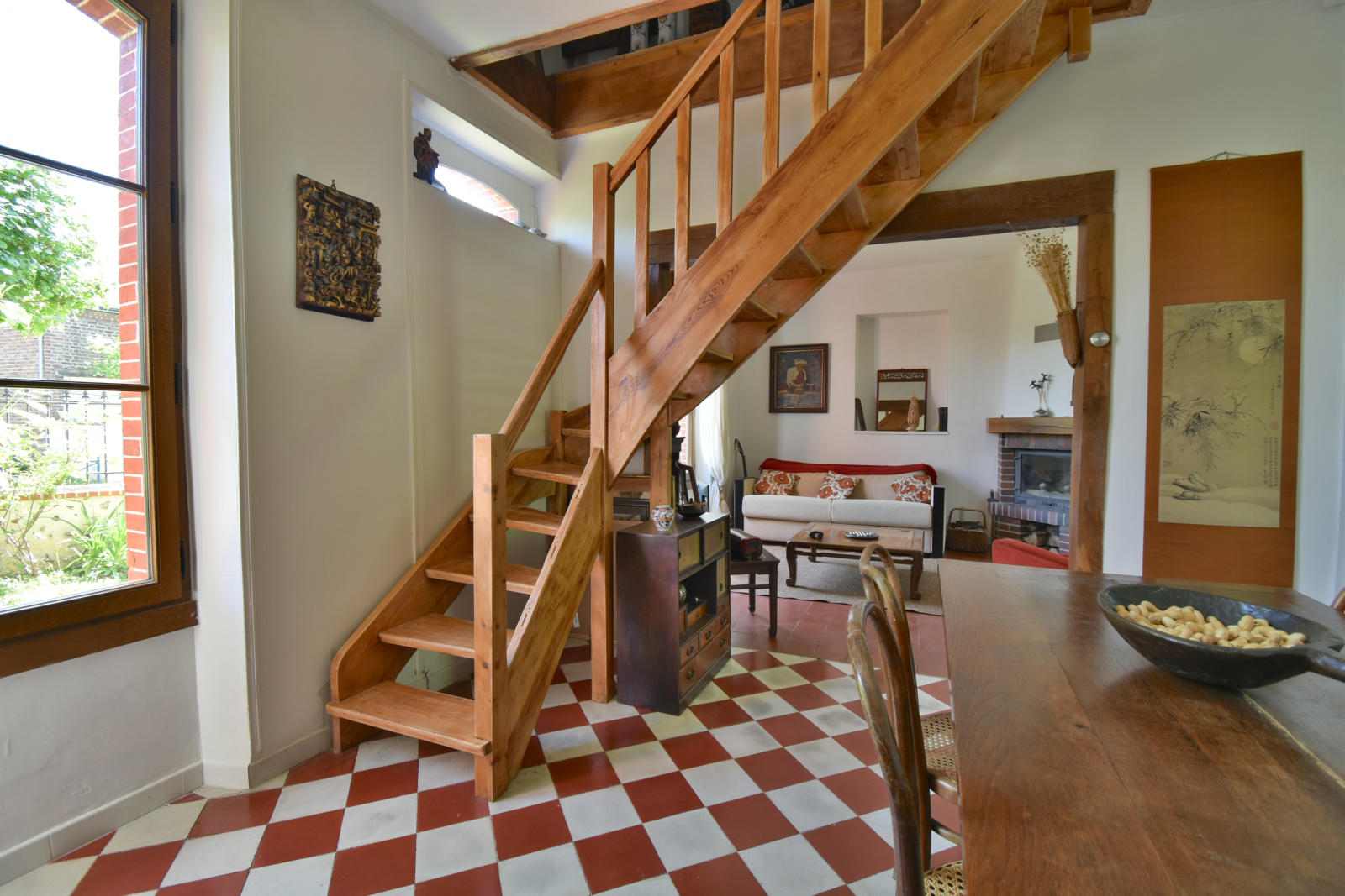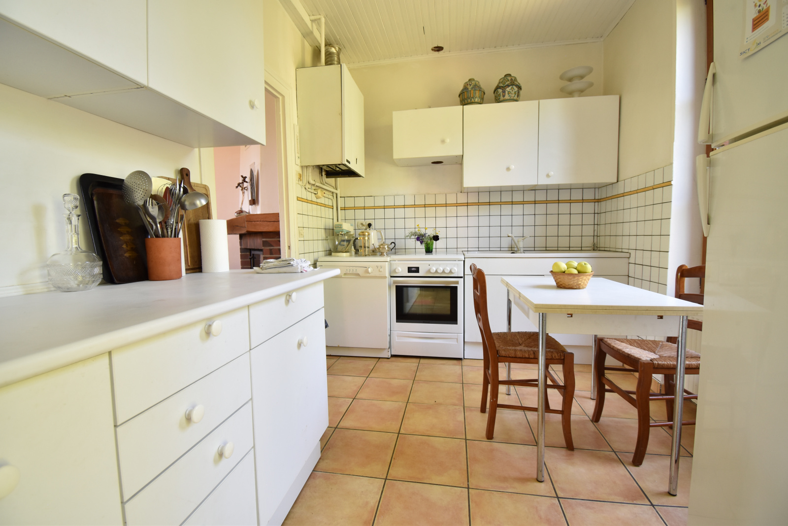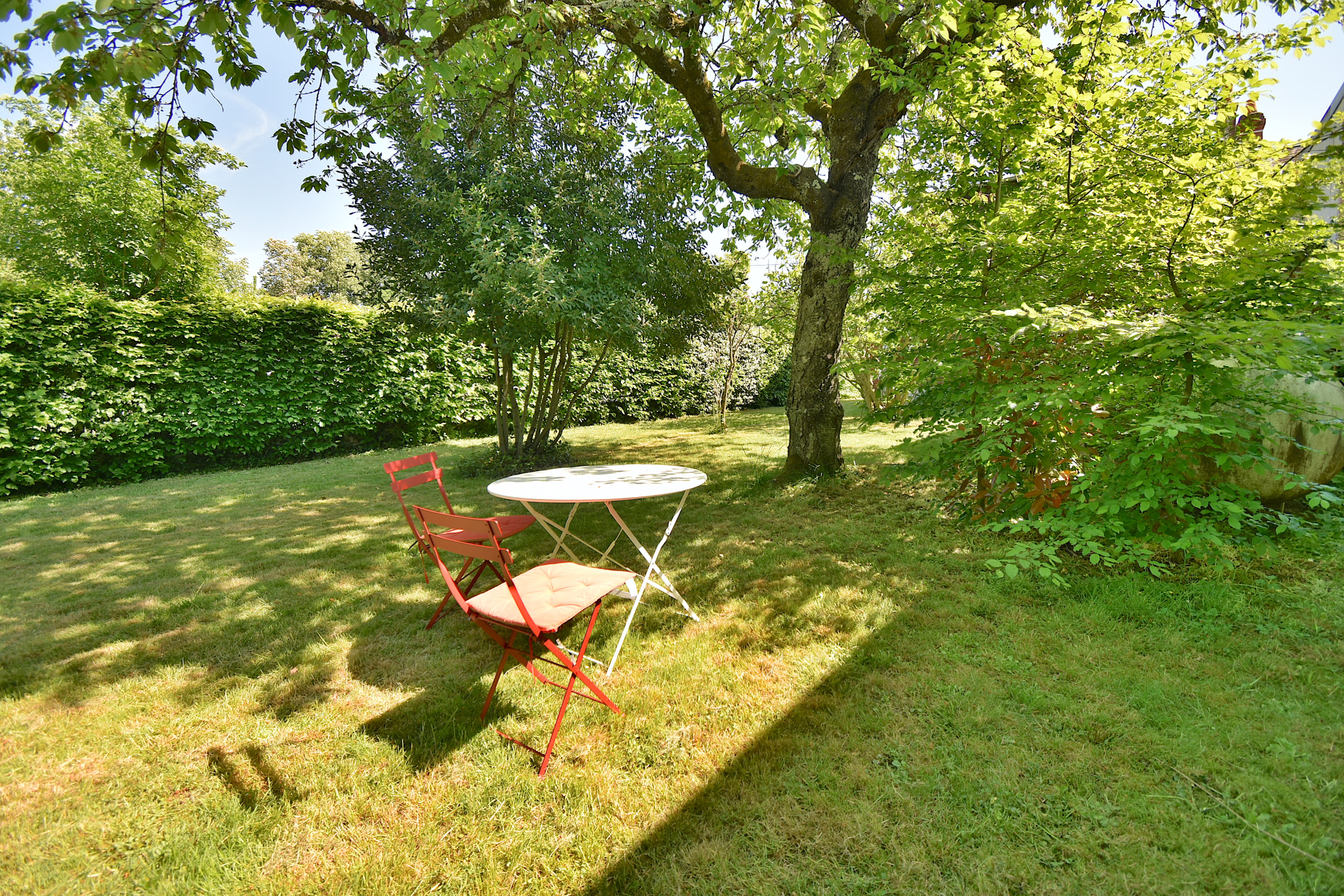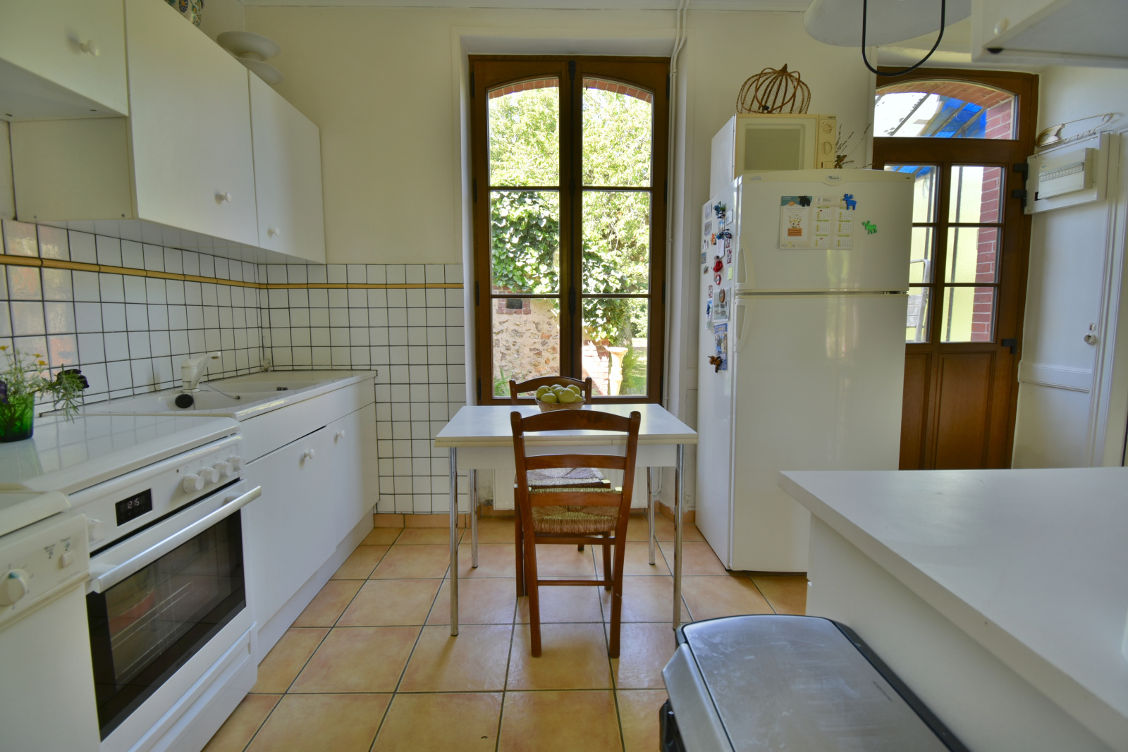 Une entrée, une cuisine lumineuse avec vue sur le jardin, un séjour/salon doté d’une cheminée avec insert donne un esprit chaleureux et cosy à la pièce de 24 m², une salle d’eau équipée d’un WC termine ce niveau.