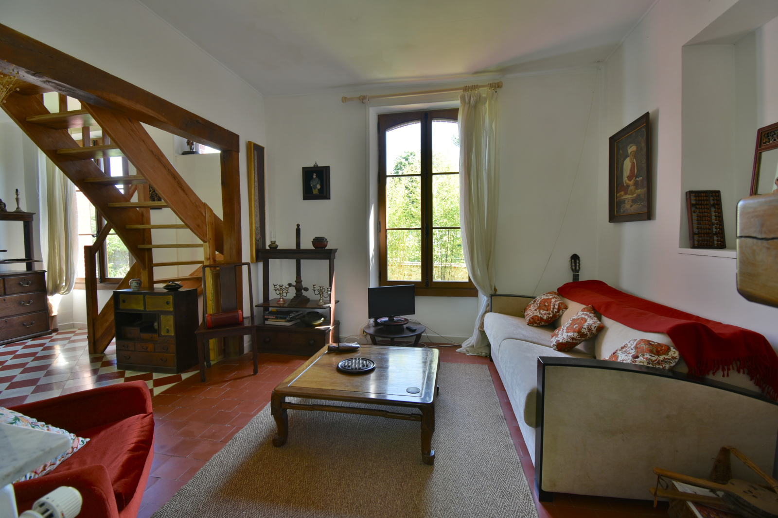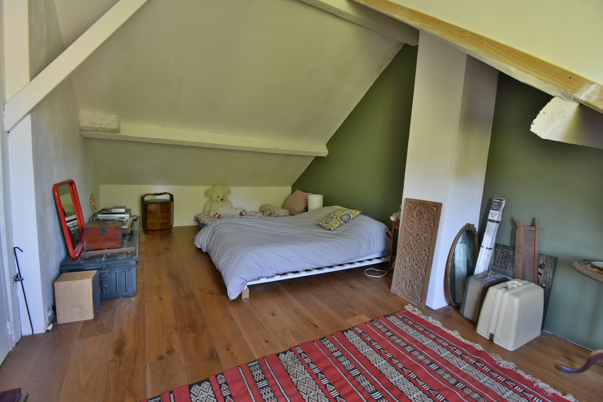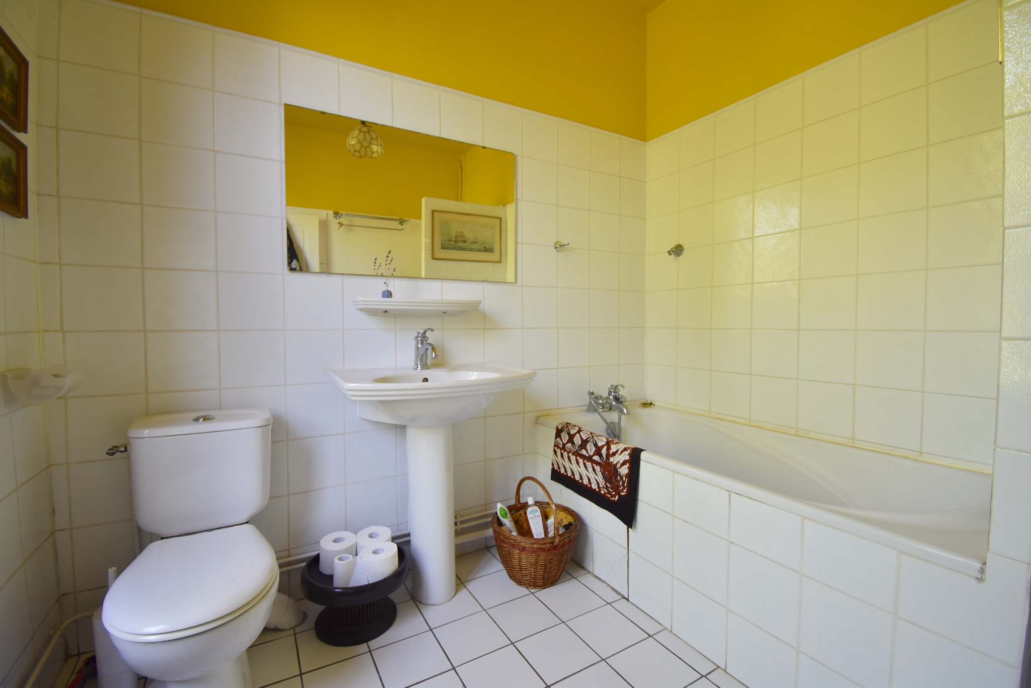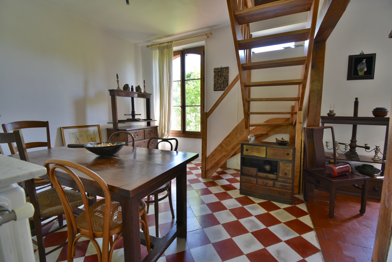 Une entrée, une cuisine lumineuse avec vue sur le jardin, un séjour/salon doté d’une cheminée avec insert donne un esprit chaleureux et cosy à la pièce de 24 m², une salle d’eau équipée d’un WC termine ce niveau.