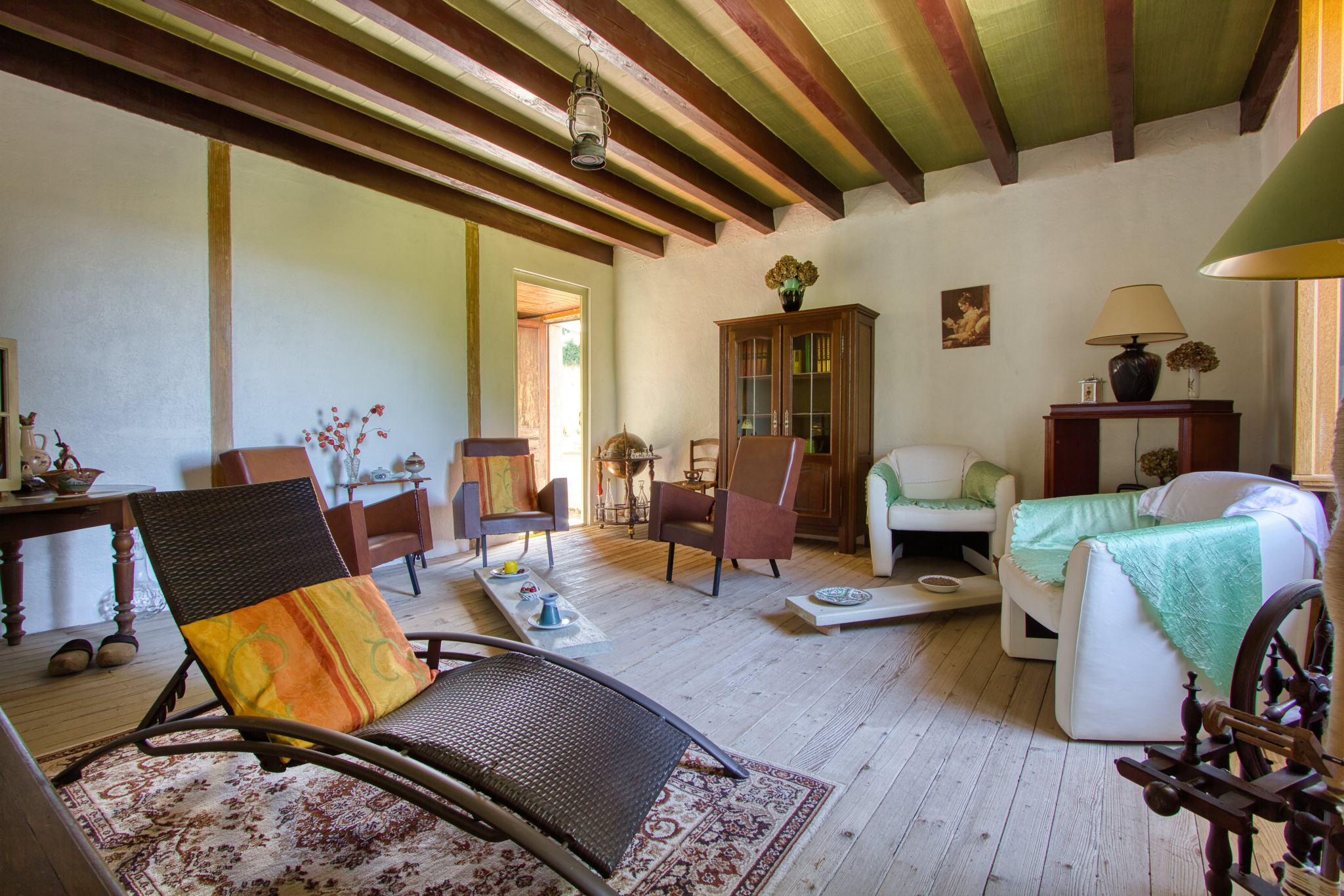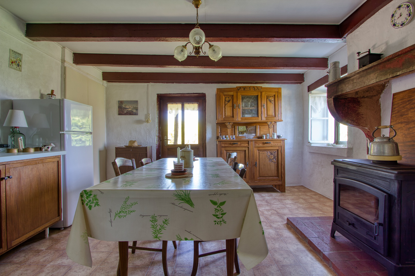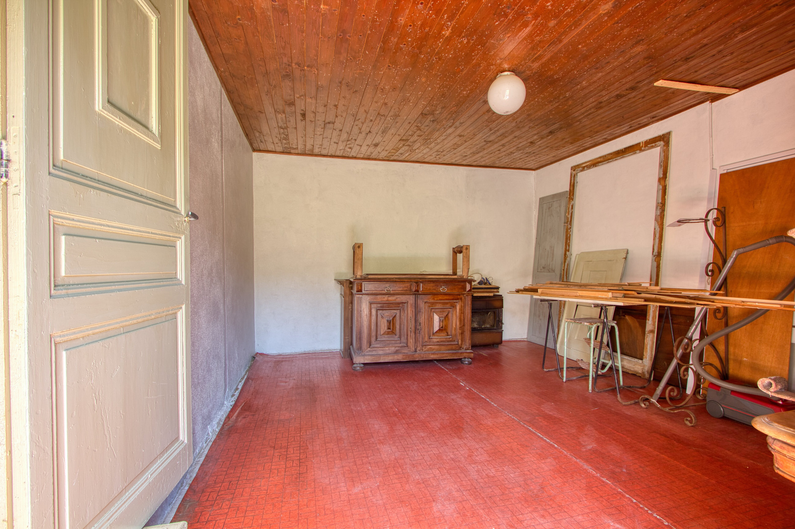 - À l'étage vous découvrirez une cuisine avec un poêle à bois, un beau salon, une chambre, une salle de douches et une belle pièce pouvant aisément faire office d'une suite parentale ou grand bureau sur ce niveau.