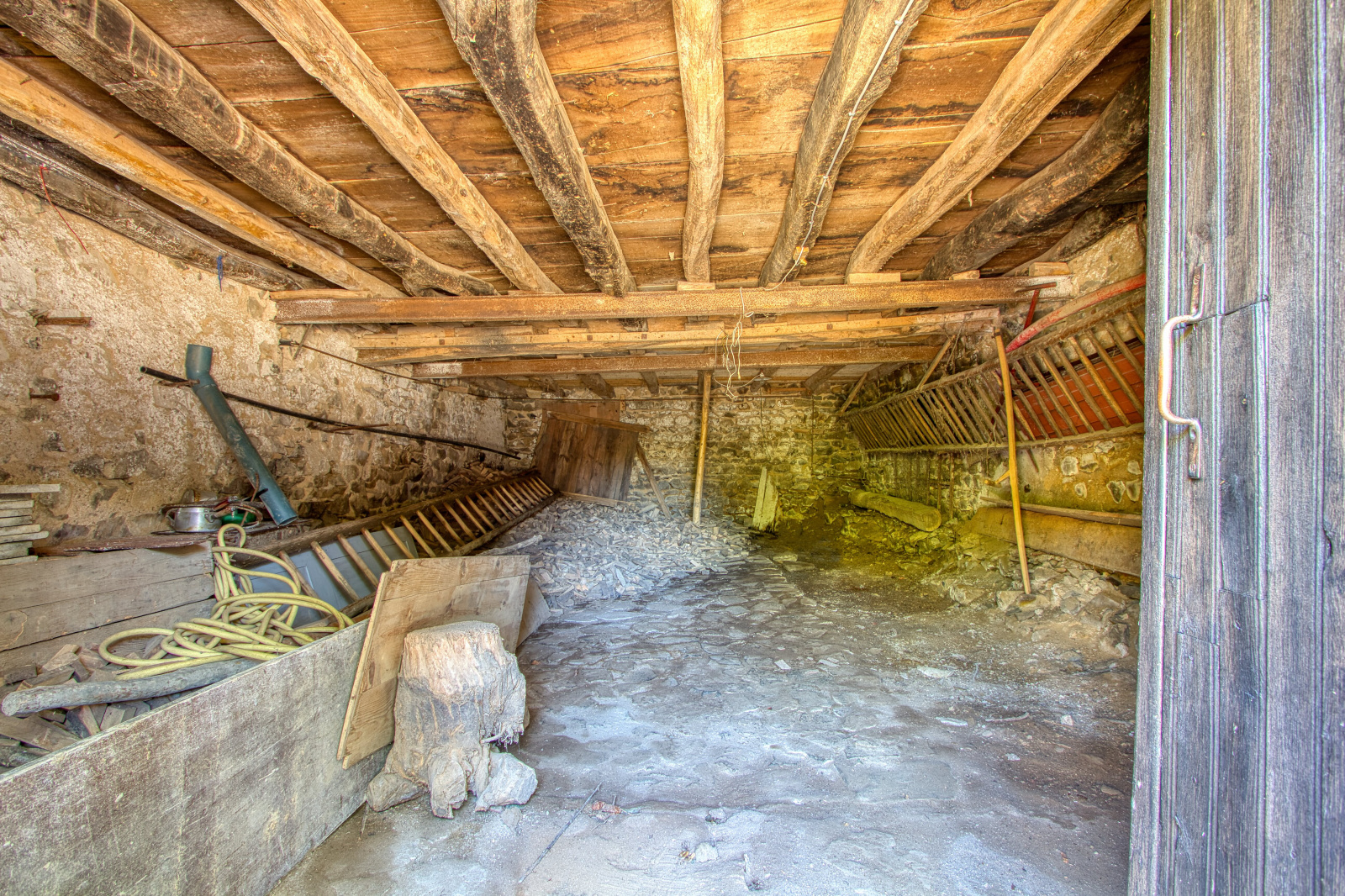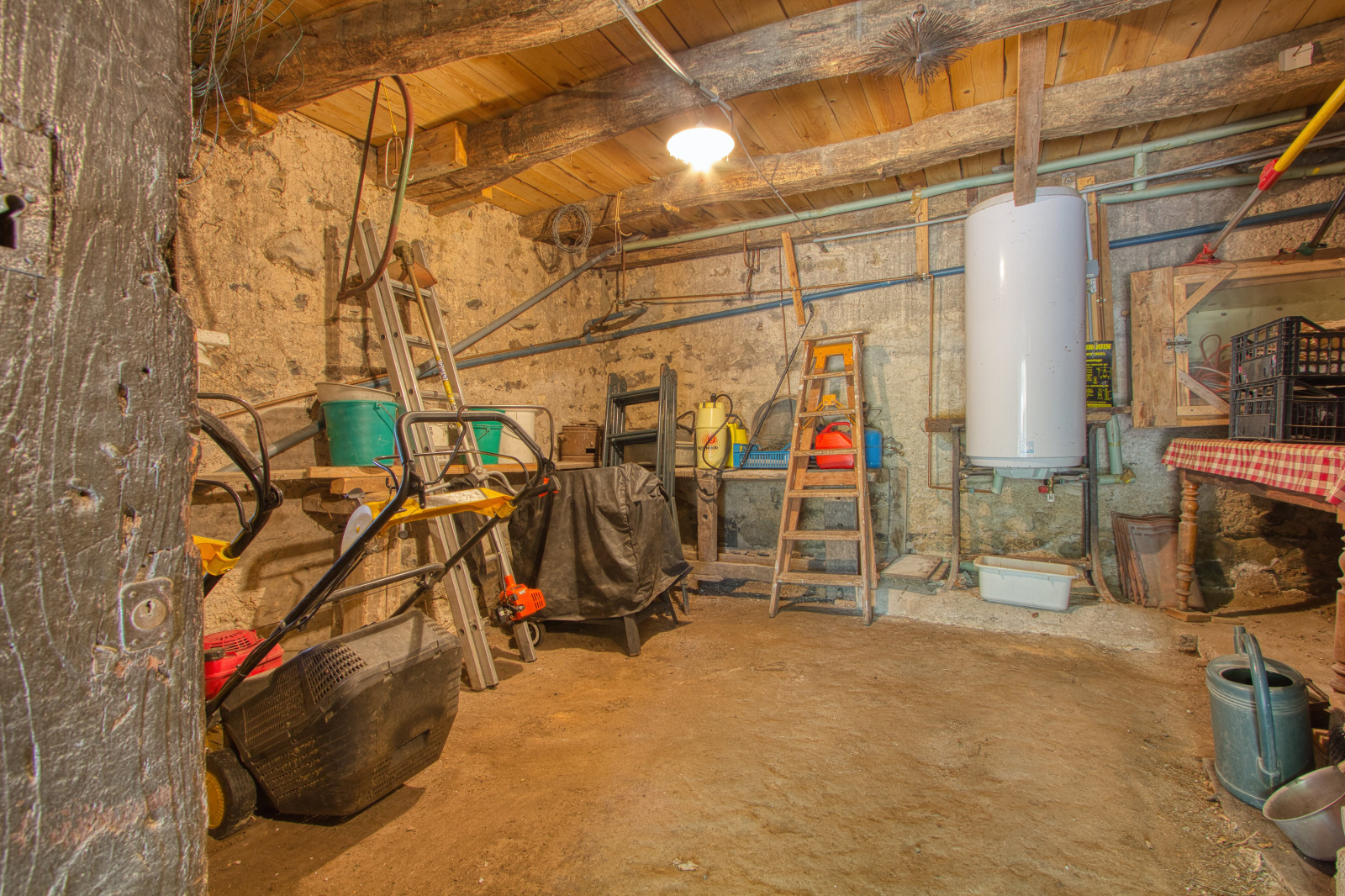 - Au rdc se trouve une cave, un bûcher, une ancienne écurie et un WC.