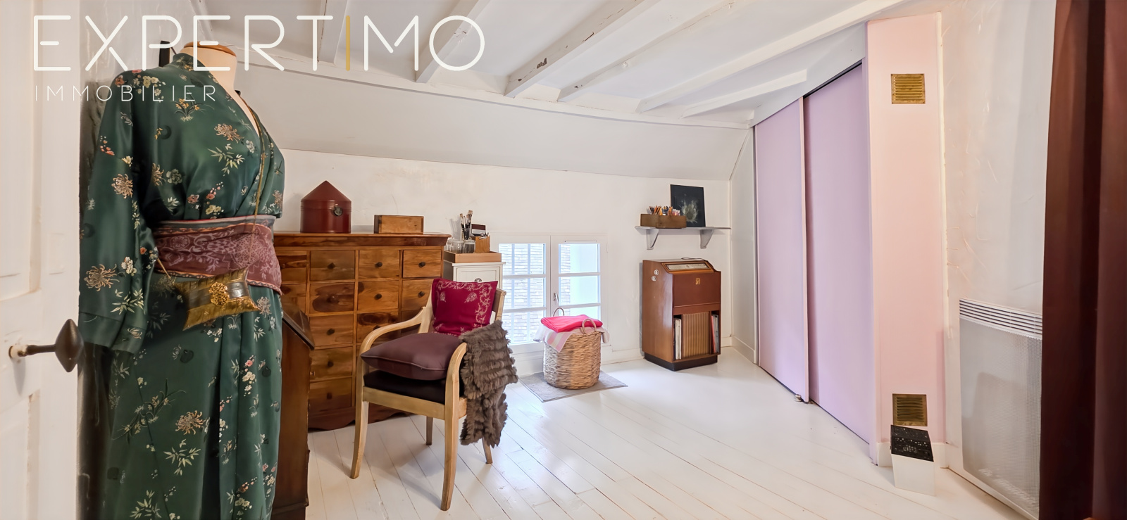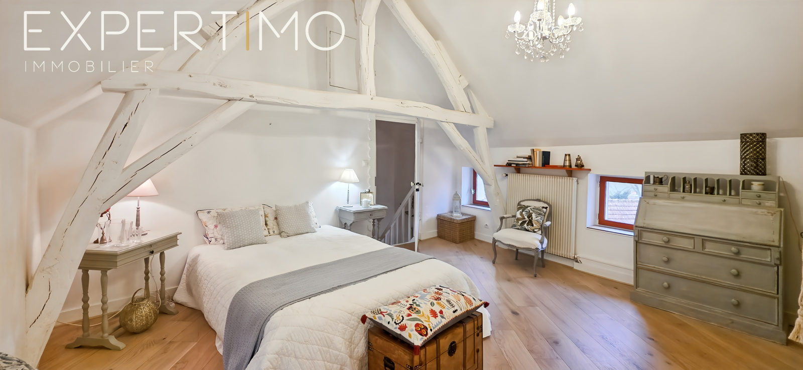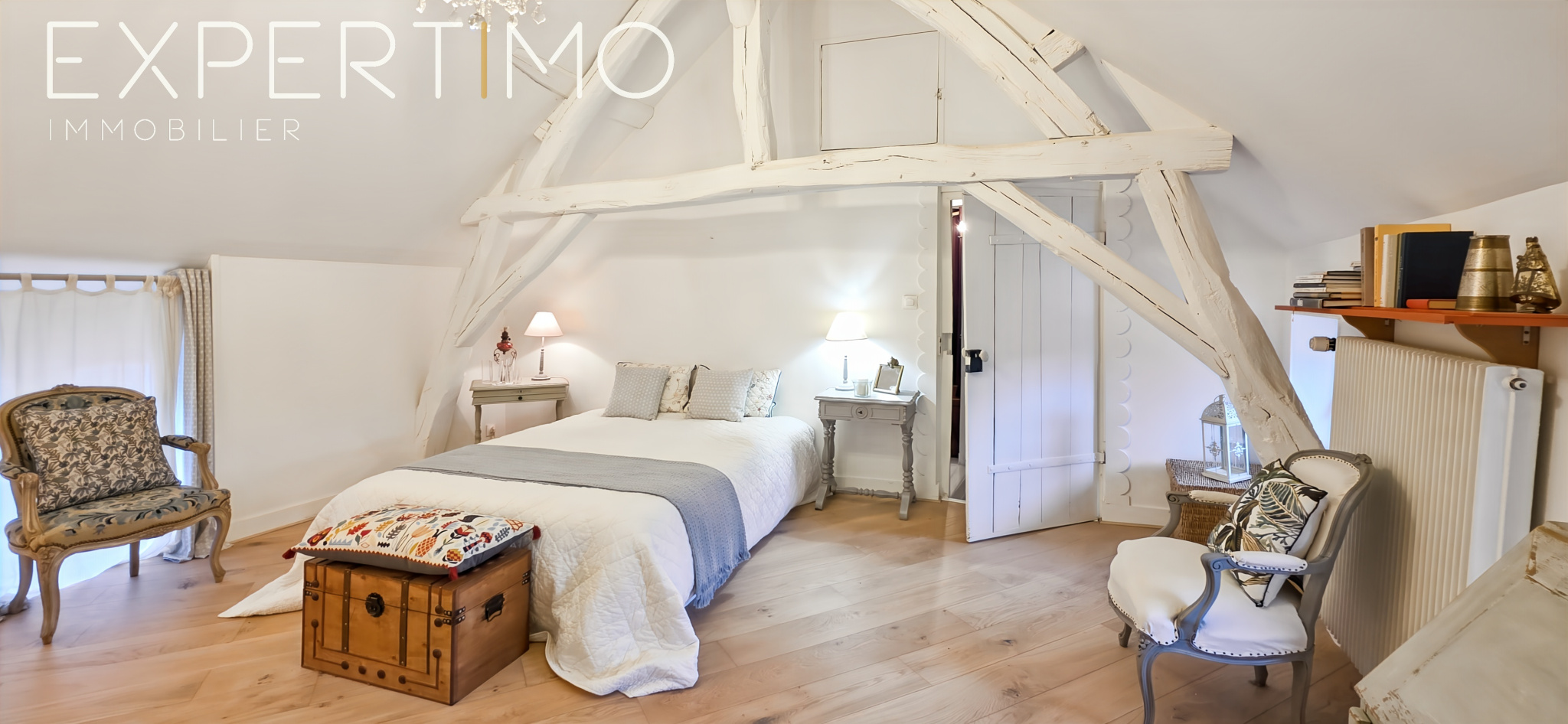 Sous les combles, deux chambres supplémentaires offrent de nombreuses possibilités d’aménagement. La première, plus cosy, pourvue de rangements, se prête parfaitement à un bureau, une chambre d’enfant ou d’amis. La seconde, aux volumes plus généreux, dispose d’un parquet neuf et marie avec élégance le charme de l’ancien à des touches plus contemporaines.