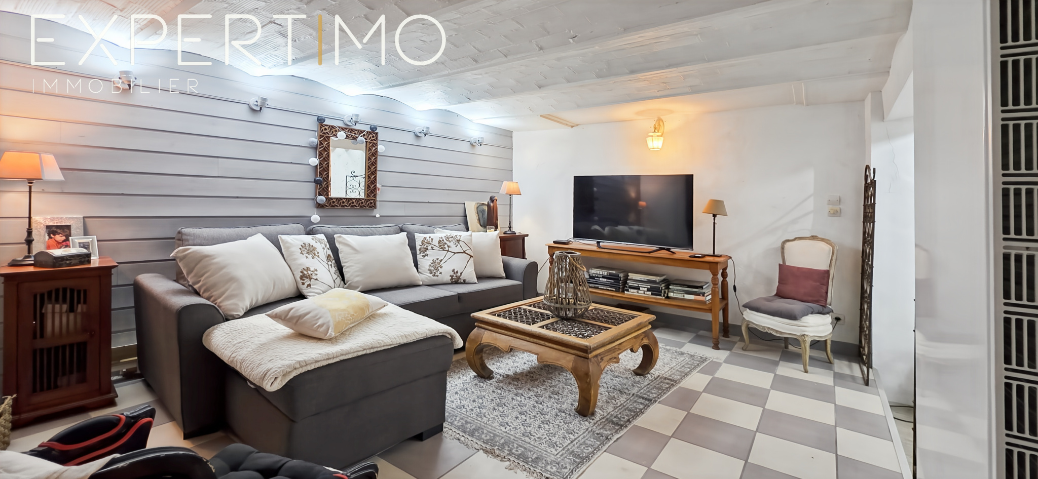 Un niveau inférieur complète la maison. Partiellement en sous-sol mais bénéficiant de lumière naturelle grâce à ses ouvertures sur rue, il accueille actuellement un double espace salon. Ce volume polyvalent pourra aisément être transformé en atelier, salle de sport ou espace professionnel indépendant. Une salle d’eau avec sanitaires est déjà présente à ce niveau.
