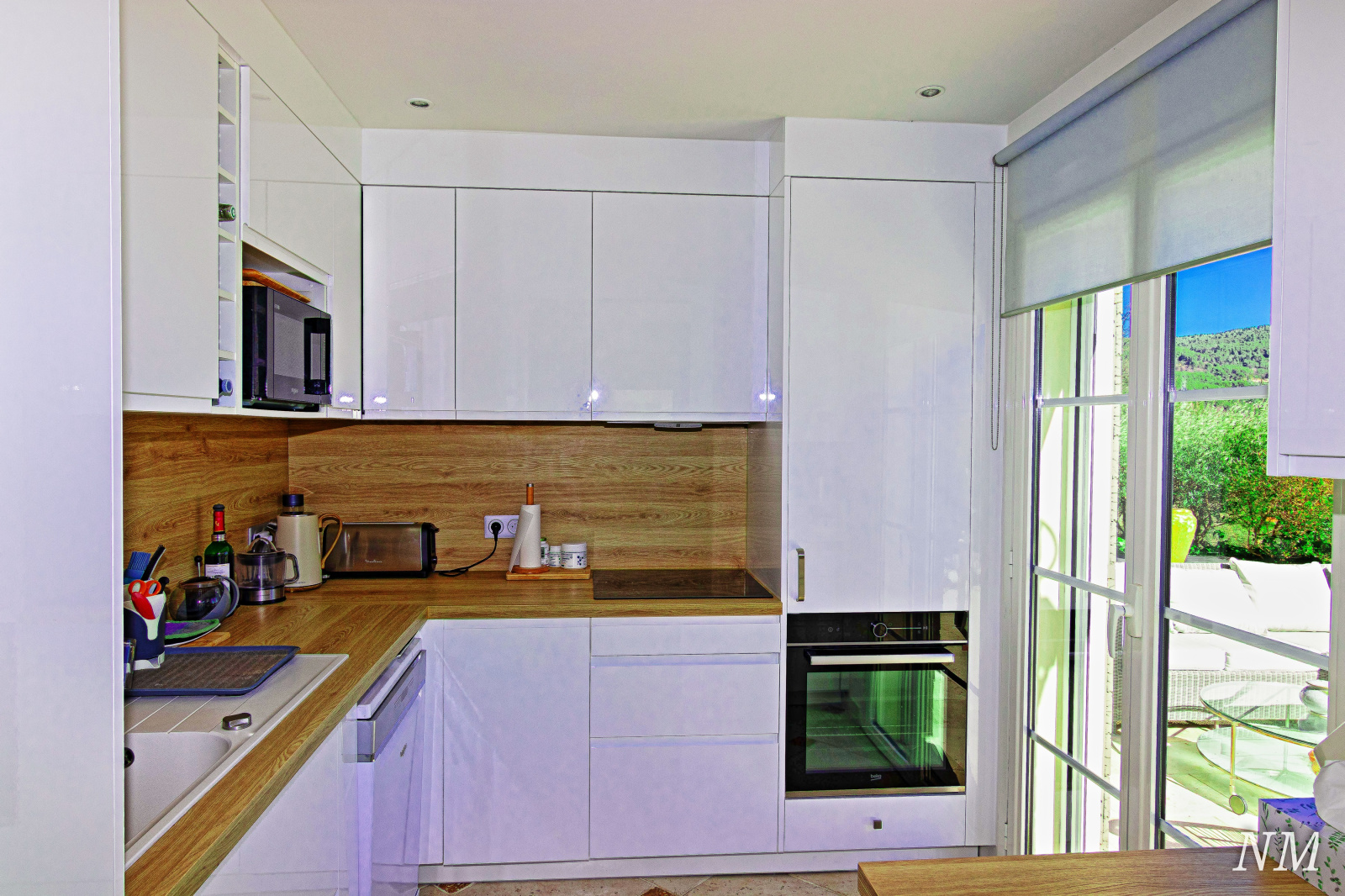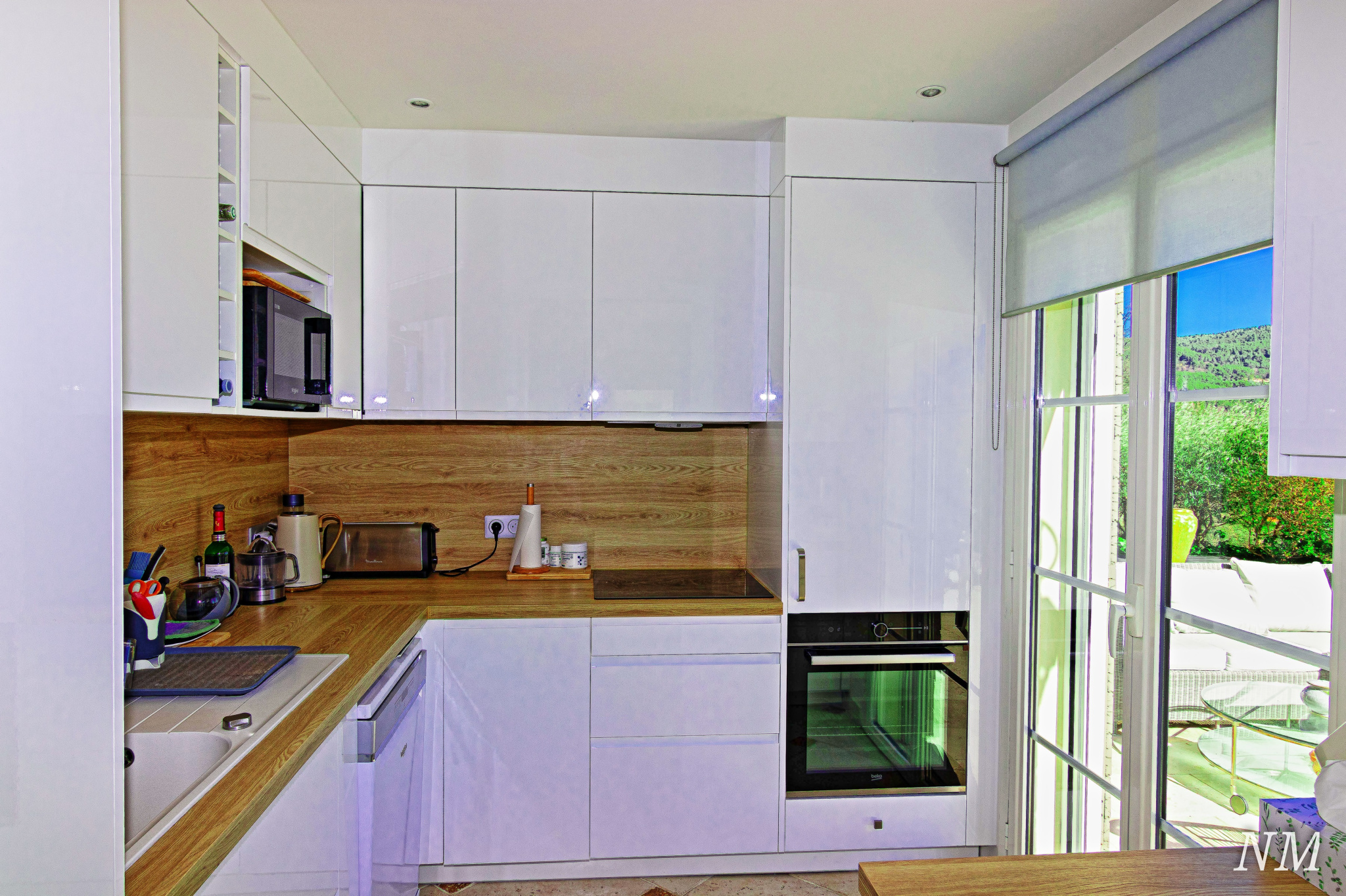 Au rez-de-jardin, un salon cheminée(insert) et une cuisine équipée ouverte totalisent environ 47 m², le tout donnant sur une superbe terrase carrelée.