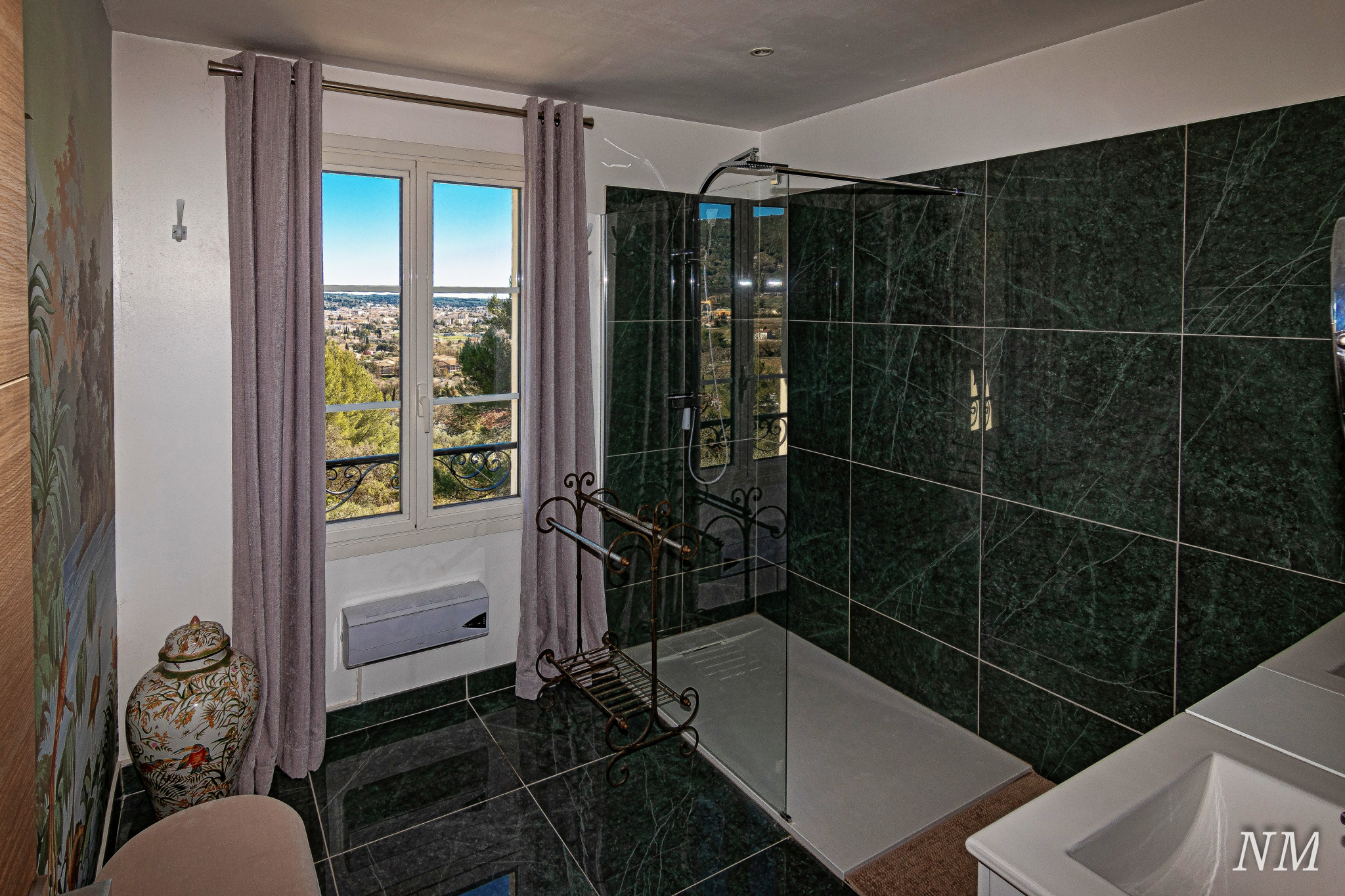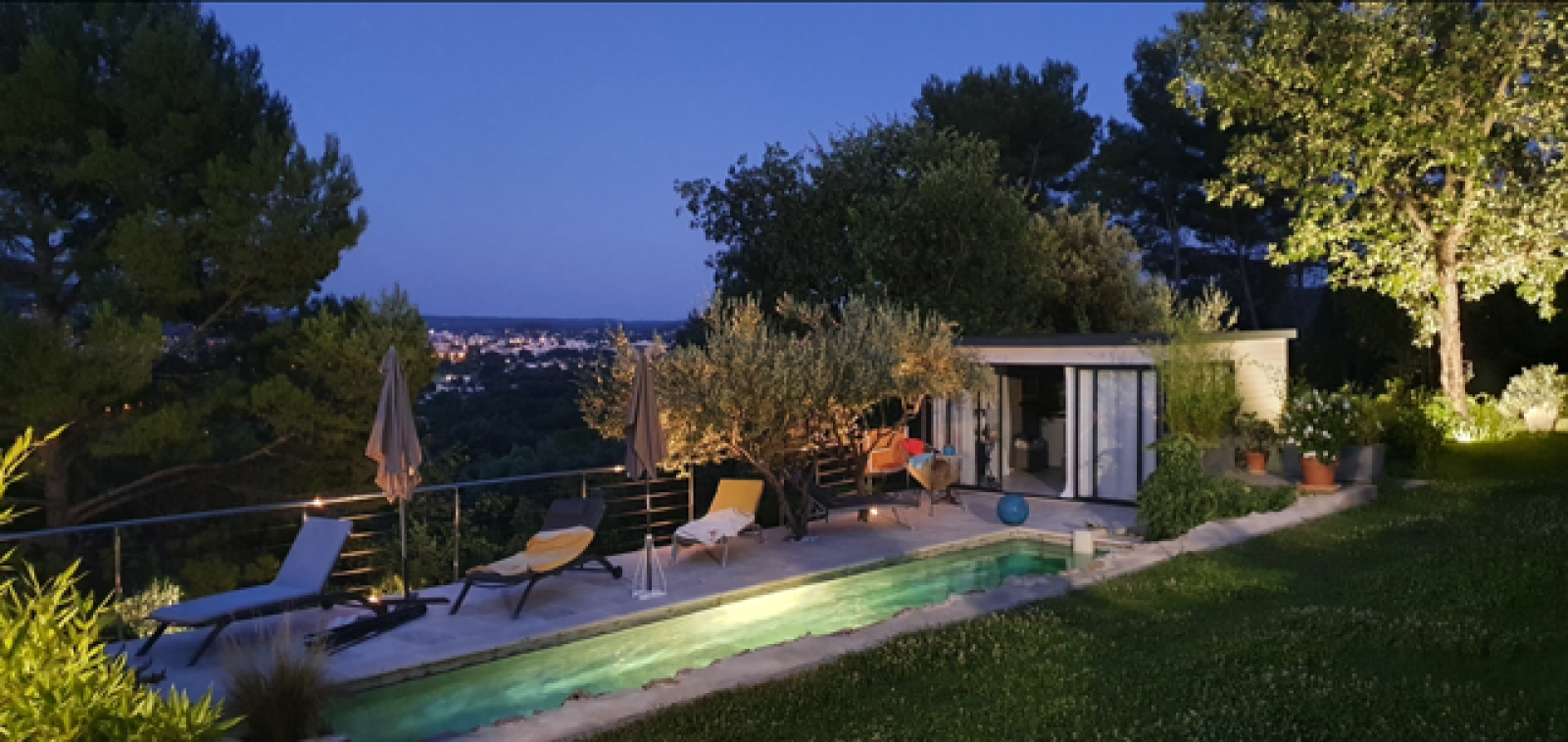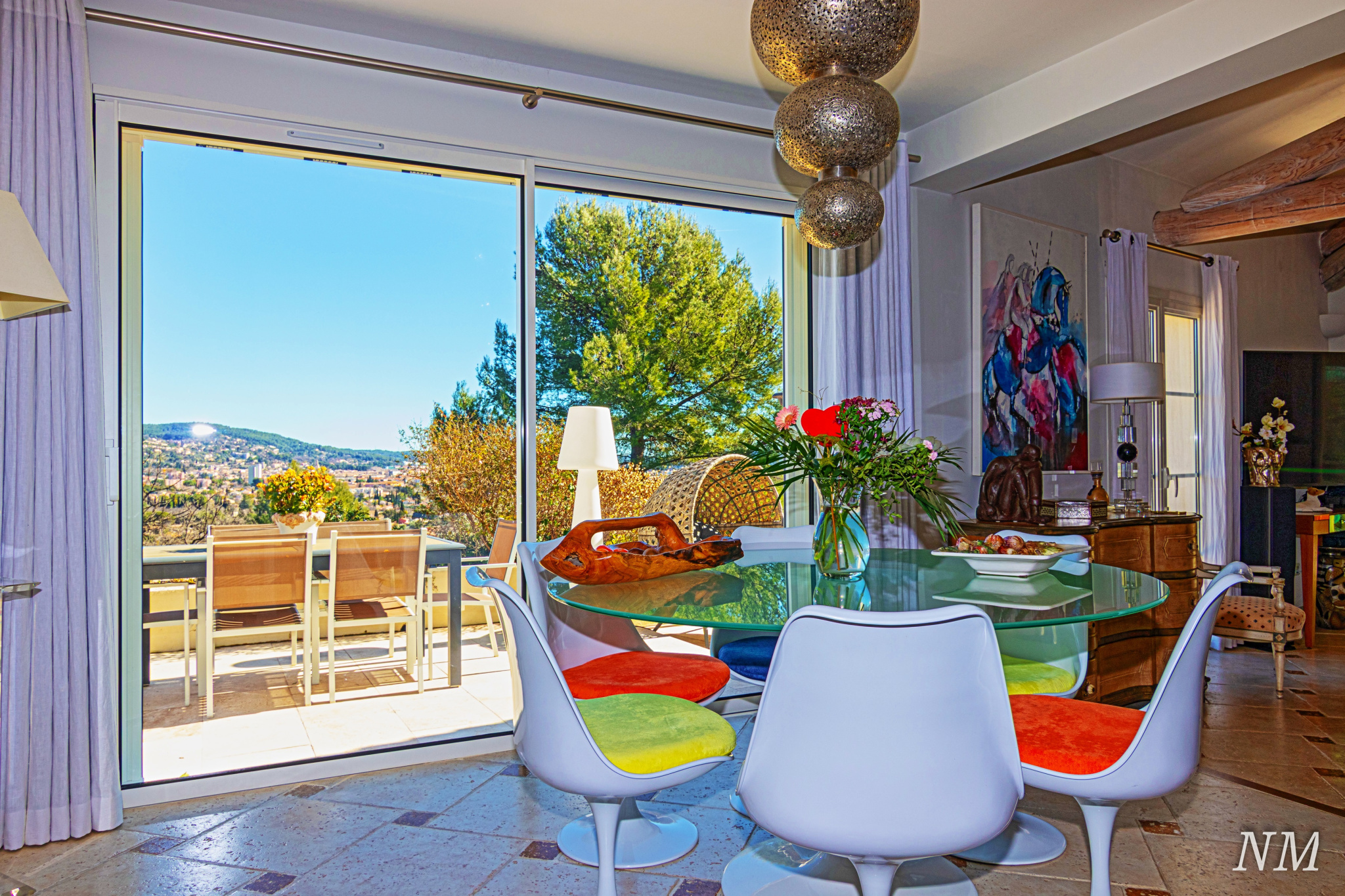 La vue, sur les olibiers et complètement dégagée sur le sud-est, caresse les toits de la ville.