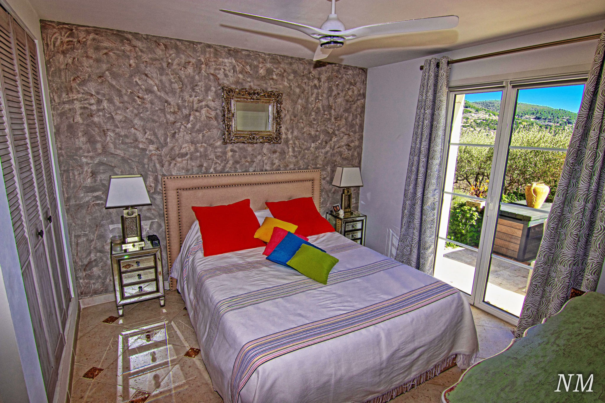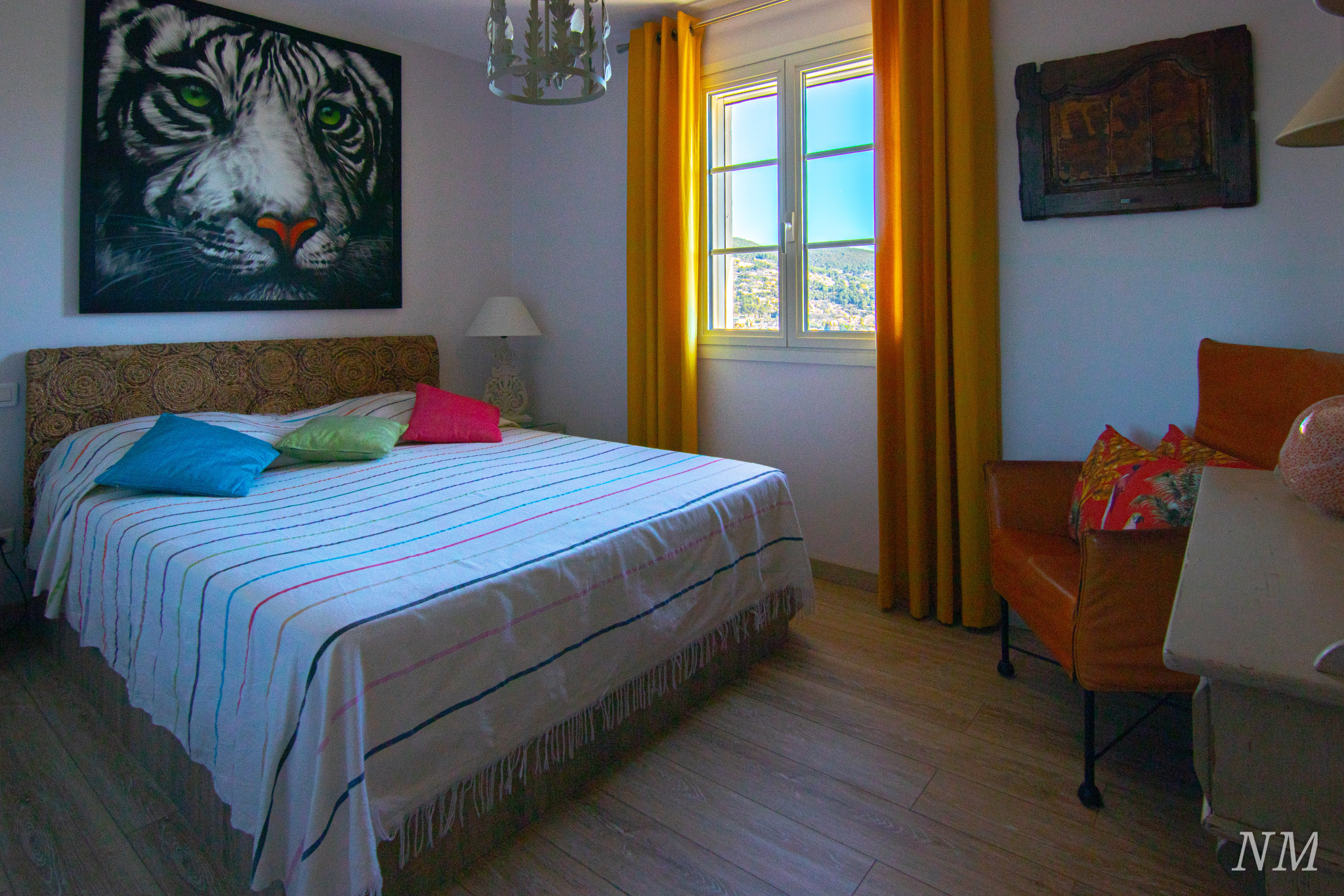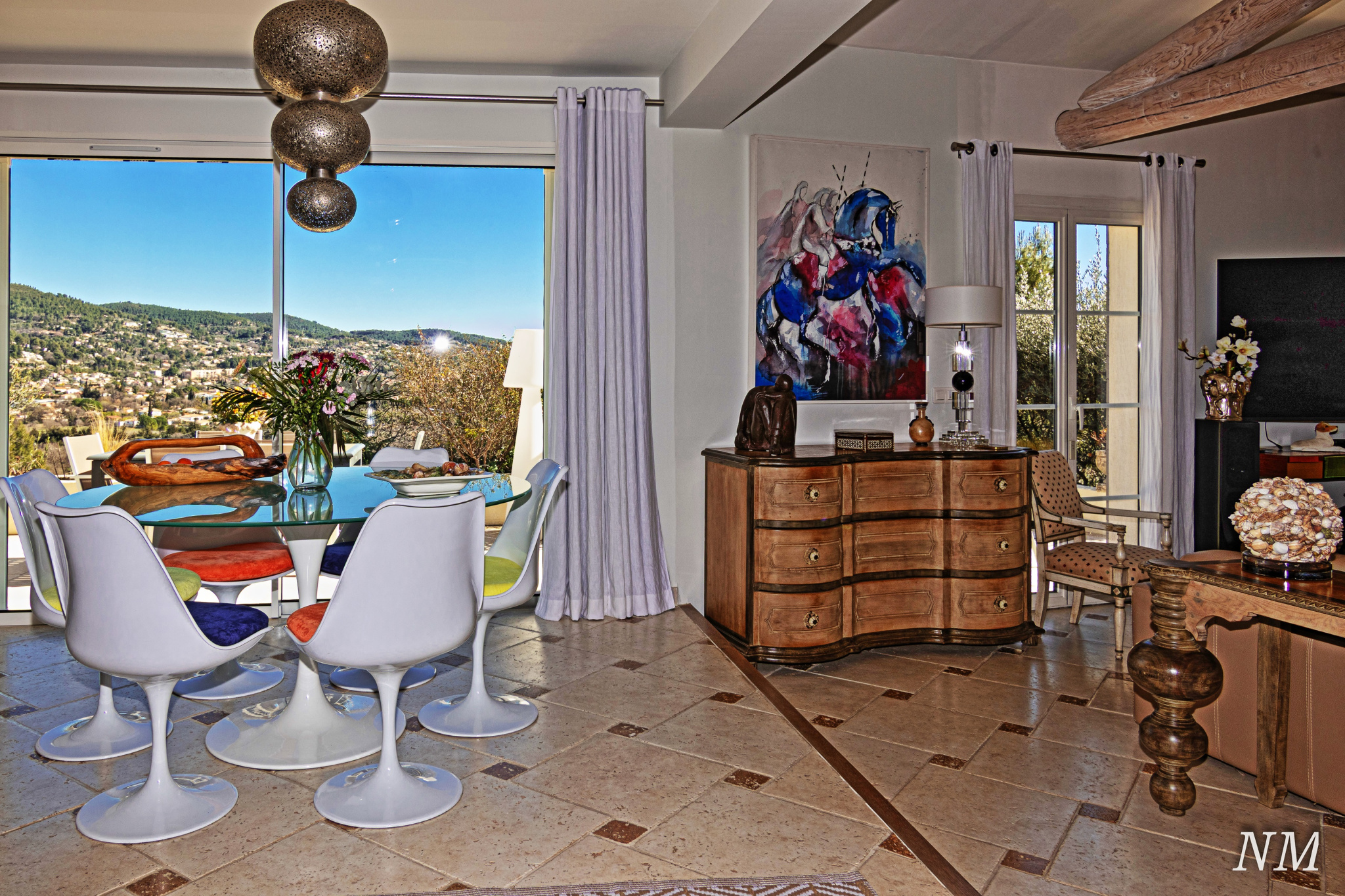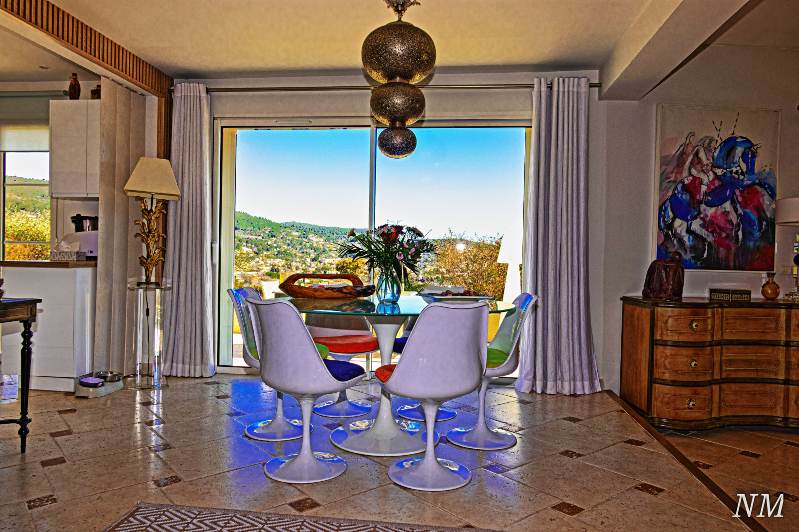 La vue, sur les olibiers et complètement dégagée sur le sud-est, caresse les toits de la ville.