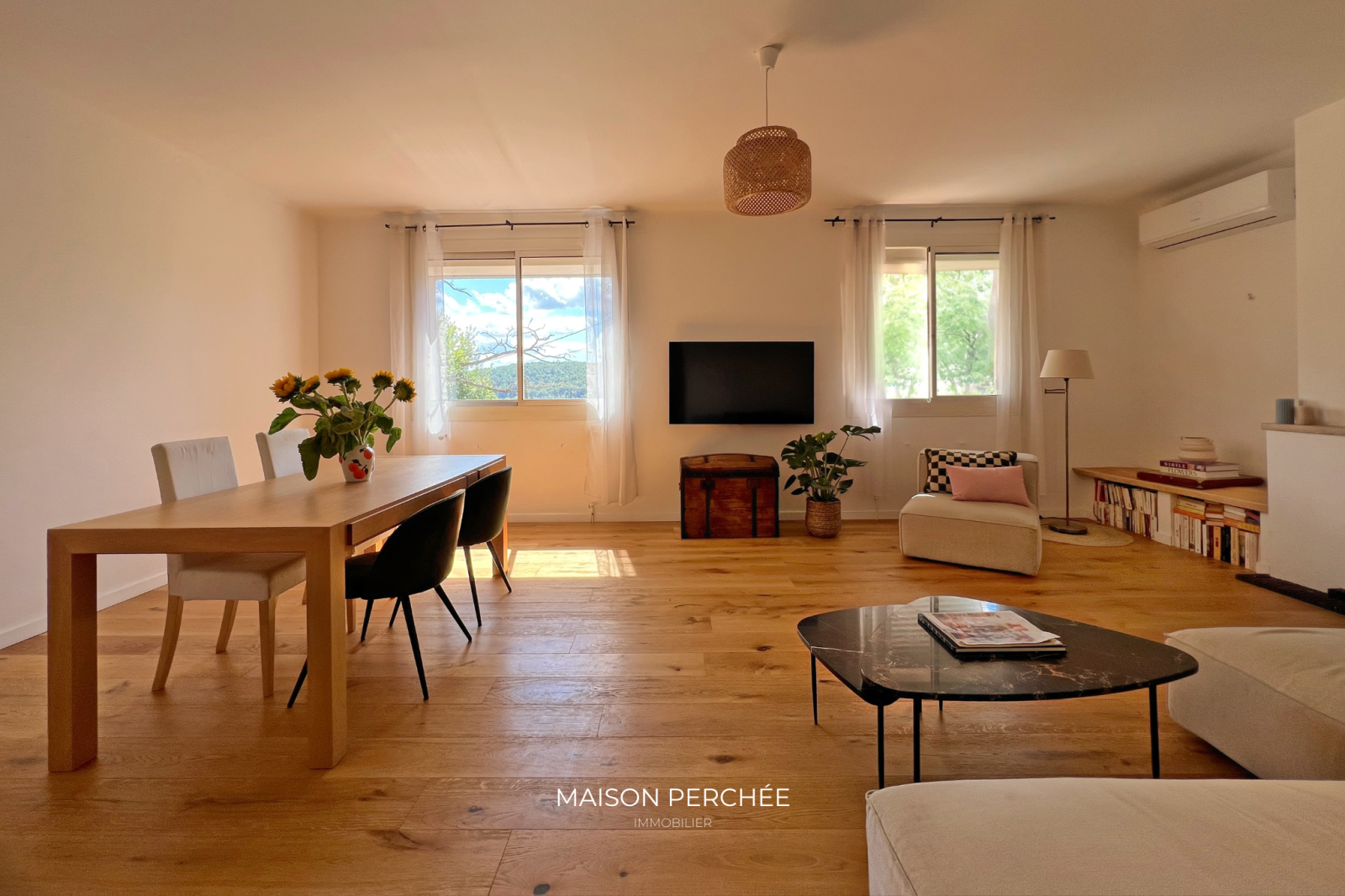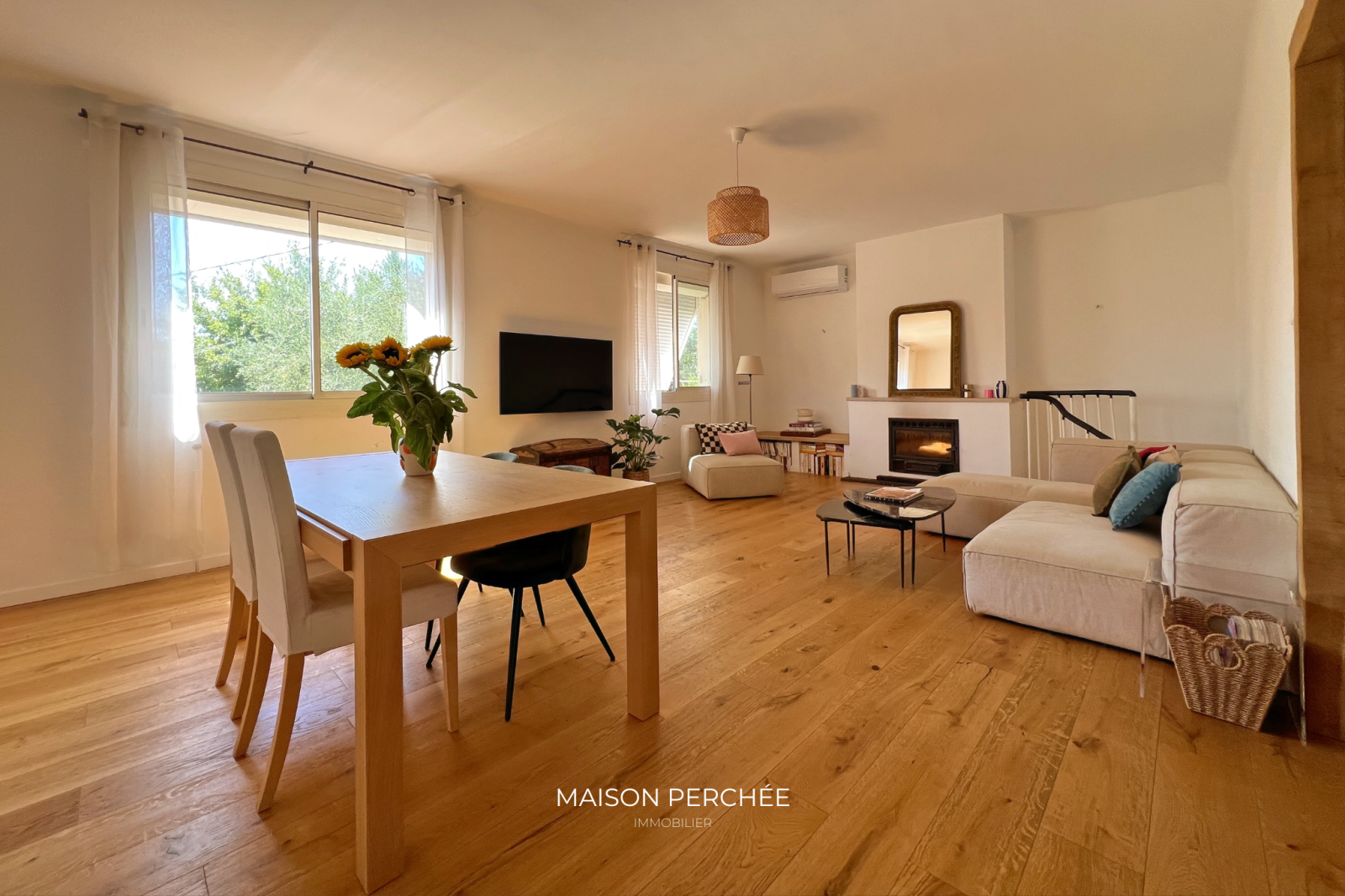 Perchée sur les hauteurs de Draguignan, cette villa avec terrain clos dispose d’un lieu de vie de 143m² habitables (161m² au sol) à quelques minutes du centre-ville. L’étage, rénové en 2022, s’ouvre sur une vaste entrée. Celle-ci mène aux différents espaces de vie. Le séjour climatisé de 30m², exposé sud-ouest, dispose d’une cheminée et d’une vue sur la nature environnante. La cuisine, entièrement équipée, se prolonge sur une véranda de 10m². L’espace nuit comprend deux chambres dont une de 15m², une salle de bain et un WC indépendant. Le parquet en chêne massif sur l’ensemble de ce niveau confère une atmosphère chaleureuse. Un escalier en colimaçon accessible depuis le séjour mène au niveau inférieur. Le rez-de-jardin accueille une seconde pièce de vie de 26m² aménageable selon vos envies, deux chambres et une salle d’eau avec WC. Une cuisine d'été, un garage et un cellier complètent la description. La villa profite d’un terrain arboré en restanque de 910m² avec terrasse et places de parking.