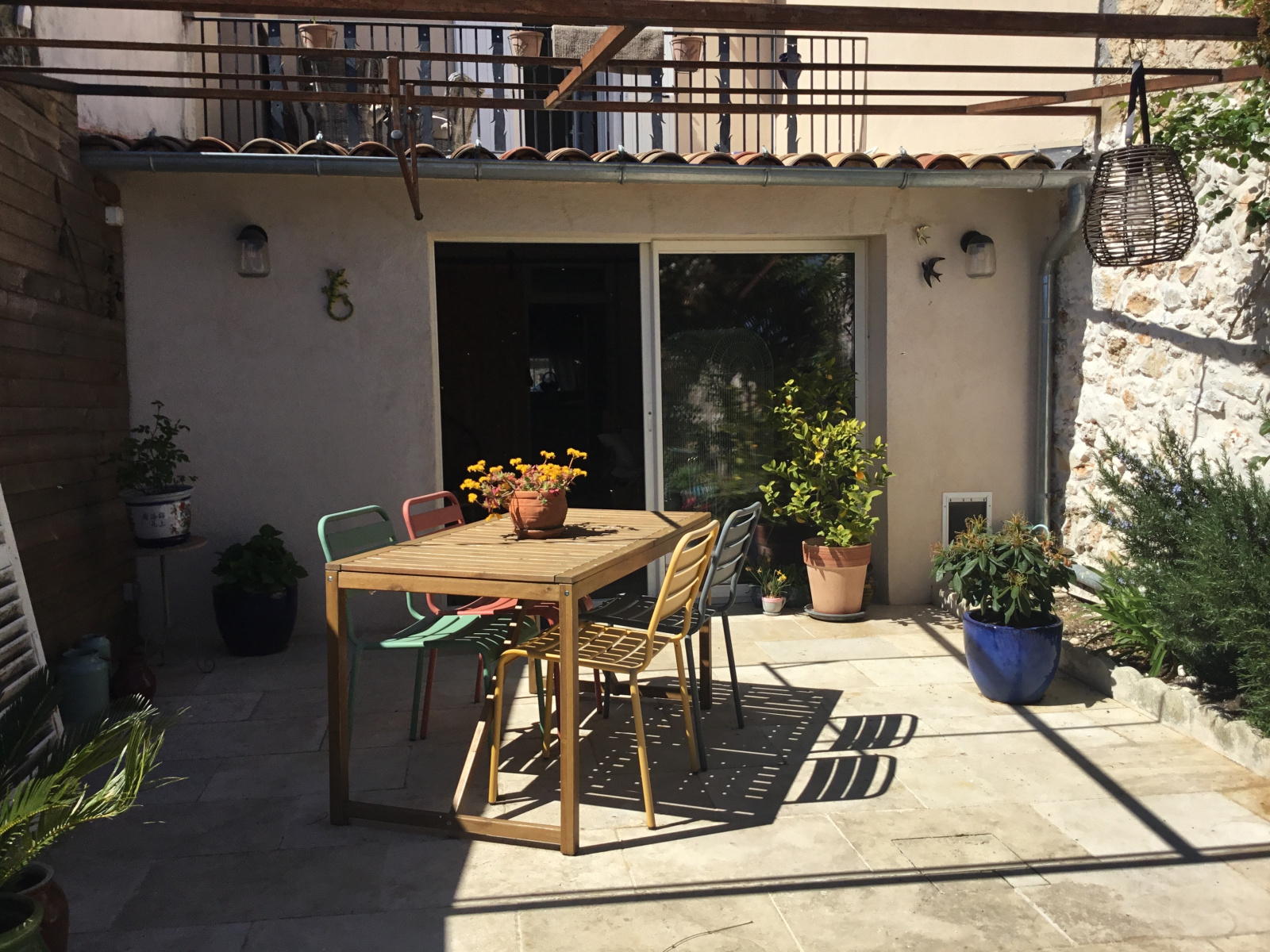 Extérieur Privatif : Profitez d'un jardin clos, véritable havre de paix en centre-village, complété par une terrasse idéale pour vos repas d'été.