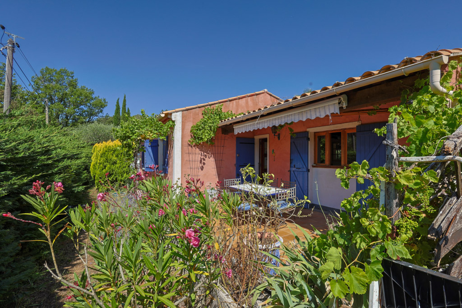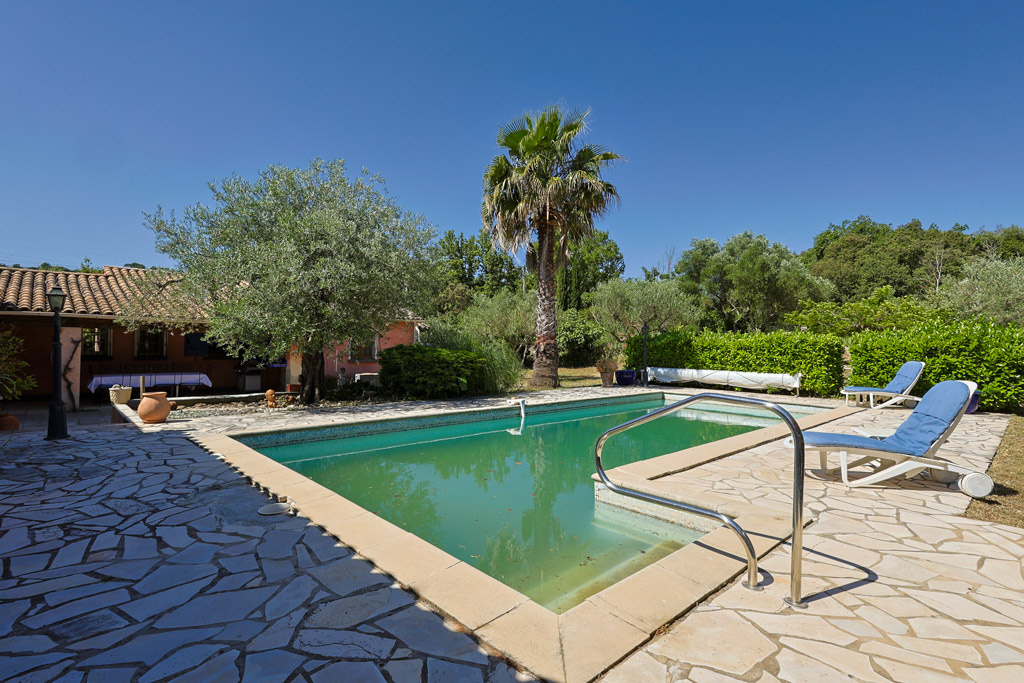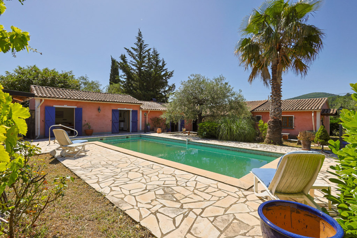 Jolie maison de plain-pied d'environ 145 m² située dans un beau cadre provençal au cœur du Var, à seulement 35 minutes des plages. La maison dispose d'un beau jardin paysager avec vue, d'une piscine, d'une terrasse ensoleillée et d'un terrain de pétanque.