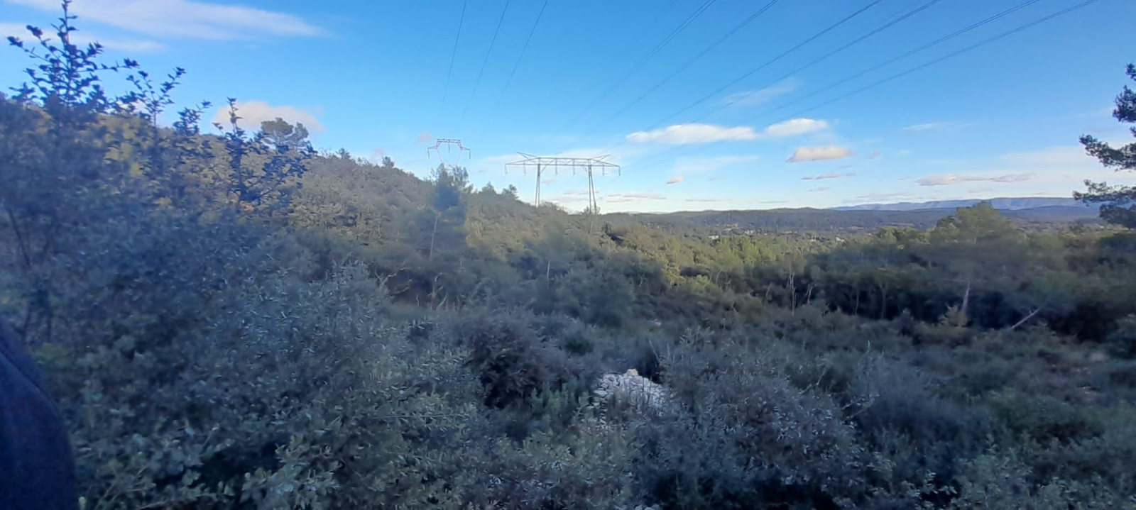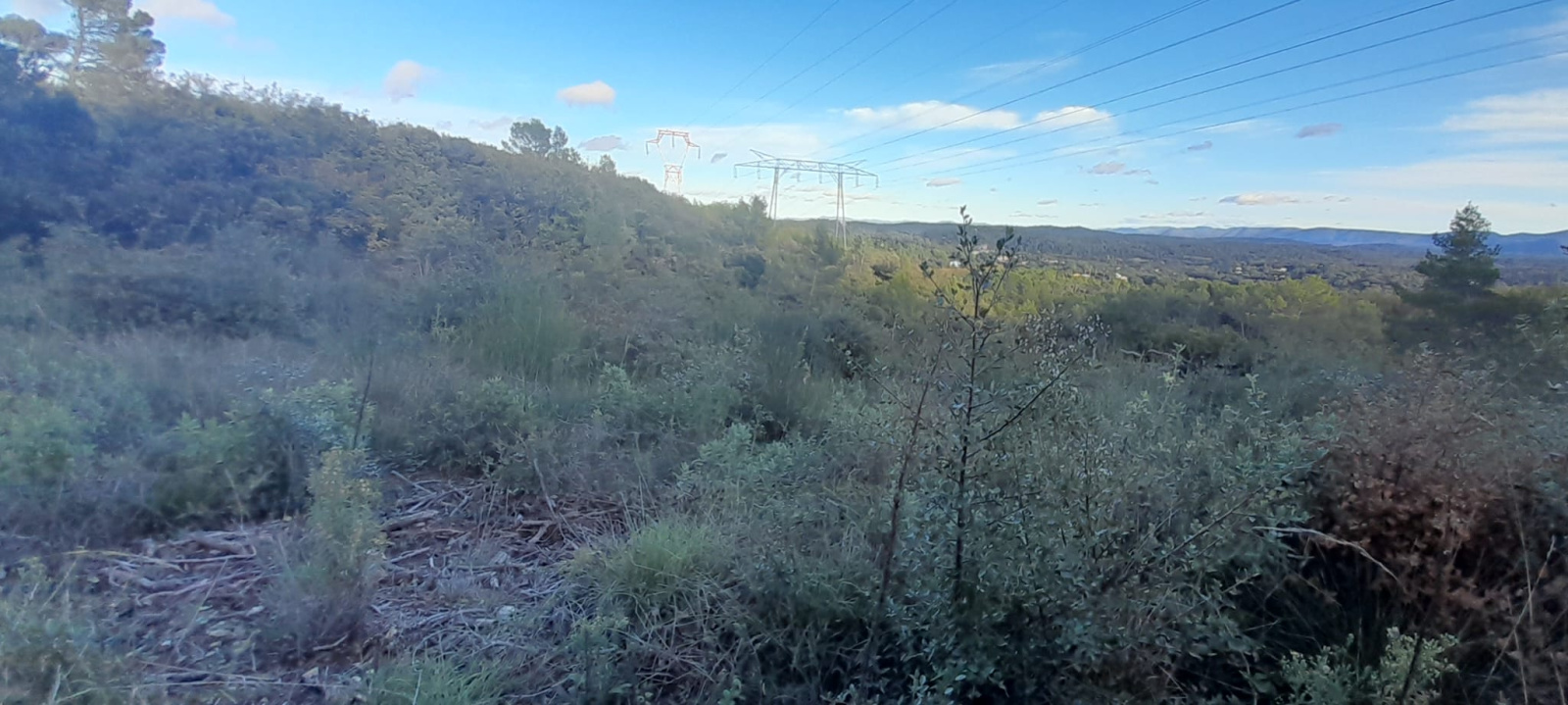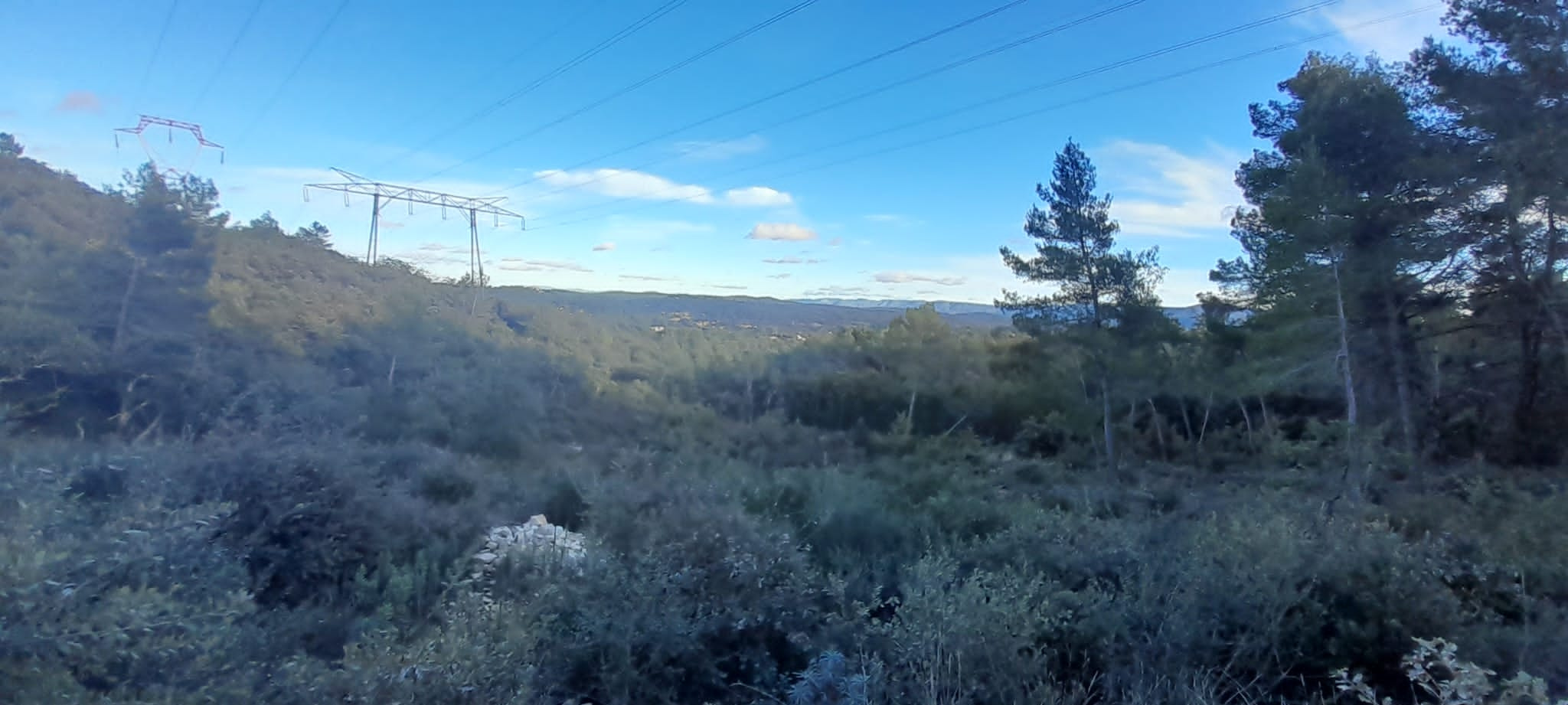 L’accès s’effectue par une piste nécessitant un véhicule adapté. Le terrain, en pente, est survolé par des lignes à haute tension.