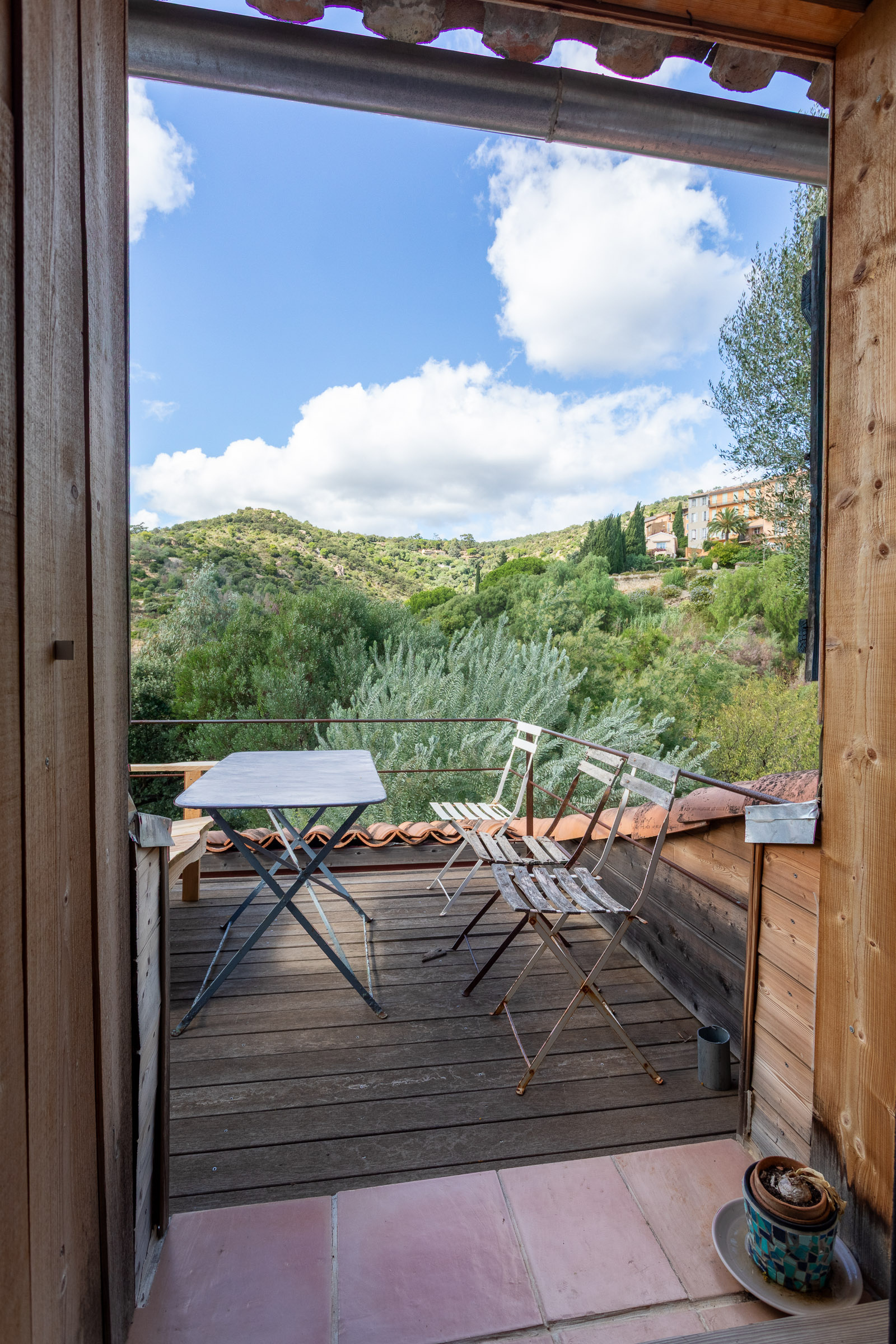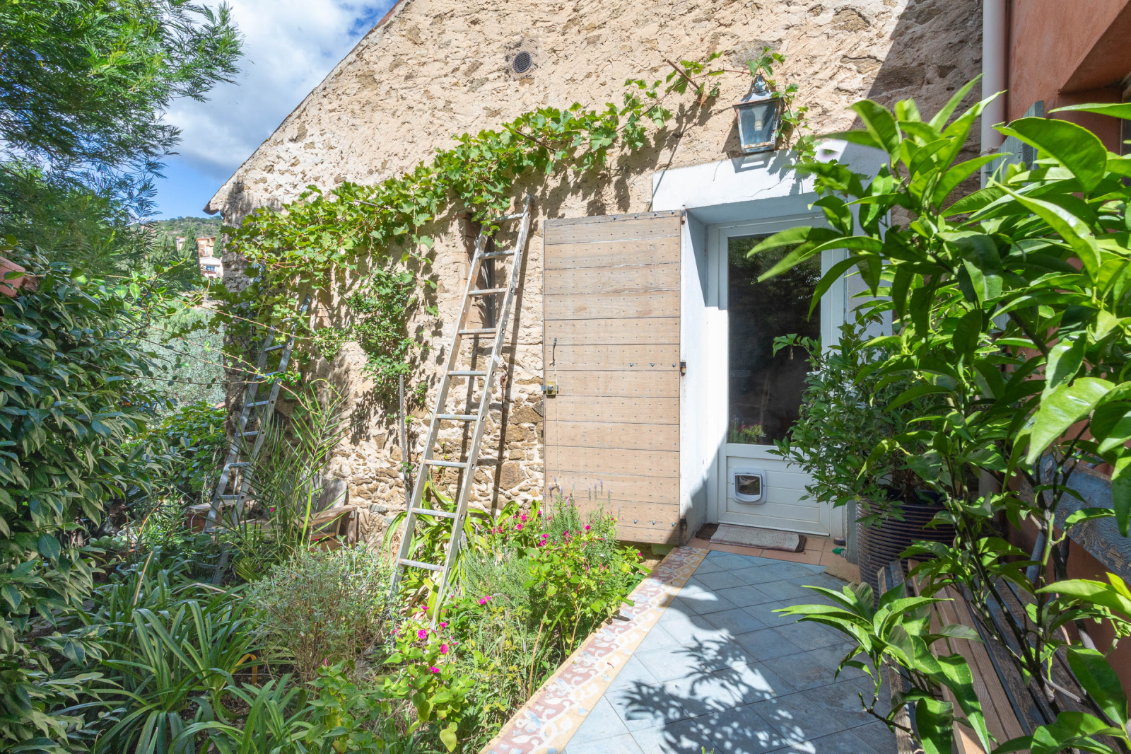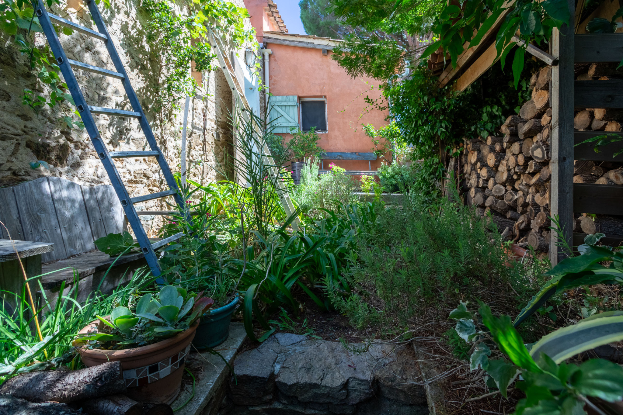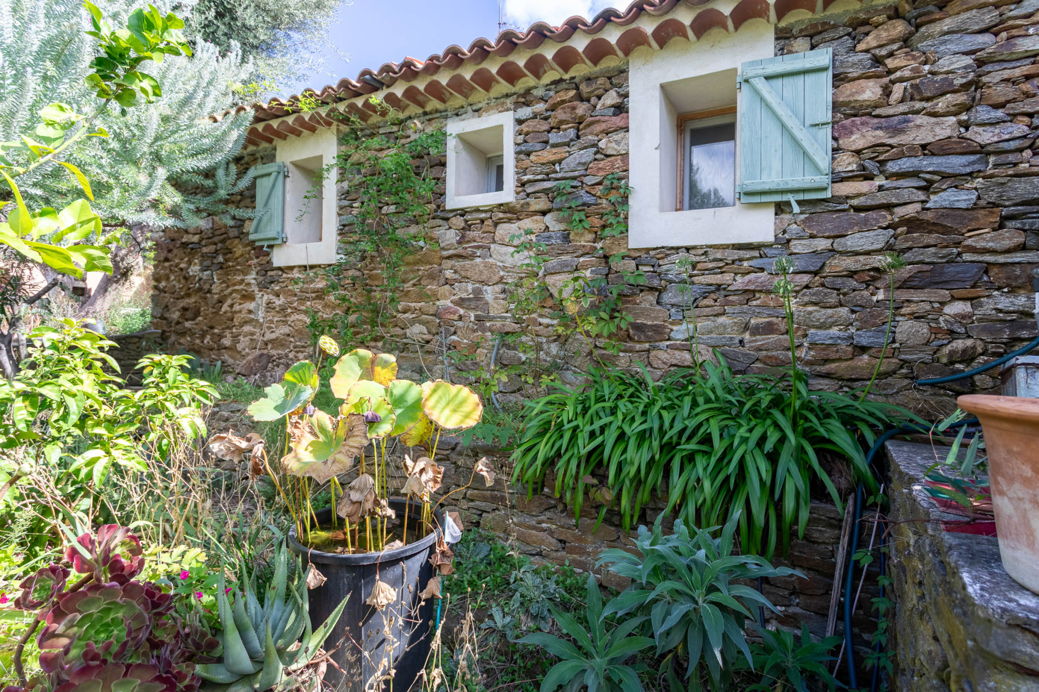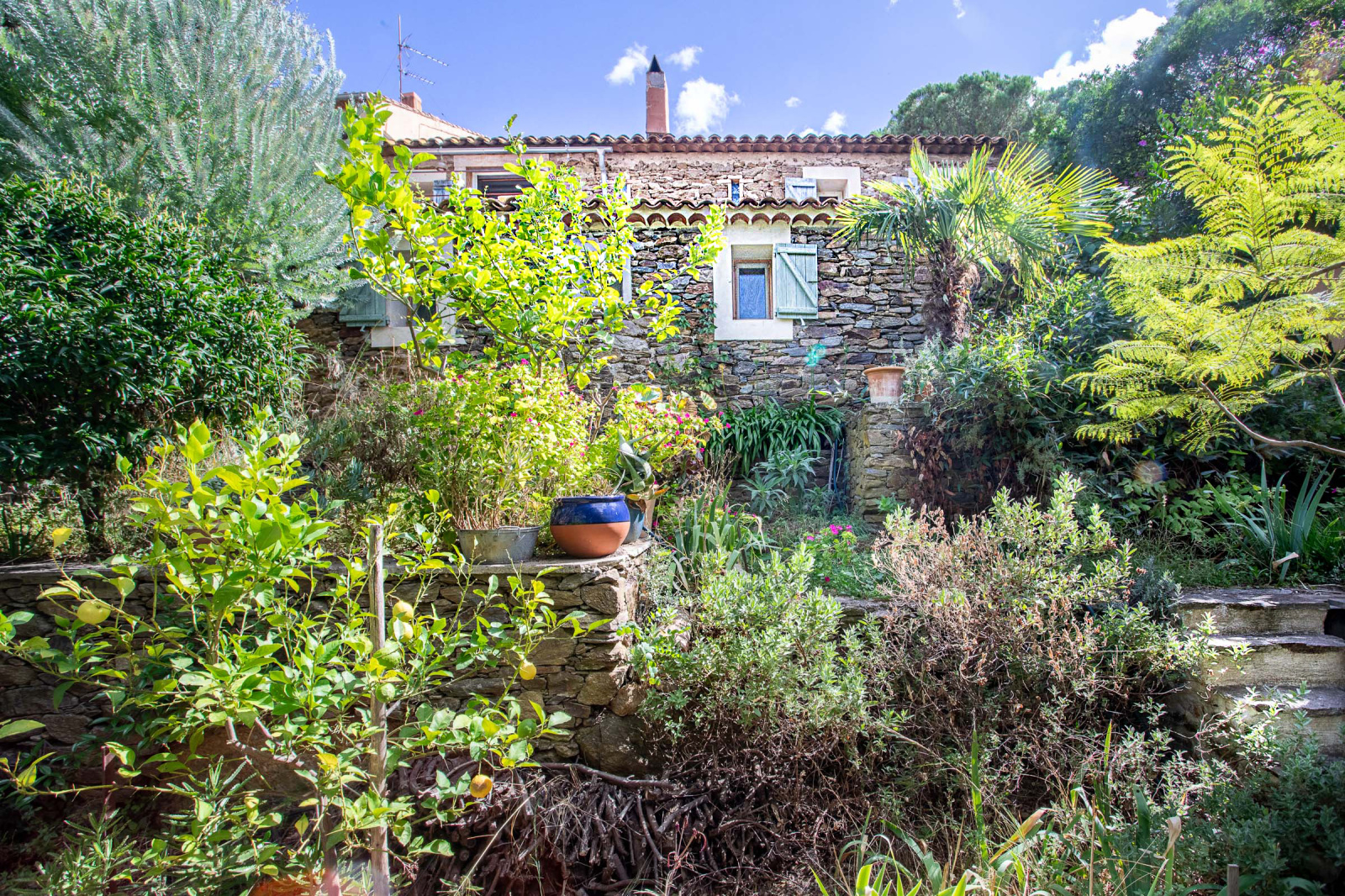 La maison se déploie sur trois niveaux et combine avec élégance le charme de l'ancien et la douceur de vivre provençale :Un double séjour lumineux, avec plafonds cathédrale en bois, sols en terre cuite et poêle en faïence, ouvrant sur une terrasse avec une vue panoramique sur les collines et de l'autre parti du séjour donnant sur un patio.Une cuisine familiale avec salle à manger, rangements en bois massif, donnant sur un patio pavé de carreaux de ciment anciens.Quatre chambres chaleureuses, aux sols en bois ou terre cuite, dont une avec poutres apparentes et vues sur le jardin.Une dépendance actuellement atelier, pouvant devenir une chambre d'amis, un bureau ou un espace créatif.Le jardin en restanques, soutenu par des murets en pierre sèche, est un véritable havre botanique : oliviers, figuiers, citronniers, palmiers, lauriers, lavandes, romarins, sauges, aloès et agaves s'y mêlent. On y trouve aussi une vigne grimpante qui ombrage le patio, ainsi qu'un bassin planté de lotus. Plusieurs terrasses de pierre invitent à la détente et aux repas en plein air.Cette maison saura plaire à ceux qui apprécient le charme de l'ancien, porté par la pierre et les essences méditerranéennes, dans un cadre préservé, périmètre historique du vieux village de Bormes.