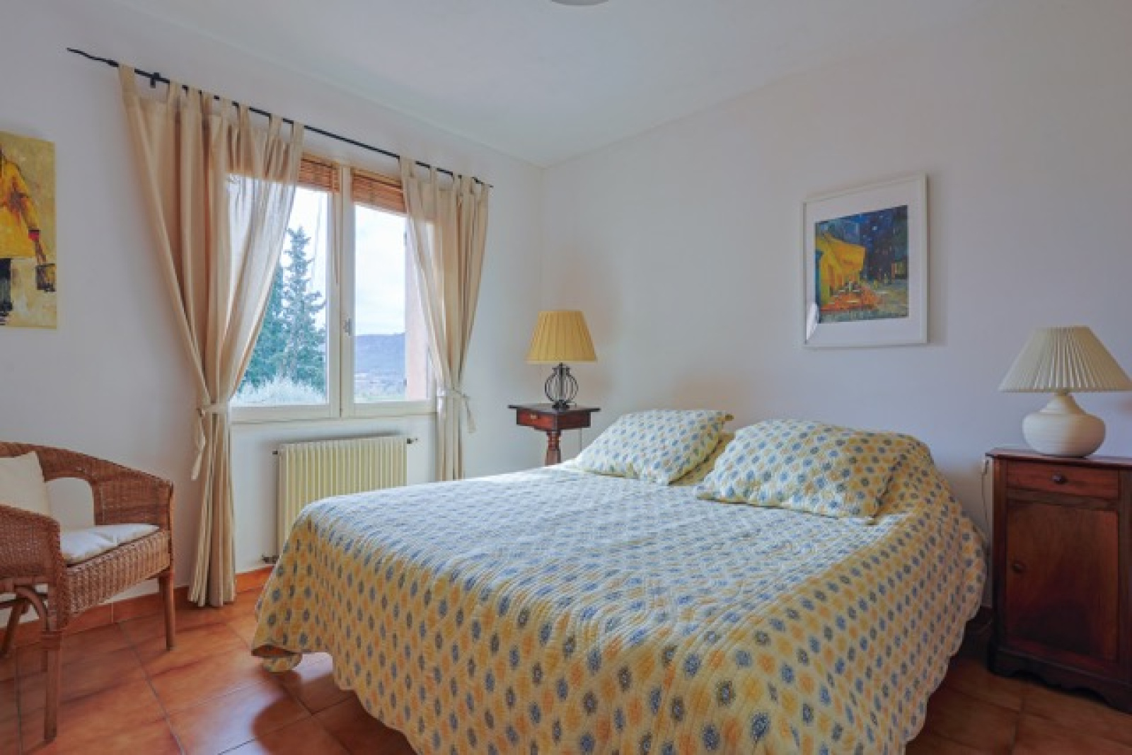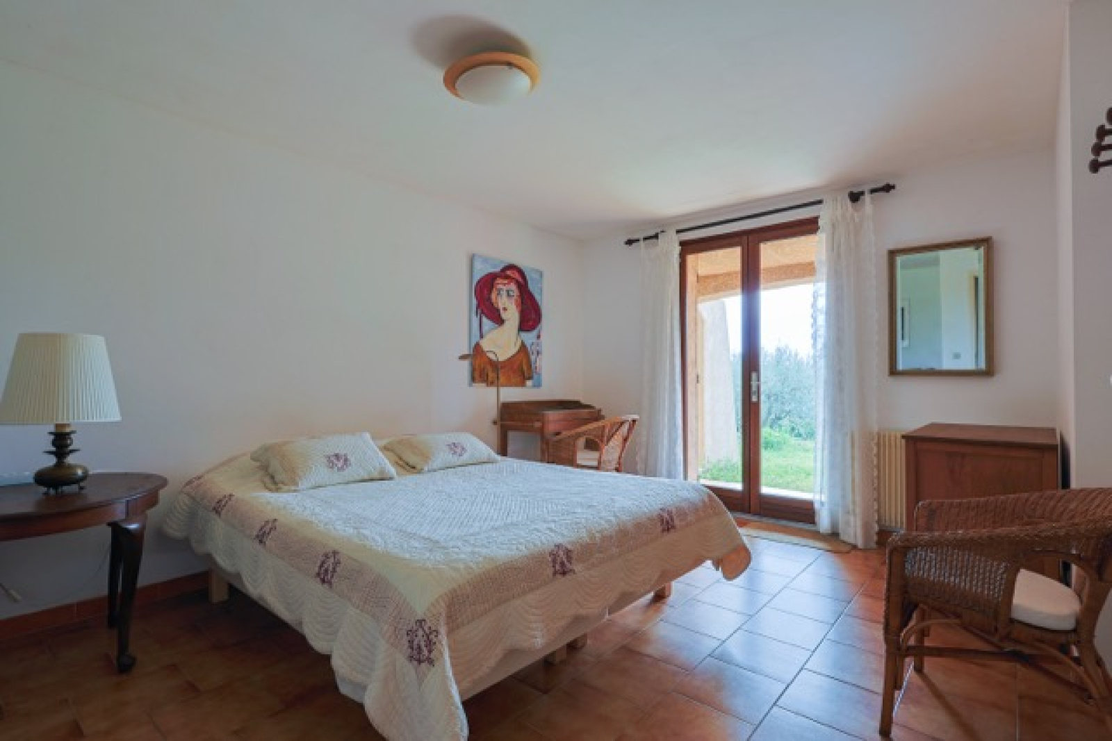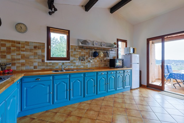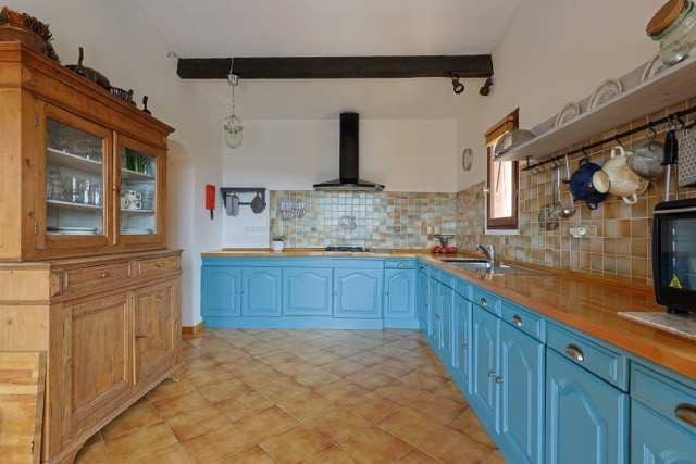 La partie vie se compose d'un bel espace ouvert avec une cheminée au milieu. La cuisine est spacieuse et a un accès direct à la terrasse couverte qui donne une vue sur le jardin et les environnements. La maison est dotée d'un sol carrelé, de poutres en bois et de portes qui s'ouvrent sur plusieurs terrasses extérieures. La terrasse au rez-de-jardin est couverte et offre une ombre bienvenue pendant les jours d'été. Idéale pour les repas en plein air entre famille et les amis. La terrasse du premier étage est exposée au sud.